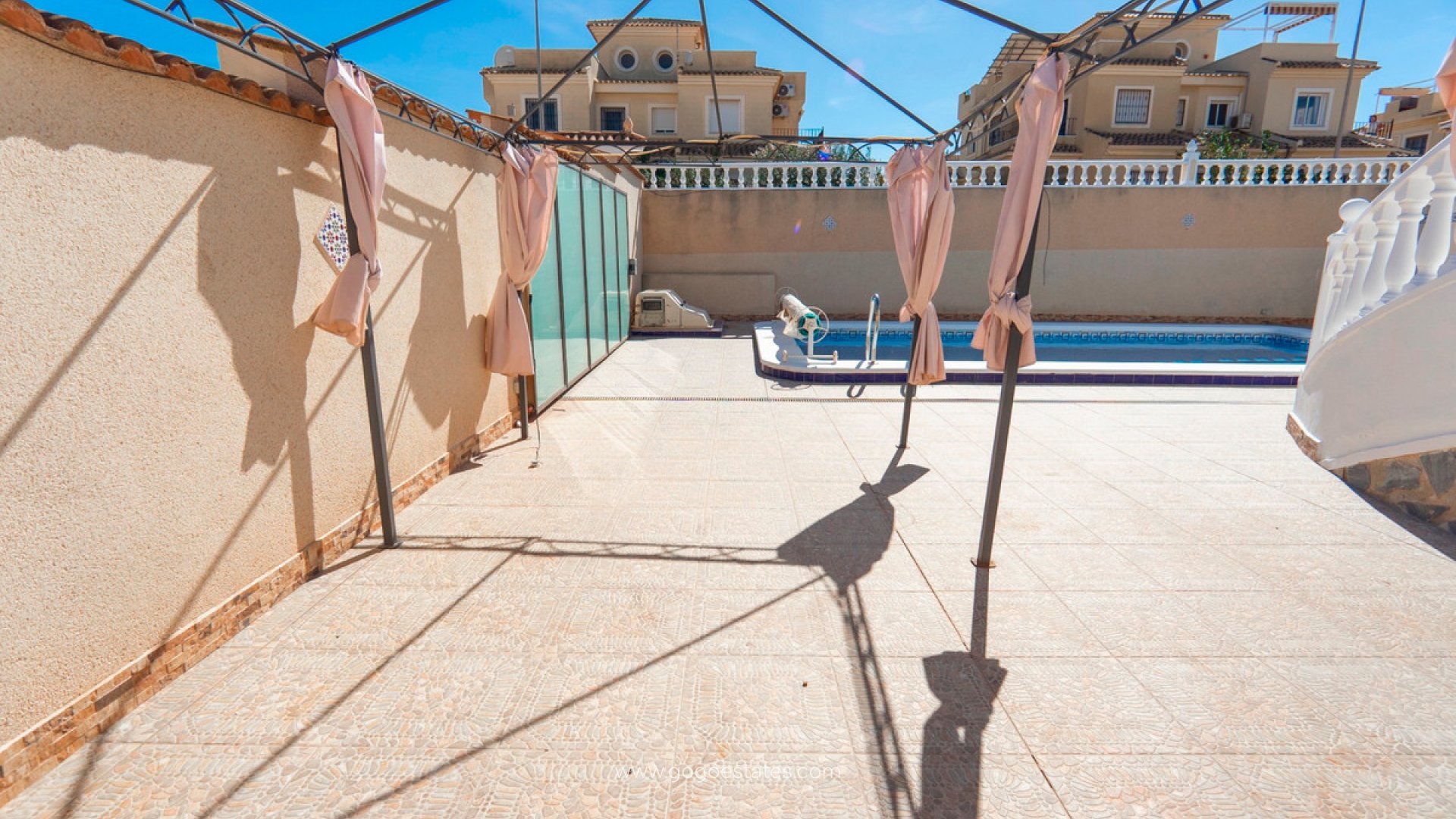 VILLA IN EEN RUSTIGE WOONSTRAAT IN CIUDAD QUESADA Als u op zoek bent naar een rustig huis met mooie buitenruimtes en een licht, zonnig interieur, dan is deze villa wellicht de perfecte keuze voor u. Deze villa met drie slaapkamers ligt op een ruim perceel en beschikt over een zwembad van 8x4m . Het buitenterrein is perfect onderhouden en voorzien van tegelvloeren, zodat u het gemakkelijk kunt onderhouden. Het zwembad is uitgerust met eigen zonnepanelen , waardoor het gratis verwarmd kan worden en u er het hele jaar door van kunt genieten. Binnen is de villa zorgvuldig gerenoveerd en is het voormalige buitenterras geïntegreerd. Hierdoor heeft de ruimte een uniek karakter gekregen. De gebogen wand met ramen zorgt ervoor dat er veel natuurlijk licht de woonkamer binnenstroomt, waardoor er een warme en uitnodigende sfeer ontstaat. Een open haard aan beide zijden zorgt voor warmte in de winter, terwijl de airconditioning de ruimte koel houdt in de zomer. Naast de woonkamer bevindt zich de ruime keuken en op deze verdieping bevinden zich drie comfortabele slaapkamers, allen met inbouwkasten . Één van de slaapkamers heeft een eigen badkamer . Een familiebadkamer maakt de indeling van deze verdieping compleet. Via een wenteltrap komt u bij de vierde slaapkamer. Deze slaapkamer heeft een ovale vorm en twee openslaande deuren naar het terras , waardoor het een zonnige en lichte kamer is. Deze deuren geven toegang tot een groot omlopend terras met prachtig uitzicht op de zee en de zoutmeren . Deze accommodatie ligt aan de rand van het natuurpark El Recorral , waardoor u volop mogelijkheden heeft om met de hond te wandelen of gewoon van de natuur te genieten. De locatie is heerlijk rustig, maar toch op korte rijafstand van de bruisende hoofdstraat van Ciudad Quesada en de golfbaan La Marquesa . Ciudad Quesada is een zeer gewilde wijk voor internationale kopers aan de Costa Blanca Zuid . Het stadje werd in de jaren zeventig gesticht door de lokale zakenman Justo Quesada en is uitgegroeid tot een levendige gemeenschap met een levendige winkelstraat vol winkels, bars, restaurants en een eigen stadhuis . De stad heeft ook een golfbaan, La Marquesa , en er wonen mensen van over de hele wereld. Er zijn ook Engelse en Noorse scholen beschikbaar. Deze locatie ligt op slechts tien minuten van de goudgele zandstranden van Guardamar del Segura en op slechts 30 minuten van de luchthaven van Alicante . U krijgt het beste van twee werelden. De kustplaats Torrevieja ligt op slechts 15 minuten rijden en de stranden van Orihuela Costa liggen slechts een paar minuten verder. Het populaire winkelcentrum Zenia Boulevard ligt ook op loopafstand. Mis uw kans niet om dit charmante pand te bezichtigen. Neem vandaag nog contact met ons op om uw bezoek te plannen.