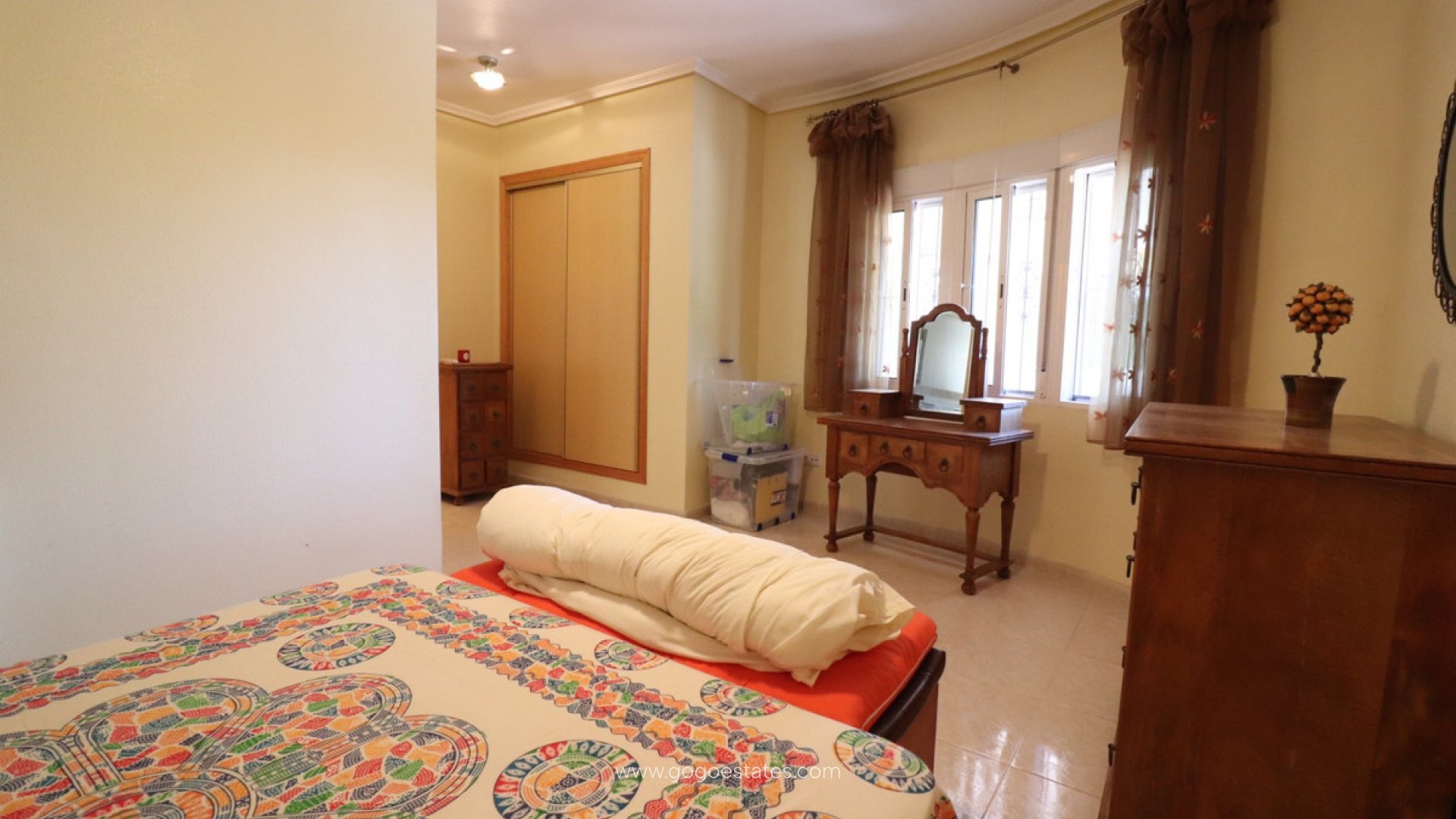 Deze op het zuiden gelegen villa met drie slaapkamers in Catral is gelegen in het prachtige open landschap, met uitzicht op de bergen, maar toch op slechts 5 minuten rijden van de voorzieningen van het stadje Catral. De golfbanen van La Finca en La Marquesa zijn in ongeveer 20 minuten te bereiken, terwijl de prachtige stranden van de Costa Blanca op slechts 15 minuten afstand liggen. De ruime villa van 235 m² is gelijkvloers en staat op een privéperceel van 2400 m². De villa bestaat uit een overdekt terras dat leidt naar de hal, een gebogen woonkamer met houtkachel, eethoek en een brede boog die leidt naar een goed ingerichte keuken met bijkeuken en deur naar buiten. Er zijn drie tweepersoonsslaapkamers, allemaal met plafondventilatoren met afstandsbediening, een familiebadkamer en een eigen doucheruimte bij de hoofdslaapkamer. De aangelegde ommuurde tuin is ontworpen voor eenvoudig onderhoud en buitenleven, met parkeergelegenheid op eigen terrein, een carport, een centrale fontein, volwassen bomen en palmen, een barbecueplek, een irrigatiesysteem en een privézwembad van 10 x 5 meter aan de achterzijde, met een rustig, open uitzicht. Extra's zijn onder andere airconditioning en een onlangs geïnstalleerde septictank. Een ideale gezinswoning of retraite op het platteland, maar toch dicht bij de kust en voorzieningen, aan de Costa Blanca Zuid.