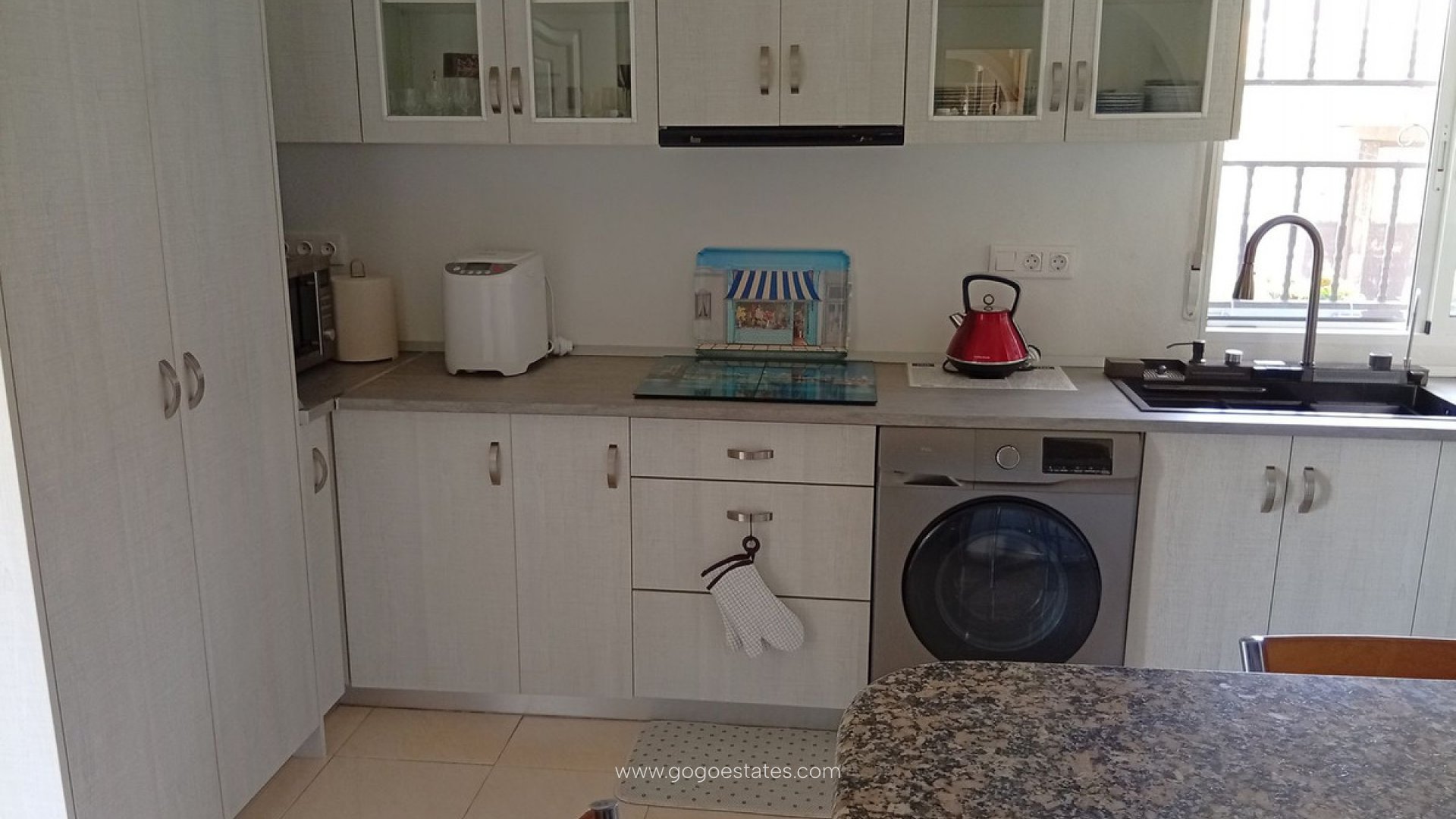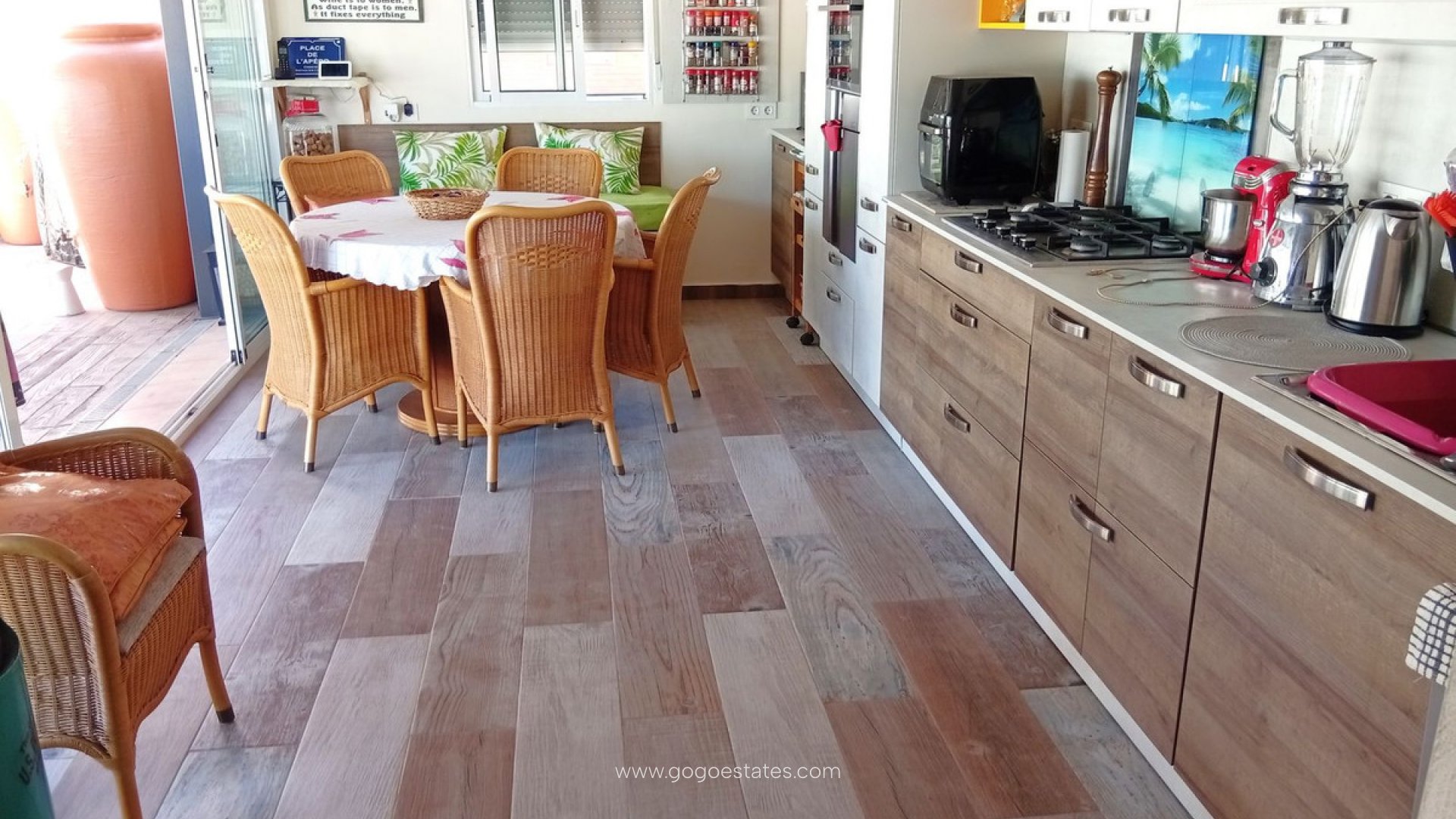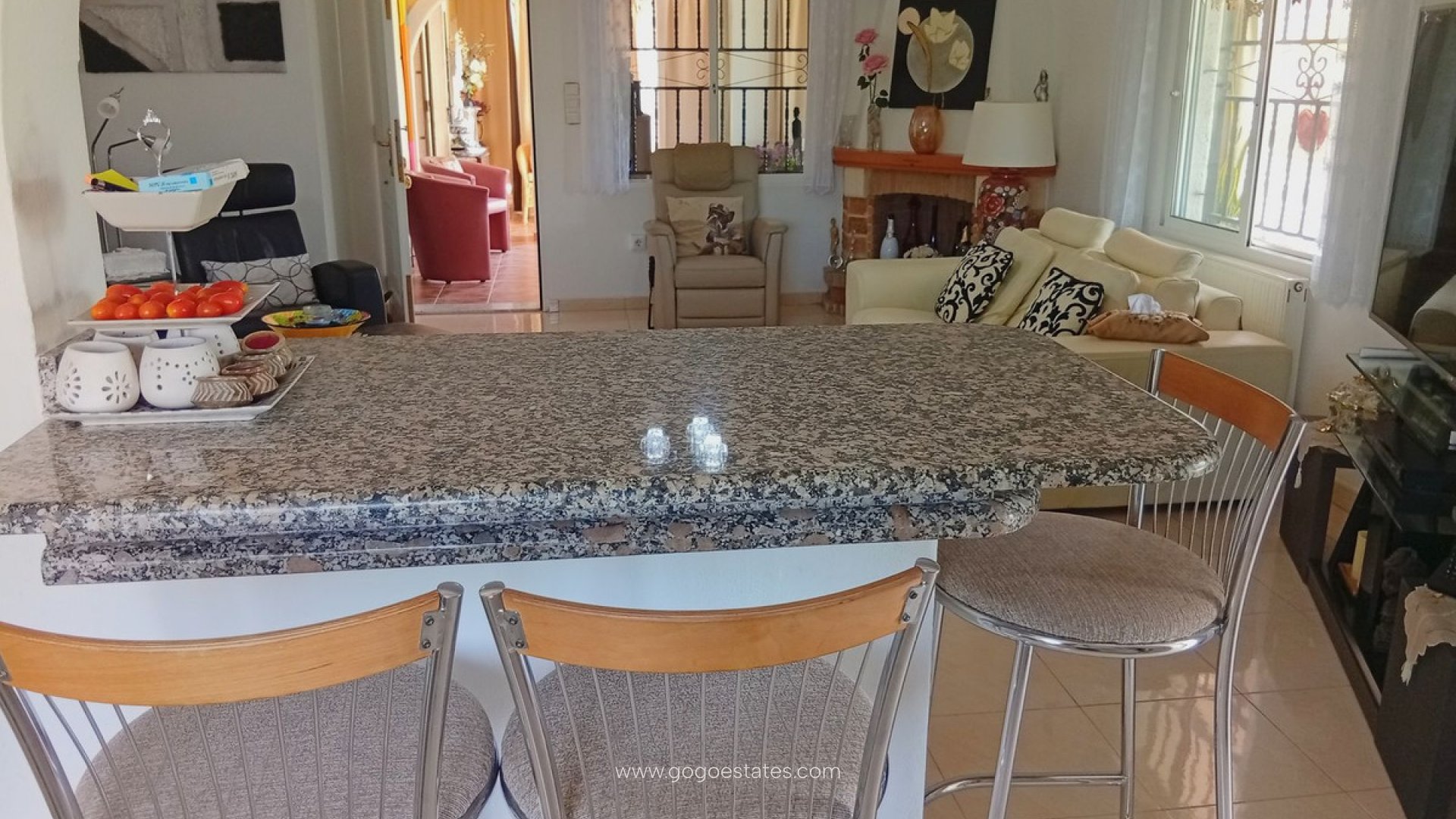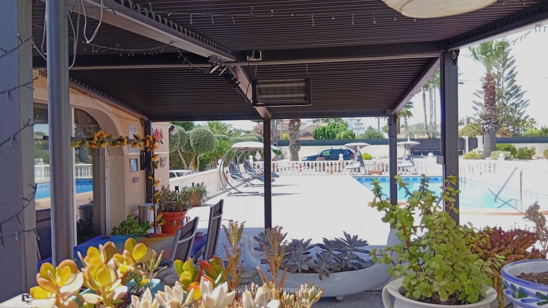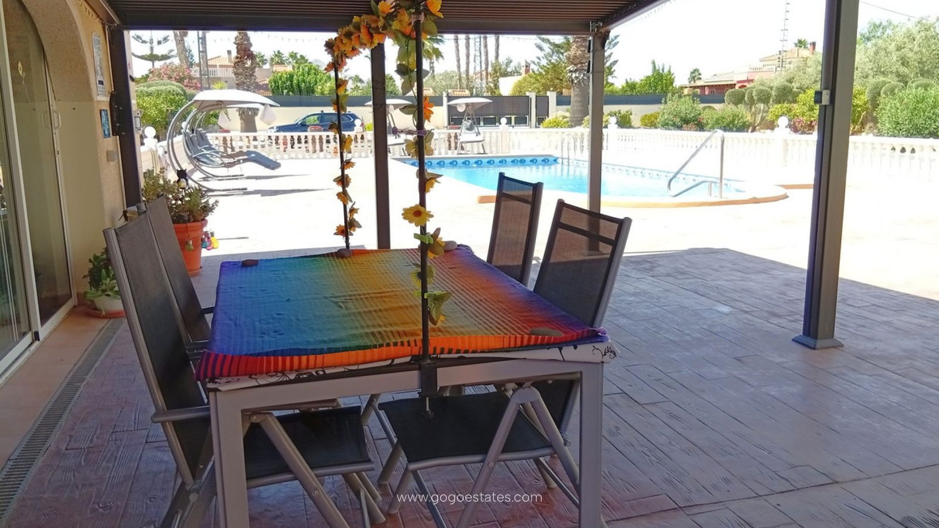 Landelijke villa met karakter in Catral Op zoek naar een ruime woning met alle comfort én een vleugje Spaanse charme? Dan is dit landhuis in Catral misschien wel exact wat u zoekt. Rustig gelegen, met vlotte verbindingen en slechts enkele minuten van het centrum. Bij binnenkomst stapt u via het beglaasde terras naar binnen - een heerlijke extra leefruimte die ideaal is voor de frissere winterdagen. Vanuit hier komt u in de moderne keuken (met praktische bijkeuken). De keuken is recent gerenoveerd en heeft logisch gebruik gemaakt van elke ruimte. Aansluitend bevindt zich de ruime woonkamer met gezellige open haard. Deze geeft toegang tot het slaapgedeelte met drie slaapkamers, allemaal voorzien van inbouwkasten, en twee recent gerenoveerde badkamers, waarvan één ensuite. Naast de woonkamer bevindt zich nog een apart gastenverblijf. Momenteel is dit ingericht als ensuite slaapkamer, inclusief dressing. Ook hier vindt u een eigen badkamer met douche. De woning wordt volledig gemeubileerd verkocht. Verder geniet u van centrale verwarming (op mazout), airconditioning, zonnepanelen en horren op alle ramen. Het perceel van 5.000 m² is volledig omheind en toegankelijk via een automatische poort. De tuin is onderhoudsvriendelijk aangelegd met grind, palmbomen en fruitbomen. Achteraan vindt u een houten chalet, een petanquebaan en een kleine olijfgaard. Voor de wagen is er een ruime garage en een houten carport. Dé eyecatcher van deze eigendom? Het royale zoutwaterzwembad (10x5 m) met groot zonneterras, pergola en een volledig uitgeruste poolhouse mét volledig uitgeruste keuken en apart toilet. U kan deze zeker gebruiken als gastenverblijf. De ideale plek om lange zomerdagen door te brengen. Kenmerken op een rij: Landhuis (1 verdieping) 261 m² bewoonbare oppervlakte 4 slaapkamers - 3 badkamers Perceel van 5.000 m² Zwembad 10x5 m (zoutwater) Oriëntatie: noord, zuid, oost, west Bouwjaar: 2000 Garage + carport voor mobilhome Centrale verwarming (stookolie), airco, zonnepanelen