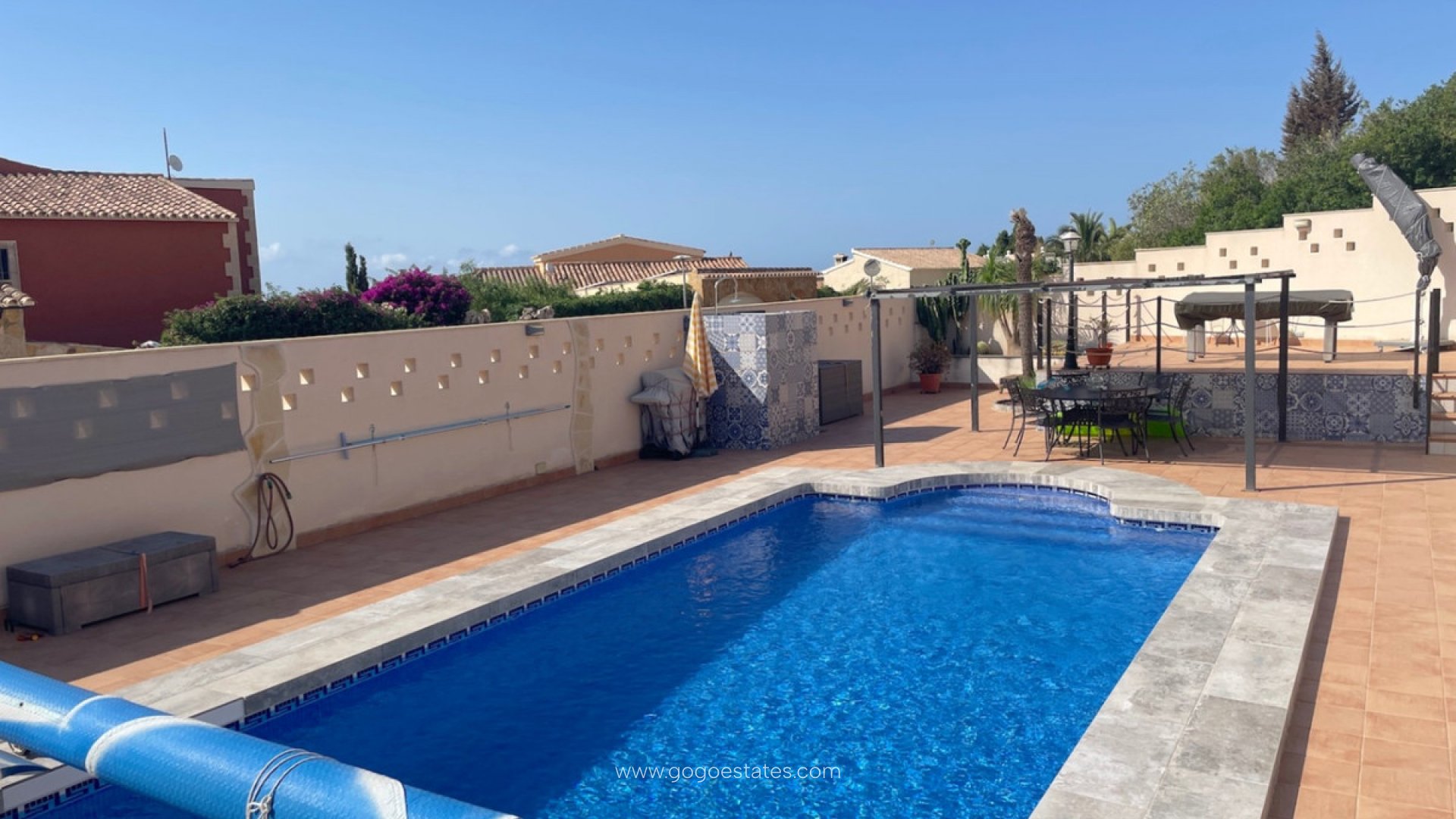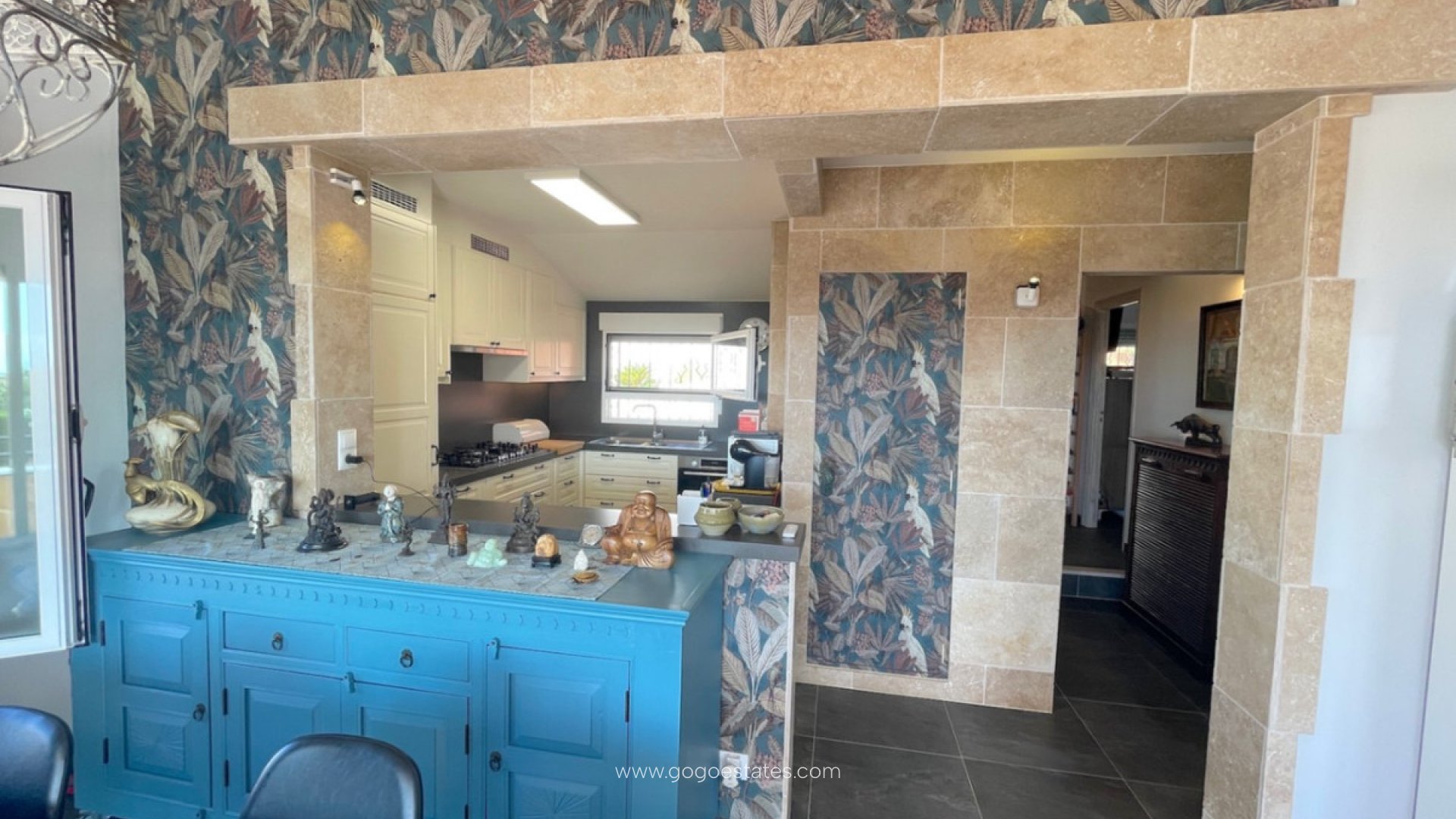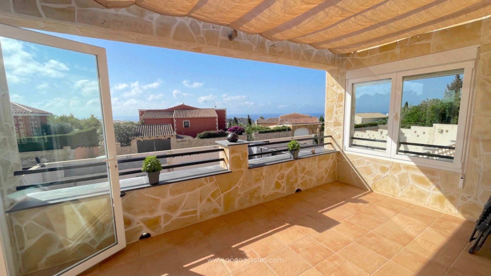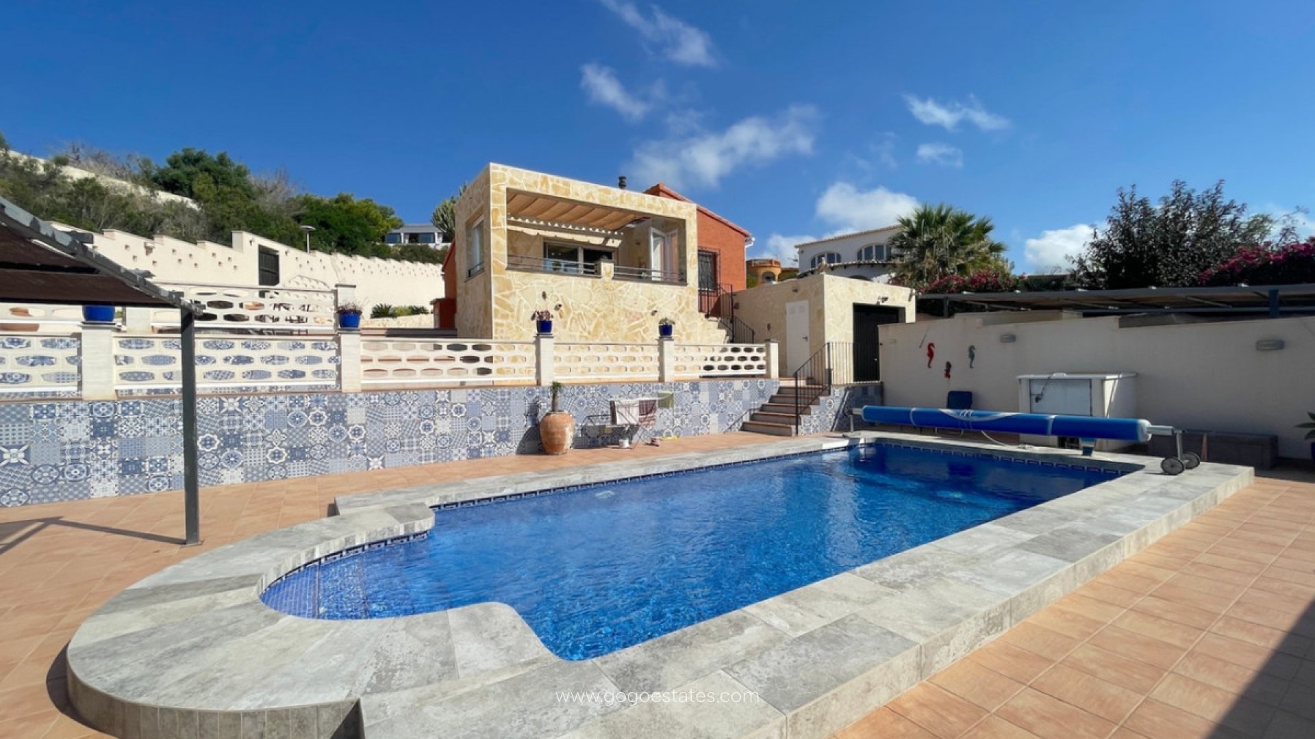 Idyllische vrijstaande villa met zeezicht in Cumbre del Sol, Benitachell Welkom in uw droomretreat! Deze prachtige vrijstaande villa, gelegen op een ruim en privé kavel van 737m² met zeezicht, is uw exclusieve toegang tot de serene levensstijl die u zich altijd al wenste. Gelegen in het prestigieuze Cumbre del Sol gebied van Benitachell, biedt deze woning de perfecte mix van comfort en gemak. Belangrijkste Kenmerken: Zeezicht: De iets verhoogde positie van deze villa stelt u in staat om te genieten van een vrij uitzicht op de omliggende omgeving en de glinsterende Middellandse Zee, waardoor elk moment hier aanvoelt als een vakantie. Prima locatie: Slechts een ontspannen wandeling van 5 minuten verwijderd, vind u een selectie van essentiële voorzieningen, waaronder een charmant restaurant, een goed gesorteerde supermarkt en een apotheek, zodat alles wat u nodig hebt altijd binnen handbereik is. Buitenleven op zijn best: Omarm het prachtige Mediterrane klimaat met een uitnodigende open "naya", op het zuidoosten gelegen. Voorzien van een verstelbare luifel voor schaduw in de zomer en glazen zijden voor winterbescherming, is deze ruimte perfect om het hele jaar door te genieten. Gezellige interieur: Stap binnen en ontdek een warme en uitnodigende woon-eetkamer met een charmante pelletkachel, perfect voor gezellige avonden. De open keuken biedt functionaliteit en stijl, terwijl de twee comfortabele slaapkamers zijn uitgerust met plafondventilators; de master slaapkamer is ook voorzien van een airconditioningunit (koud en warm) om een rustige nachtrust te garanderen. Buitenoase: Duik in uw eigen fantastische zwembad, compleet met een buitendouche - een waar toevluchtsoord voor ontspanning en plezier tijdens die zonnige dagen. De uitgebreide betegeling en terrassen rondom de woning maken het onderhoud van de buitenruimte eenvoudig, met voldoende ruimte om te zonnen, buiten te dineren, of simpelweg te genieten van de verbluffende omgeving. Ruime parkeergelegenheid: Geniet van het gemak van een privé parkeerplaats en een garage, die zowel veiligheid als gemakkelijke toegang tot uw villa biedt. Ideaal voor alle seizoenen: Of u nu op zoek bent naar een vredige ontsnapping voor de vakantie of een mooie woning voor langere verblijven, deze villa is ontworpen om aan al uw behoeften te voldoen. De combinatie van privacy, comfort en nabijheid van voorzieningen maakt het een perfecte keuze voor degenen die de Mediterrane levensstijl willen omarmen. Mis het niet! Deze betoverende villa is niet alleen een huis; het is een levensstijl die op u wacht. Plan vandaag nog een bezichtiging en laat de schoonheid van deze woning u inspireren en uw dromen verwezenlijken. Ervaar het leven aan de kust in deze uitzonderlijke villa in Cumbre del Sol. Uw paradijs wacht op u!
