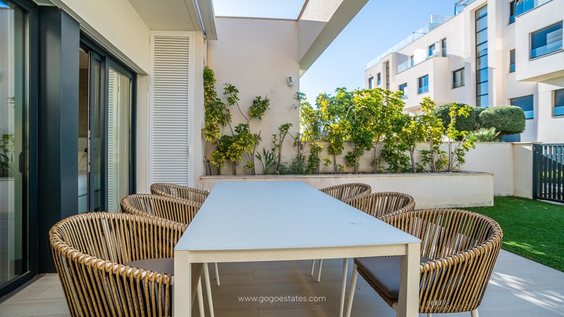 Dit luxe appartement ligt op het unieke Las Colinas Golf & Country resort. Het golfresort is 330 hectare groot en beschikt naast de golfbaan over een privéstrandclub aan het strand van Campoamor, een gemeenschappelijk zwembad, paddlebanen, een fitnessruimte, een tennisbaan, twee natuurpaden en een minisupermarkt. Er zijn drie restaurants: een Italiaans restaurant, een sushirestaurant en een clubhuis met golfshop en kleedruimte met douches. Het gehele terrein is beveiligd met eigen beveiliging met camerabewaking bij de ingang. Gelegen op slechts 4 km van alle lokale voorzieningen, 10 km van het strand, 60 km van de luchthaven van Alicante en 45 km van de luchthaven van Murcia, is deze locatie zowel rustig als gemakkelijk bereikbaar. Het appartement ligt in de gemeenschap Hinojo en biedt luxe afwerkingen en comfort in elke kamer, inclusief airconditioning voor een perfect klimaat het hele jaar door. Via de voordeur en de hal komt u in de ruime leefruimte met open keuken, eetgedeelte en woonkamer. De prachtige open keuken is voorzien van hoogwaardige apparatuur en biedt alle comfort die u zich maar kunt wensen: heteluchtoven, vaatwasser, magnetron, koelkast, 4 keramische kookplaten en ingebouwde opbergruimte. Via de leefruimte kunt u de schuiframen volledig openen naar het grote zonnige terras met privétuin, direct gelegen aan het zwembad, waar u heerlijk kunt ontspannen of een verfrissende duik kunt nemen. Het terras heeft twee ingebouwde bergingen waar u de wasmachine kunt plaatsen. Dit appartement op de begane grond beschikt over 3 slaapkamers met een tweepersoonsbed en inbouwkasten. De hoofdslaapkamer heeft een eigen badkamer met toilet, badkamermeubel, wastafel en een aparte douche. De kamer heeft schuiframen die direct toegang bieden tot het terras en de tuin. De elektrische rolluiken in de slaapkamers bieden niet alleen extra privacy, maar zorgen ook voor het juiste comfort en de juiste temperatuur in huis. Het appartement beschikt over een tweede badkamer met inloopdouche, toilet, badkamermeubel en wastafel. Het beschikt over alle benodigde voorzieningen: airconditioning, alarmsysteem en domotica. Internet en tv zijn beschikbaar, zodat u altijd verbonden kunt blijven. Er is ook een eigen ondergrondse parkeerplaats van 12,5 m² en een berging van 8 m². Het wordt verkocht inclusief meubilair en apparatuur. Voor wie op zoek is naar luxe, rust en gemak in een exclusieve omgeving, is dit appartement de perfecte keuze. Wacht niet te lang, dit is een unieke kans! Neem snel contact met ons op voor meer informatie of om een bezichtiging te plannen!