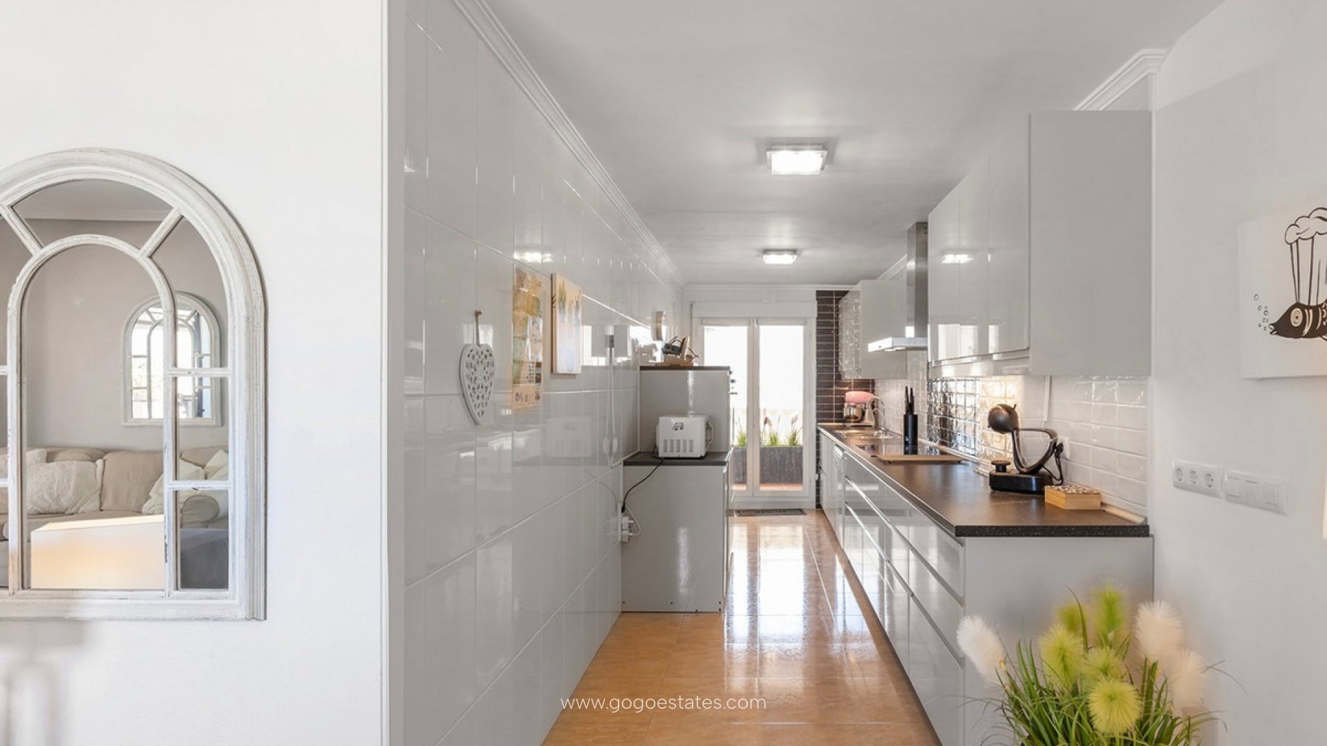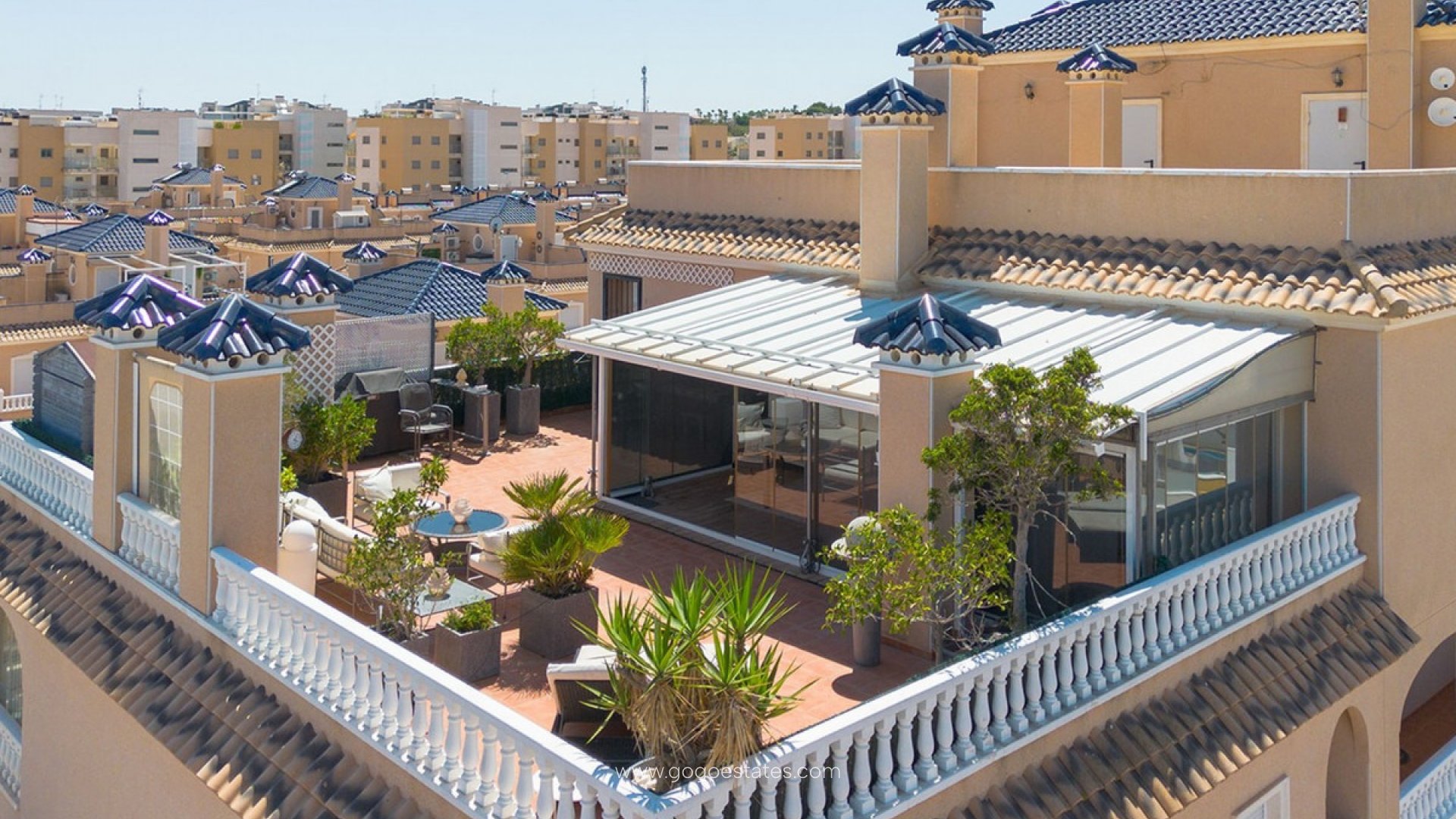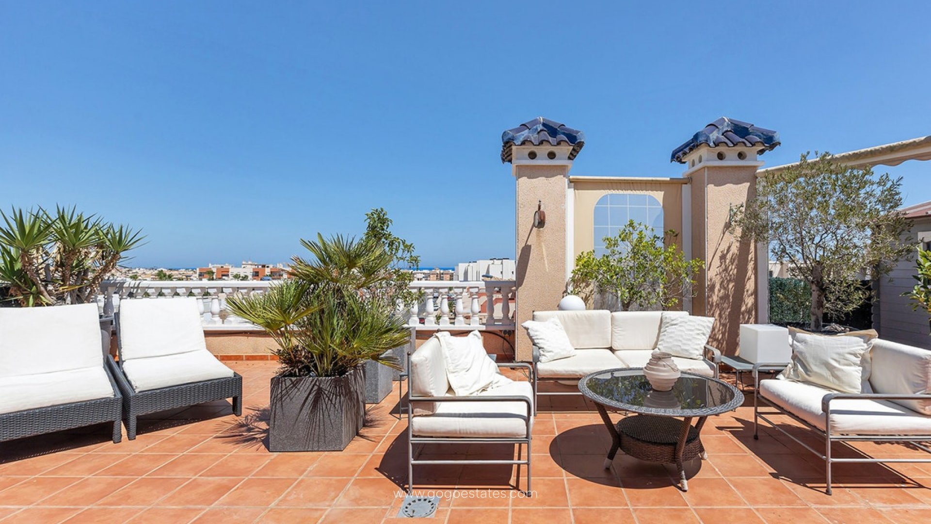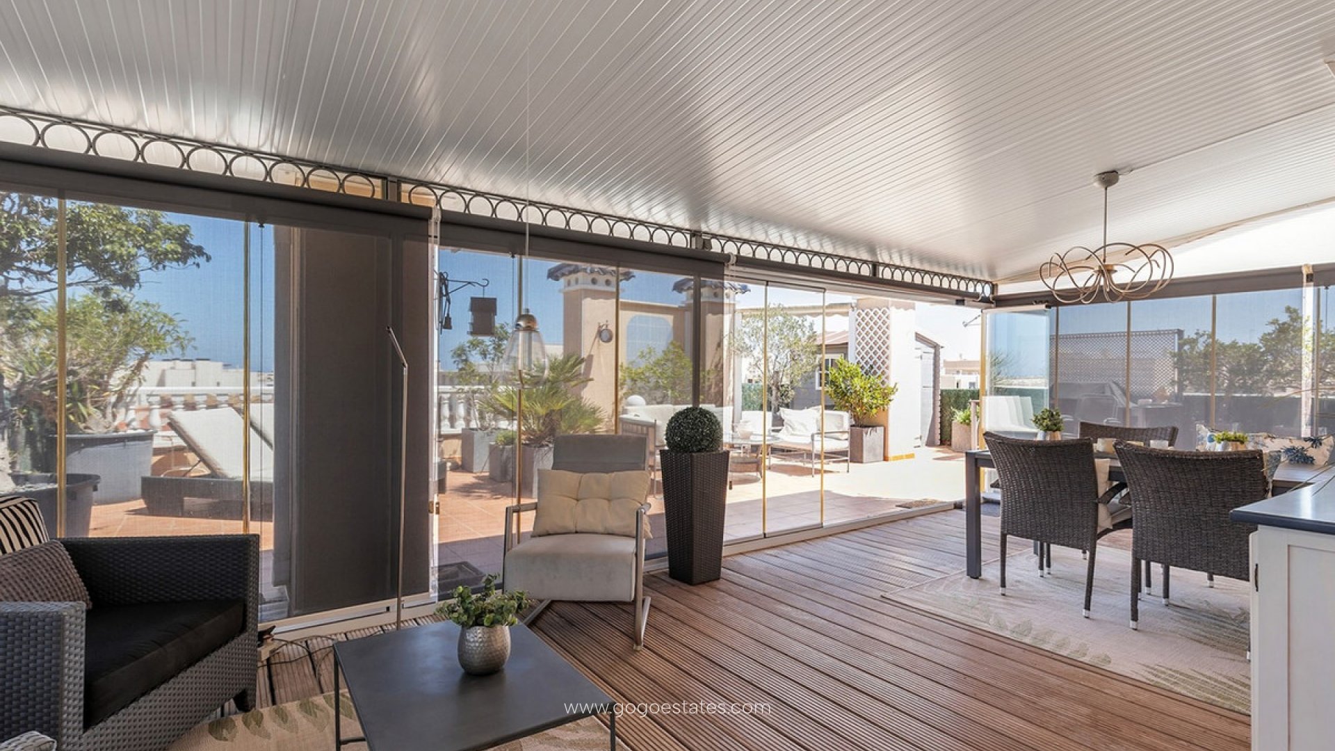 Ontdek dit prachtig afgewerkt penthouse appartement in een verzorgde residentie in Villamartin, op slechts drie kilometer van het strand. Dit instapklare appartement beschikt over twee comfortabele slaapkamers en twee ruime badkamers, allemaal gelegen op één niveau voor optimaal wooncomfort. Het interieur is smaakvol ingericht en afgewerkt met oog voor detail. De lichtrijke leefruimte en uiterst functionele moderne keuken sluiten naadloos aan op de ruime veranda en het grote privéterras, waar u in alle rust kunt genieten van het mediterrane klimaat. Bij de woning hoort een gesloten ondergrondse garage én een extra open parkeerplaats, beide inbegrepen in de prijs. Bovendien beschikt de residentie over een gemeenschappelijk binnen- en buitenzwembad, waardoor u het hele jaar door kunt genieten van waterpret en ontspanning. Een ideale eigendom voor wie op zoek is naar comfort, stijl en een uitstekende ligging nabij strand, golf en voorzieningen.