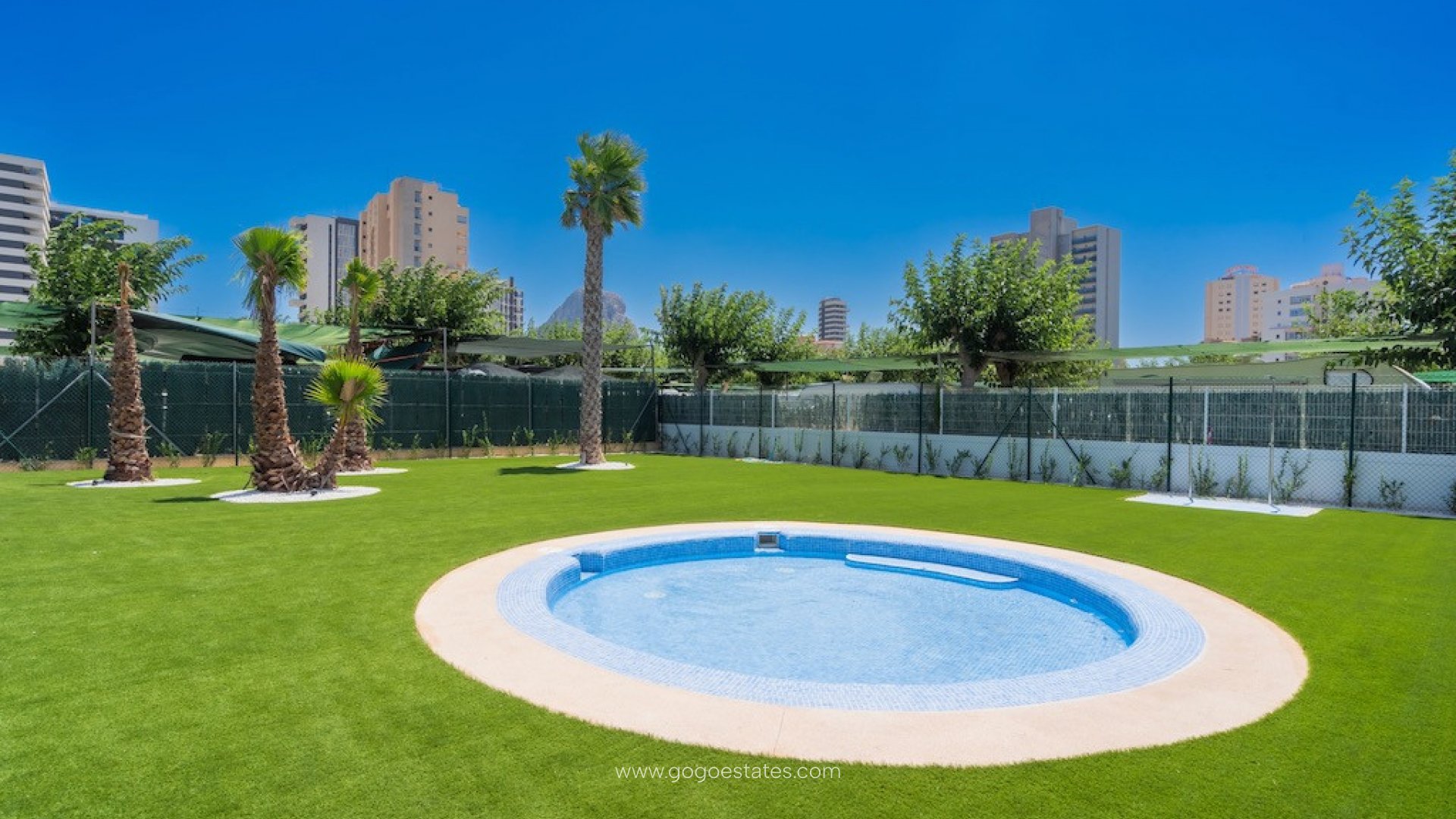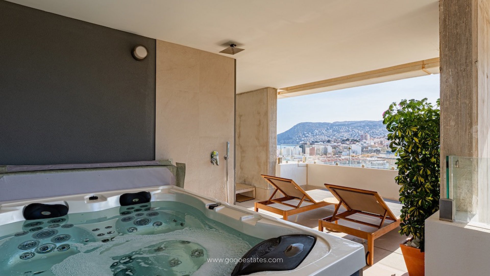 Luxe Appartement met Panoramisch Zeezicht op slechts een steenworp afstand van het Strand in Calpe Ontdek dit uitzonderlijke appartement uit 2024, gelegen op slechts een korte wandeling van het zandstrand van Arenal in Calpe. Dit appartement op de 14e verdieping bevindt zich in een exclusief, laagbouw wooncomplex met slechts 25 units en biedt ongeëvenaarde privacy, aangezien het het enige appartement op deze verdieping is. Het interieur is ontworpen met het oog op comfort en ruimte en beschikt over een lichte open woonkamer en keuken, die zijn aangepast ten opzichte van de oorspronkelijke indeling om de ruimte en het licht te maximaliseren. Grote schuifdeuren geven toegang tot drie ruime terrassen van elk meer dan 30 m², die dankzij de oriëntatie op het oosten, zuiden en westen een prachtig uitzicht en zonlicht van 's ochtends tot 's avonds bieden. De woning beschikt over twee royale slaapkamers, beide met een eigen badkamer en directe toegang tot de terrassen. Het terras op het westen is uitgerust met een buiten douche met warm en koud water en heeft een jacuzzi, waardoor het een ideaal privétoevluchtsoord is om te ontspannen. De hoogwaardige afwerking omvat een moderne keuken met Bosch-apparatuur, vloerverwarming in de badkamers en elektrische rolluiken in het hele appartement. Het appartement wordt volledig gemeubileerd en instapklaar verkocht, met een toeristische verhuurvergunning, waardoor het een uitstekende kans is voor zowel privégebruik als investering. Inbegrepen in de prijs zijn een beveiligde ondergrondse parkeerplaats en een berging. Een tweede parkeerplaats is optioneel beschikbaar. Bewoners hebben toegang tot een breed scala aan voorzieningen, waaronder een zwembad van 22 meter, een apart kinderbad, een speeltuin, een padelbaan en een moderne fitnessruimte, waardoor ze kunnen genieten van een resortachtige levensstijl op slechts enkele minuten van het stadscentrum en de kustlijn. Een zeldzame kans om een opvallend luxueus en modern appartement te bezitten op een van de meest gewilde locaties van Calpe.