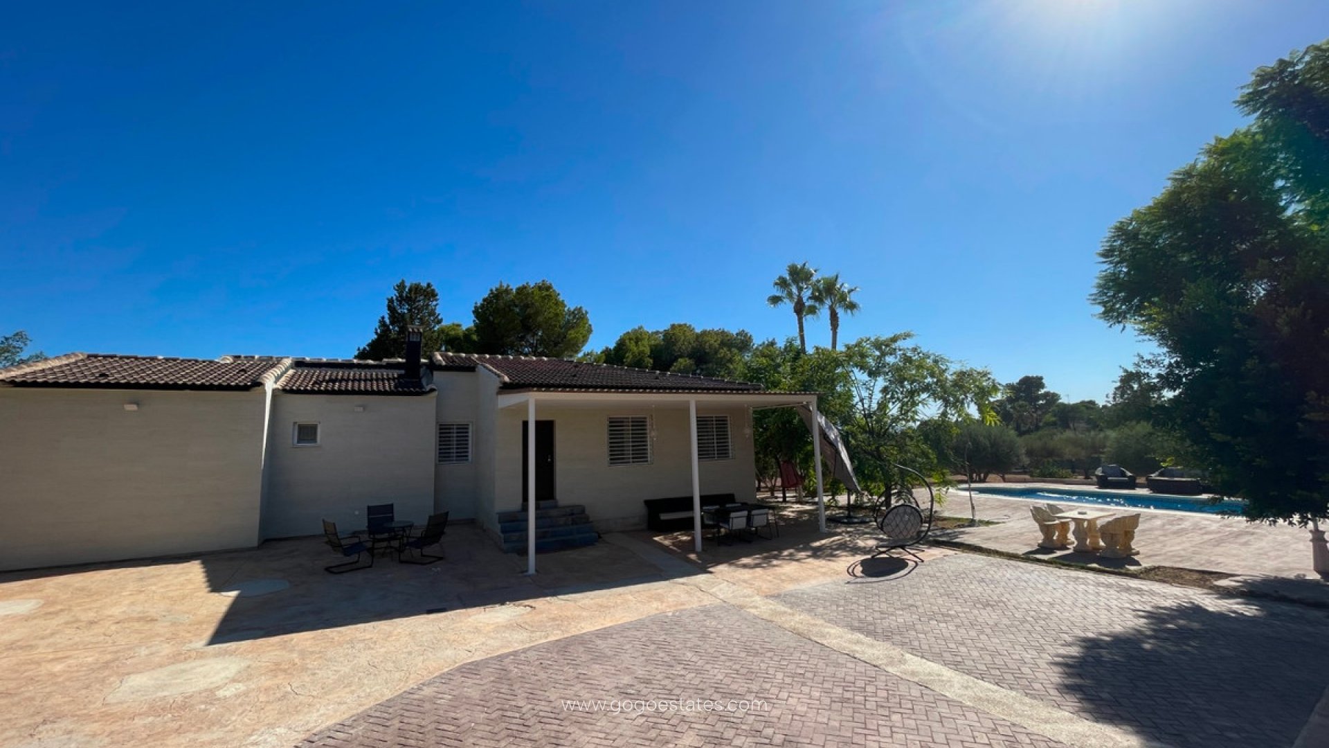 Fantastisch volledig gerenoveerde villa op een onverslaanbare locatieDeze prachtige bungalow heeft 300 m² woonoppervlakte, praktisch en elegant ingedeeld: Hoofdverdieping (130 m²): ruime volledig uitgeruste keuken-eetkamer, kleedkamer, hoofdslaapkamer met en-suite badkamer, een tweede slaapkamer, een complete badkamer, gipsplafonds, Climalit-ramen en zoneverwarming via het Air Zone-systeem. Open kelder (70 m²): met een tweede volledig uitgeruste keuken, ideaal voor bijeenkomsten, familievrije tijd, fitness of home cinema. Direct verbonden met de hoofdkeuken en het grote terras van 70 m², ook voorzien van airconditioning. Bijkeuken met buitentoilet (24 m²). Buiten biedt de woning het perfecte buitenleven: Privézwembad Meer dan 50 fruitbomen Gereedschapsschuur Drinkwater en irrigatiesysteem De villa heeft momenteel 3 slaapkamers, met de mogelijkheid om tot 2 extra slaapkamers toe te voegen, afhankelijk van de behoeften van de nieuwe eigenaren.Locatievoordelen: Gelegen in een van de best verbonden gebieden, zeer dicht bij de stad Elche. Dicht bij winkels en essentiële diensten, maar toch omgeven door rust en het platteland – de perfecte combinatie. In een exclusieve gemeenschap, die binnenkort zal beschikken over automatische poorten en beveiligingscamera's, wat zorgt voor een veilige en privéomgeving. Kortom, een woning die comfort, ruimte, veiligheid en natuur combineert in een bevoorrechte locatie, met het extra voordeel van twee volledig uitgeruste keukens voor meer gemak en veelzijdigheid.