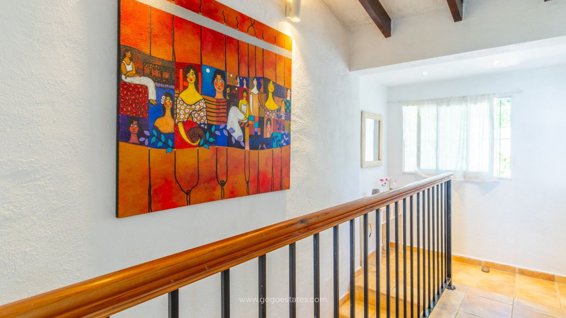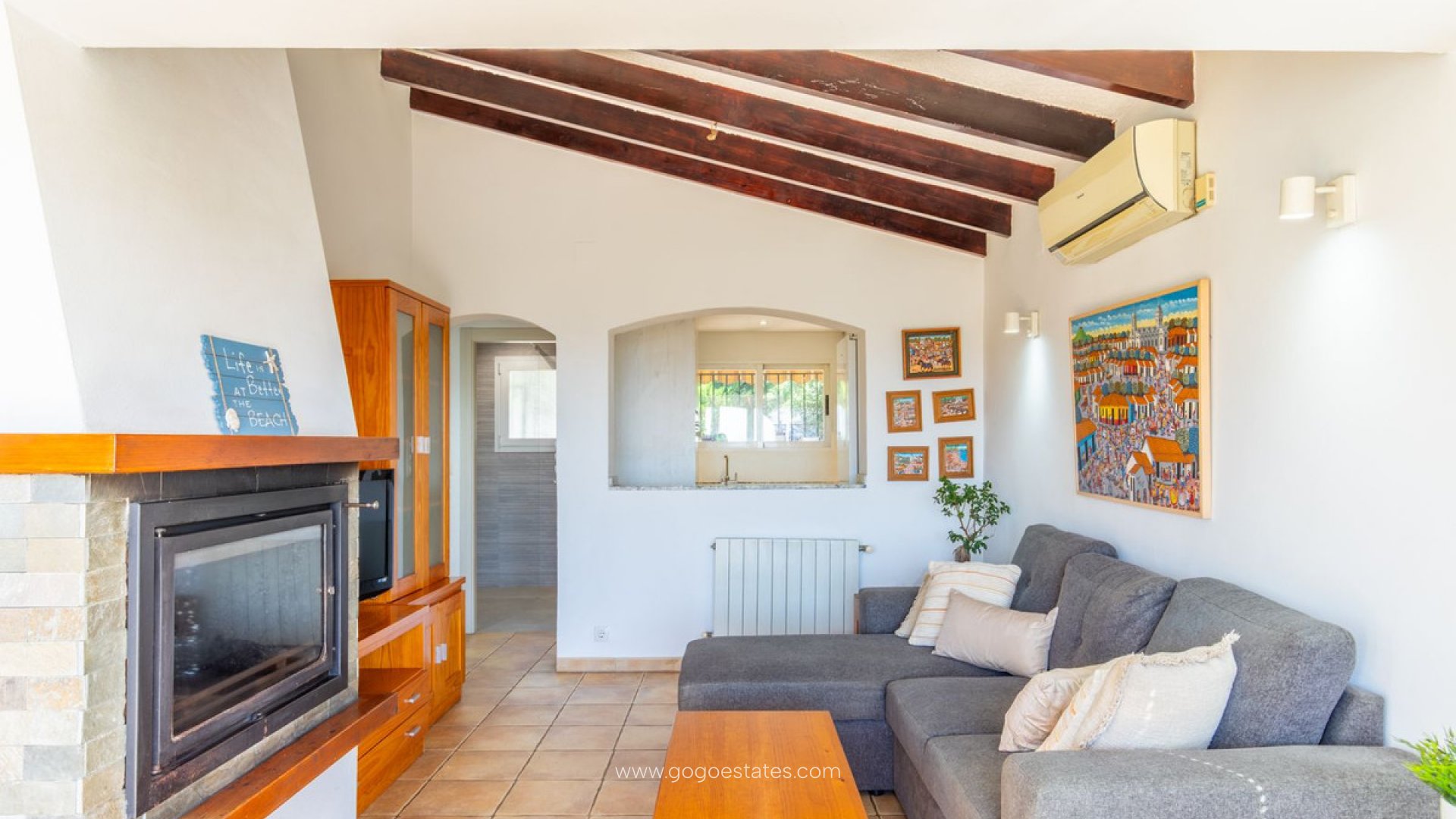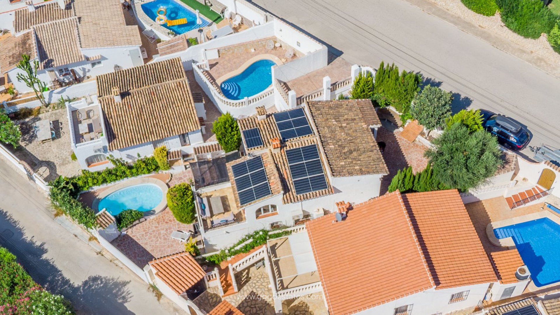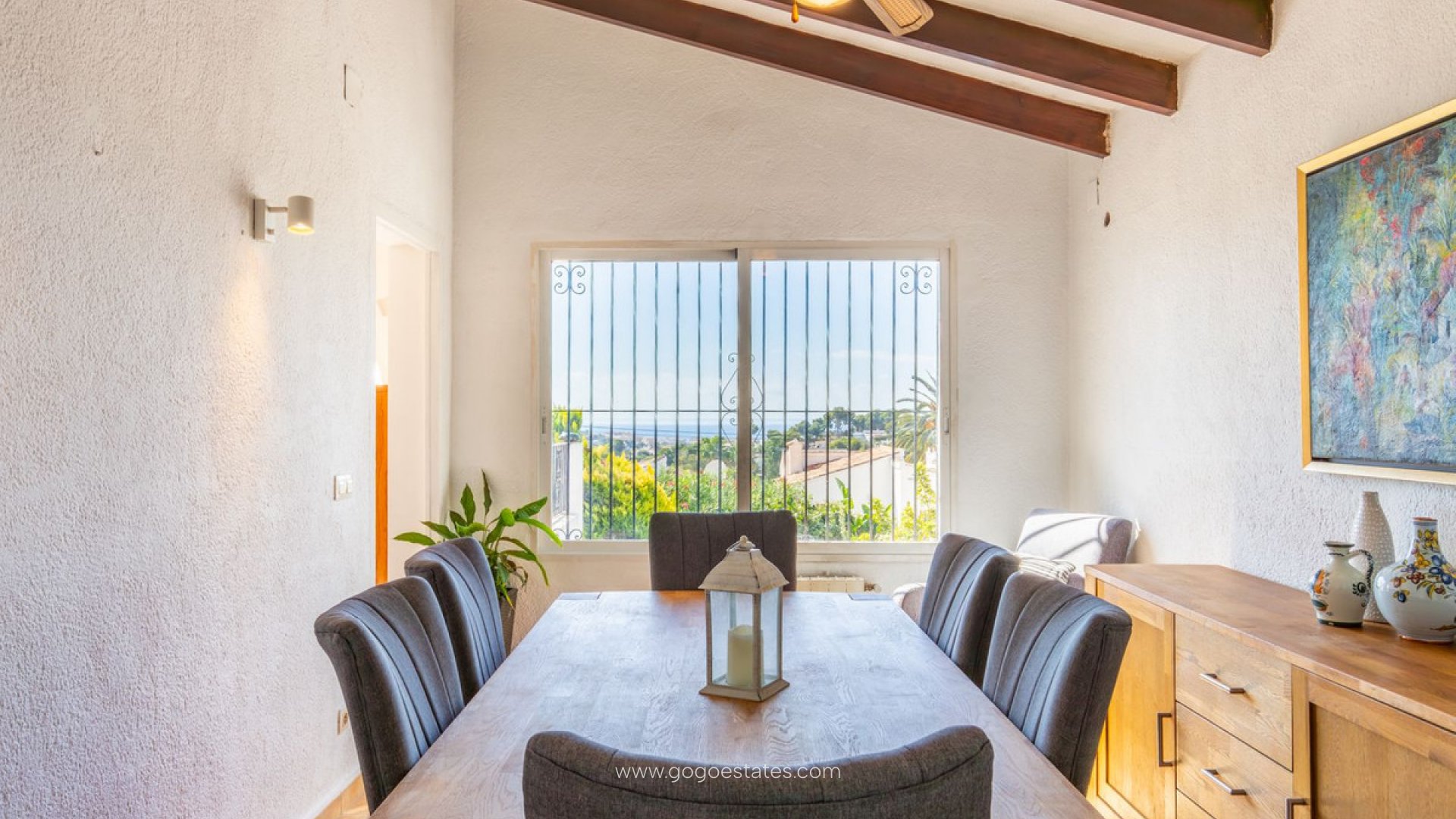 Gelegen in het prestigieuze gebied Camarrocha, Moraira, deze mediterraanse villa combineert charme, comfort en duurzaamheid. Met een zuidelijke oriëntatie en uitzicht op zee vanaf de hoofdverdieping, biedt de woning privacy en een ideale ligging op slechts enkele minuten van het strand, supermarkten, restaurants en alle voorzieningen. De woning is verdeeld over twee verdiepingen op een perceel van 253 m². Op de bovenverdieping omvat de woonruimte een lichte woonkamer met eetgedeelte met open haard, grote ramen die het uitzicht op zee omlijsten en directe toegang tot het terras, evenals een volledig uitgeruste keuken en een complete badkamer. Deze buitenruimte is perfect om te genieten van maaltijden in de open lucht of te ontspannen met familie en vrienden. Op de begane grond bevinden zich drie slaapkamers en een complete badkamer, wat comfort en onafhankelijkheid garandeert. Mediterraanse details, zoals de houten balken, zorgen voor warmte en karakter. Voorzien van verwarming via radiatoren met water aangesloten op de open haard, airconditioning, dubbele beglazing en zonnepanelen, garandeert de villa energie-efficiëntie en comfort het hele jaar door. Van buitenaf biedt de woning een privézwembad, een barbecuegebied, parkeerplaats op het perceel en toegang vanaf twee straten. Een unieke kans om te genieten van de mediterraanse levensstijl in een van de meest gewilde locaties van Moraira.