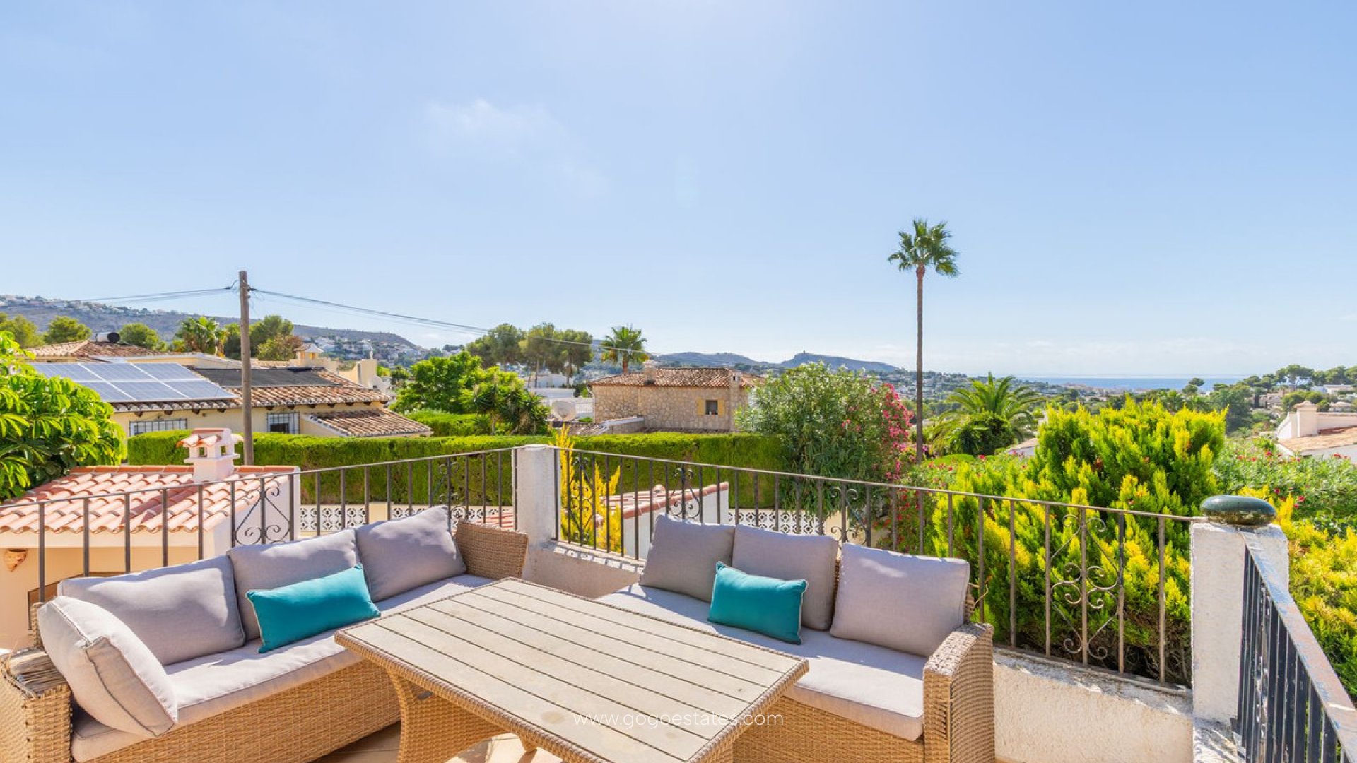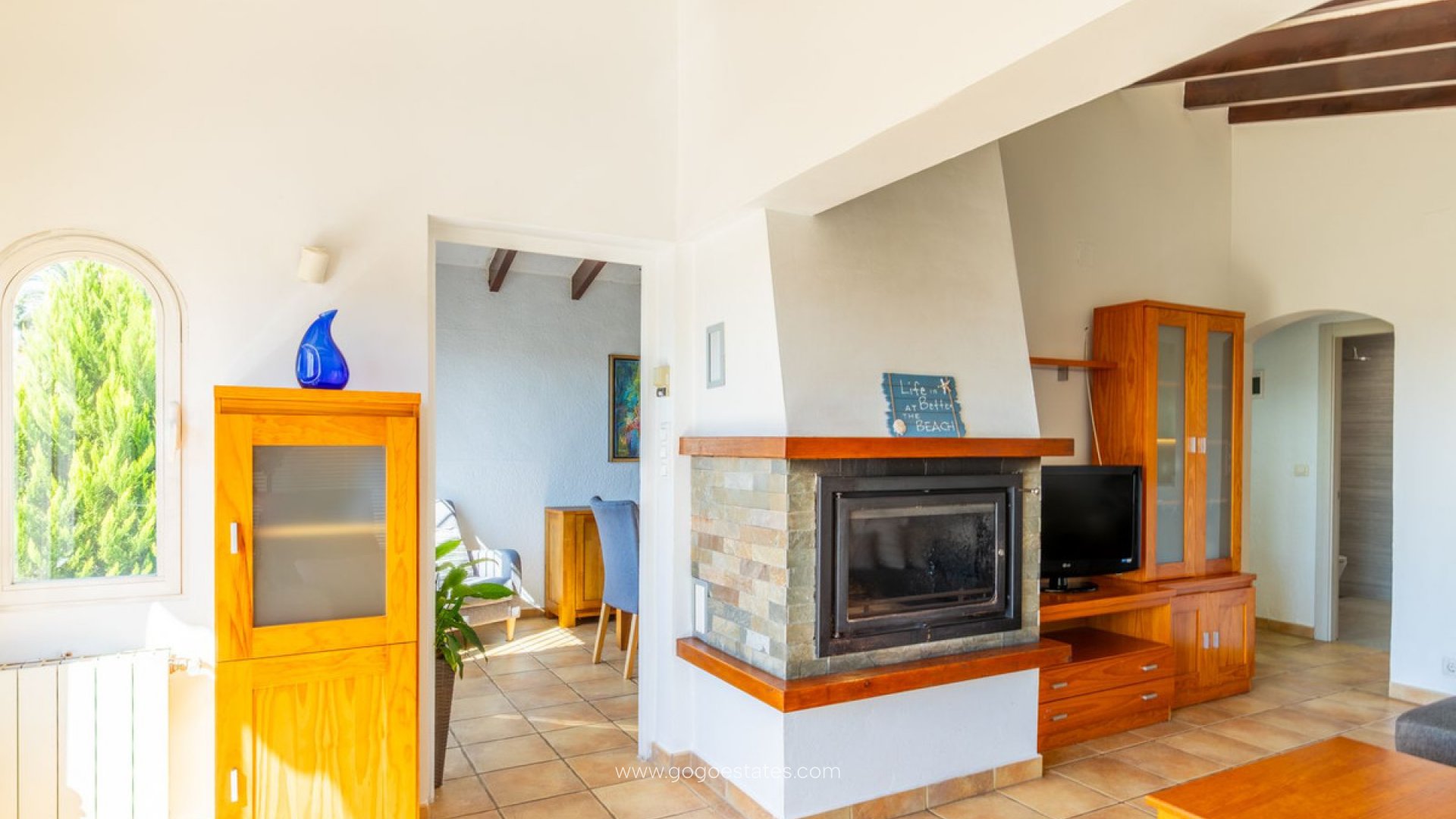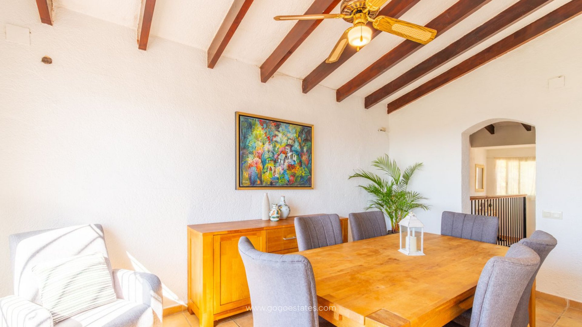 Gelegen in het prestigieuze gebied Camarrocha, Moraira, deze mediterraanse villa combineert charme, comfort en duurzaamheid. Met een zuidelijke oriëntatie en uitzicht op zee vanaf de hoofdverdieping, biedt de woning privacy en een ideale ligging op slechts enkele minuten van het strand, supermarkten, restaurants en alle voorzieningen. De woning is verdeeld over twee verdiepingen op een perceel van 253 m². Op de bovenverdieping omvat de woonruimte een lichte woonkamer met eetgedeelte met open haard, grote ramen die het uitzicht op zee omlijsten en directe toegang tot het terras, evenals een volledig uitgeruste keuken en een complete badkamer. Deze buitenruimte is perfect om te genieten van maaltijden in de open lucht of te ontspannen met familie en vrienden. Op de begane grond bevinden zich drie slaapkamers en een complete badkamer, wat comfort en onafhankelijkheid garandeert. Mediterraanse details, zoals de houten balken, zorgen voor warmte en karakter. Voorzien van verwarming via radiatoren met water aangesloten op de open haard, airconditioning, dubbele beglazing en zonnepanelen, garandeert de villa energie-efficiëntie en comfort het hele jaar door. Van buitenaf biedt de woning een privézwembad, een barbecuegebied, parkeerplaats op het perceel en toegang vanaf twee straten. Een unieke kans om te genieten van de mediterraanse levensstijl in een van de meest gewilde locaties van Moraira.