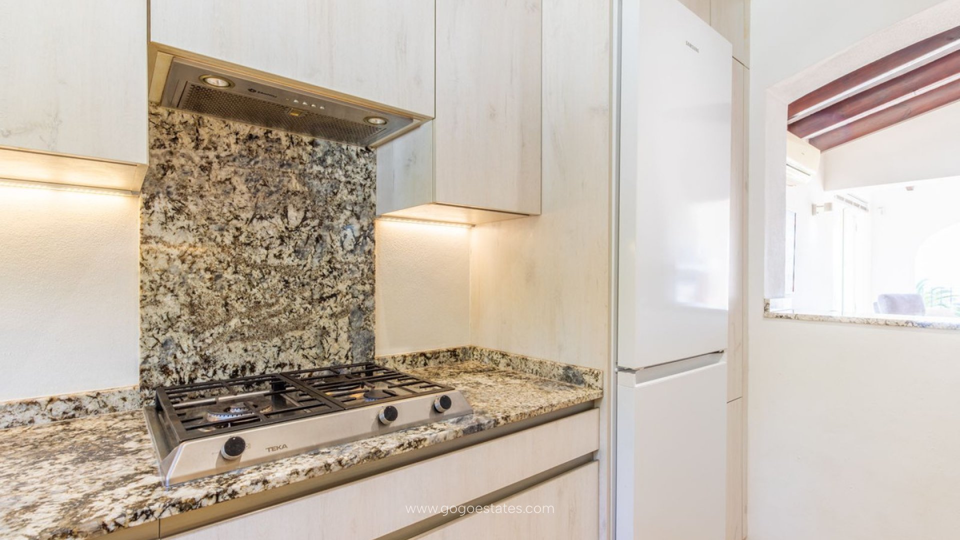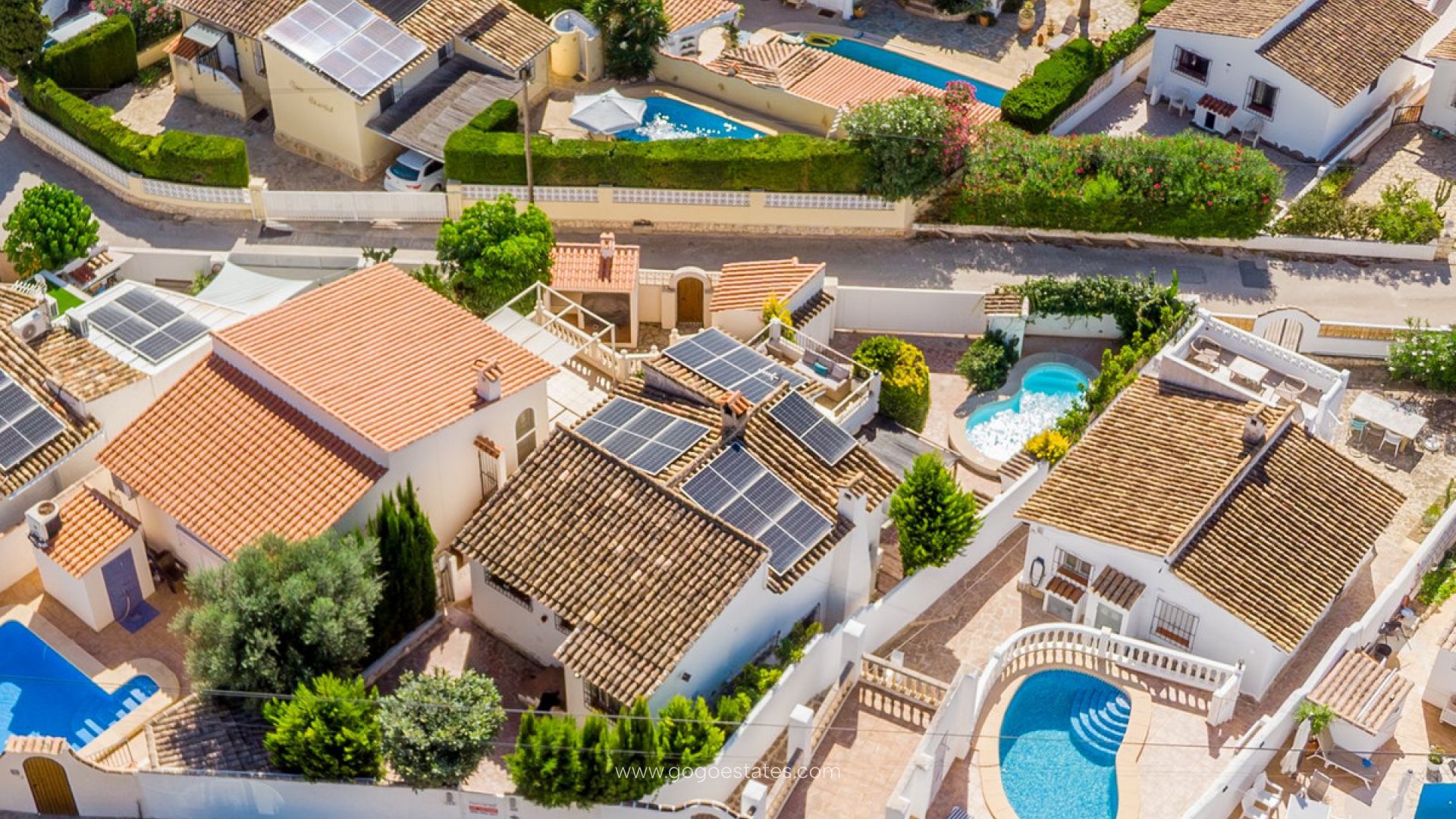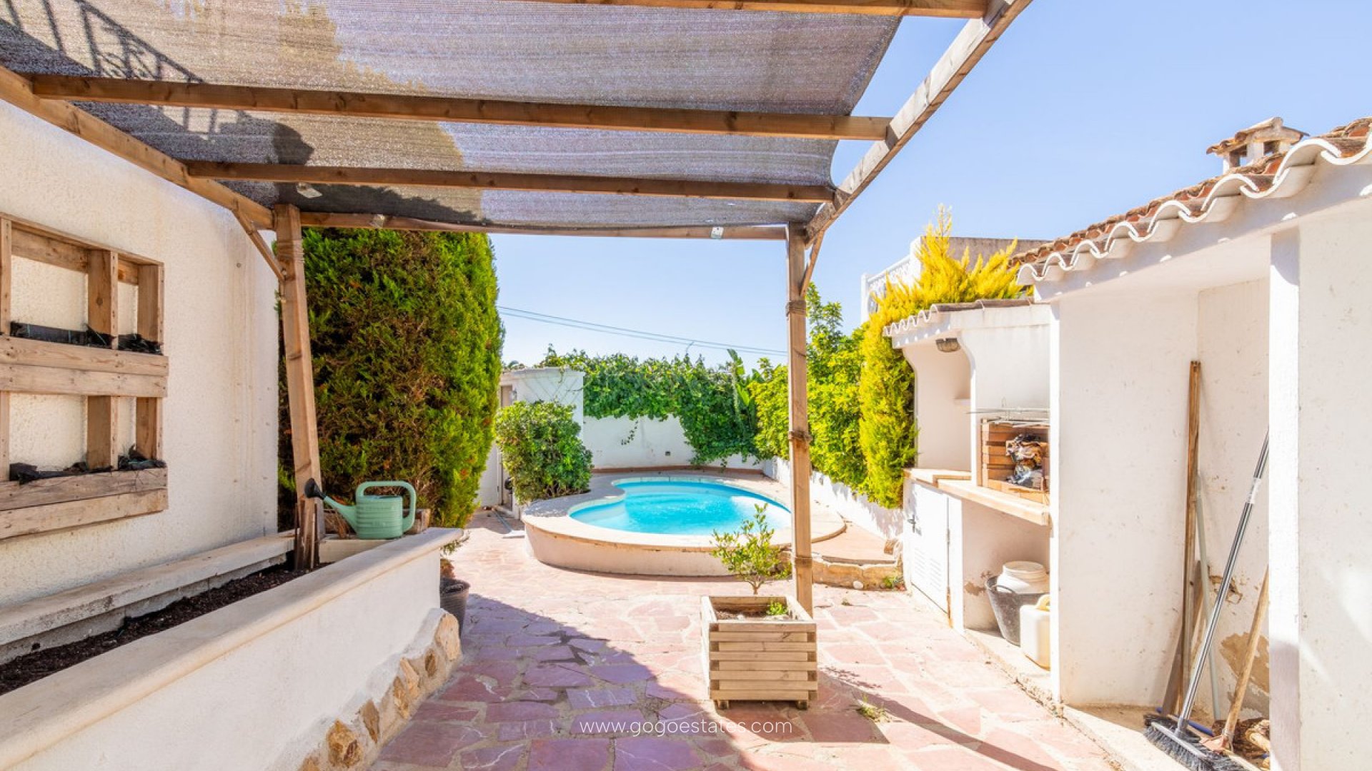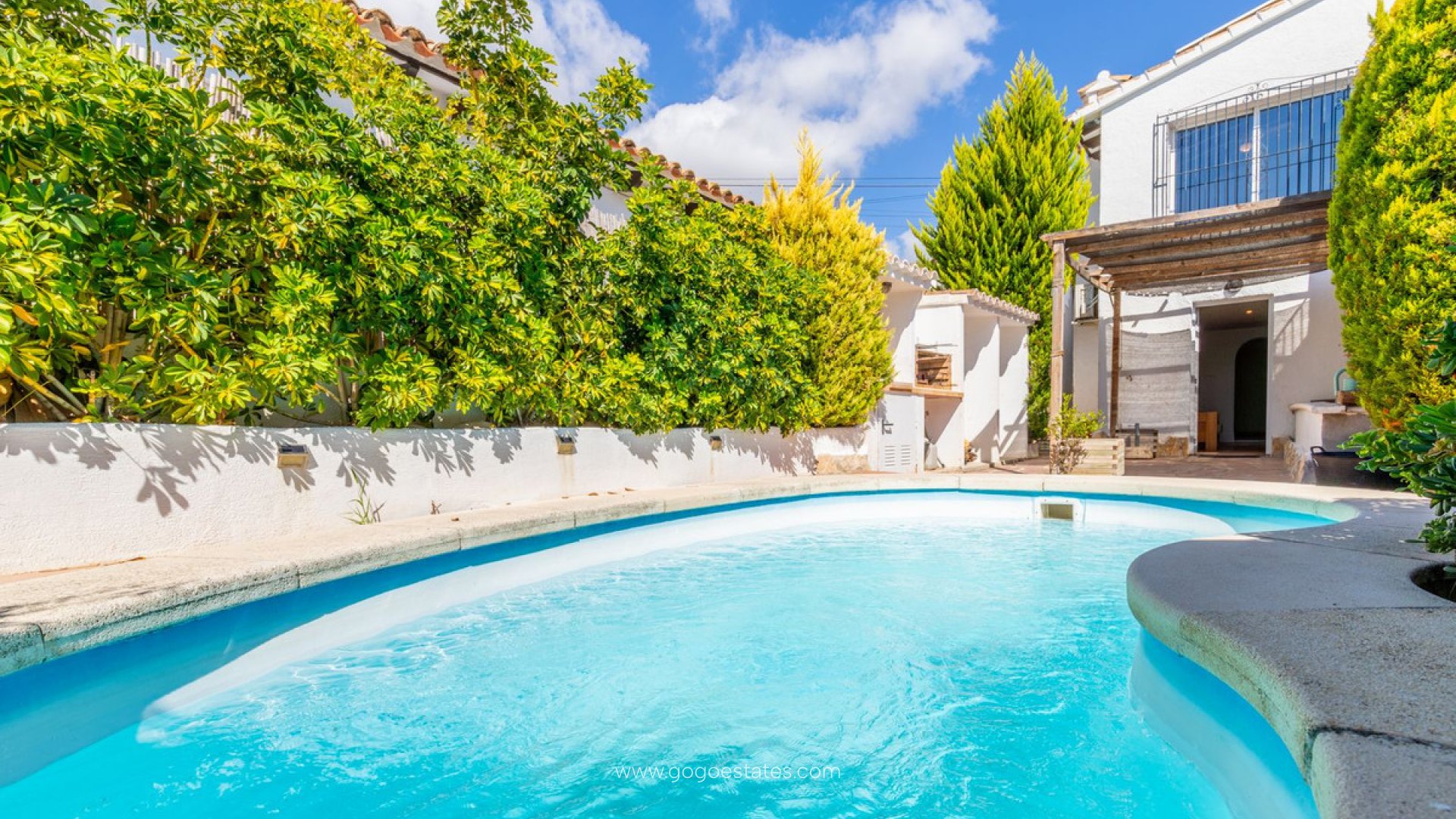 Gelegen in het prestigieuze gebied Camarrocha, Moraira, deze mediterraanse villa combineert charme, comfort en duurzaamheid. Met een zuidelijke oriëntatie en uitzicht op zee vanaf de hoofdverdieping, biedt de woning privacy en een ideale ligging op slechts enkele minuten van het strand, supermarkten, restaurants en alle voorzieningen. De woning is verdeeld over twee verdiepingen op een perceel van 253 m². Op de bovenverdieping omvat de woonruimte een lichte woonkamer met eetgedeelte met open haard, grote ramen die het uitzicht op zee omlijsten en directe toegang tot het terras, evenals een volledig uitgeruste keuken en een complete badkamer. Deze buitenruimte is perfect om te genieten van maaltijden in de open lucht of te ontspannen met familie en vrienden. Op de begane grond bevinden zich drie slaapkamers en een complete badkamer, wat comfort en onafhankelijkheid garandeert. Mediterraanse details, zoals de houten balken, zorgen voor warmte en karakter. Voorzien van verwarming via radiatoren met water aangesloten op de open haard, airconditioning, dubbele beglazing en zonnepanelen, garandeert de villa energie-efficiëntie en comfort het hele jaar door. Van buitenaf biedt de woning een privézwembad, een barbecuegebied, parkeerplaats op het perceel en toegang vanaf twee straten. Een unieke kans om te genieten van de mediterraanse levensstijl in een van de meest gewilde locaties van Moraira.