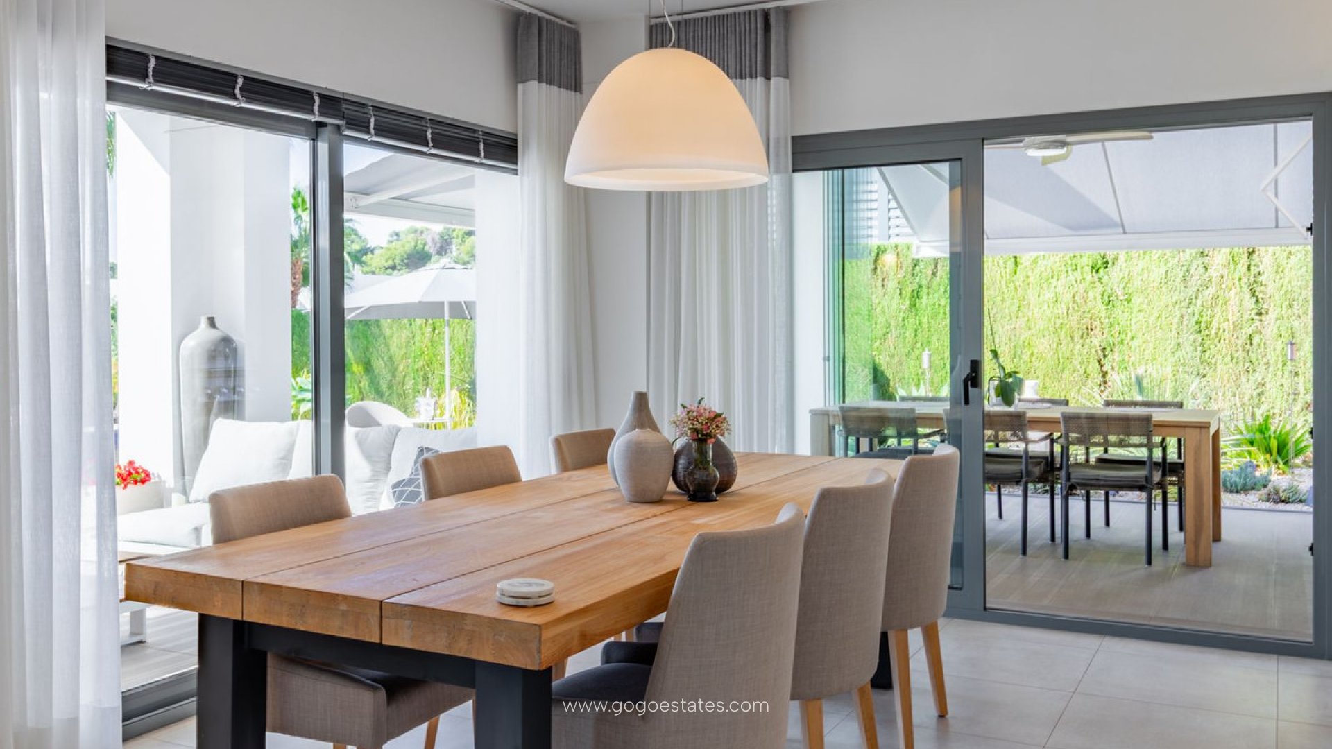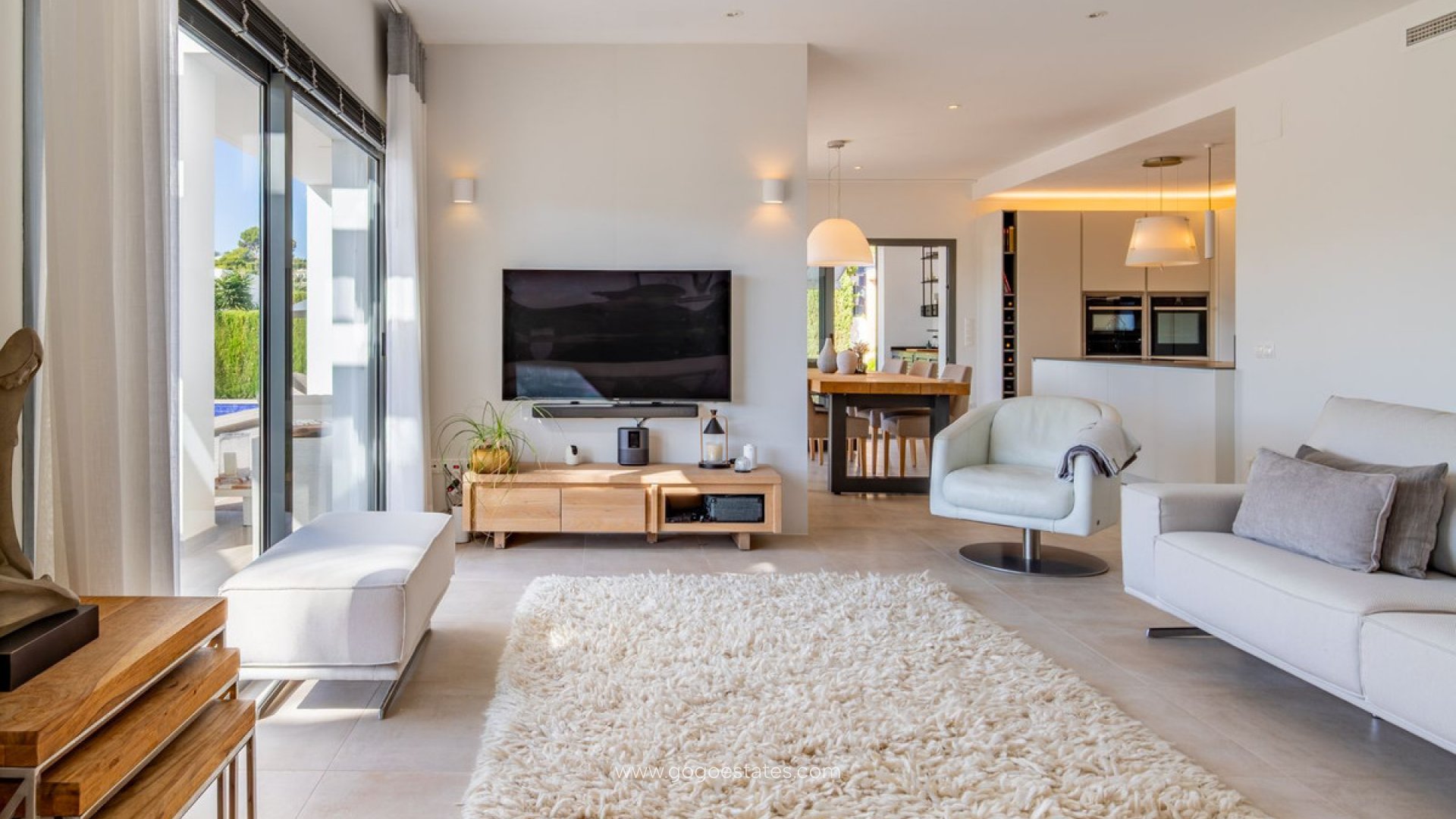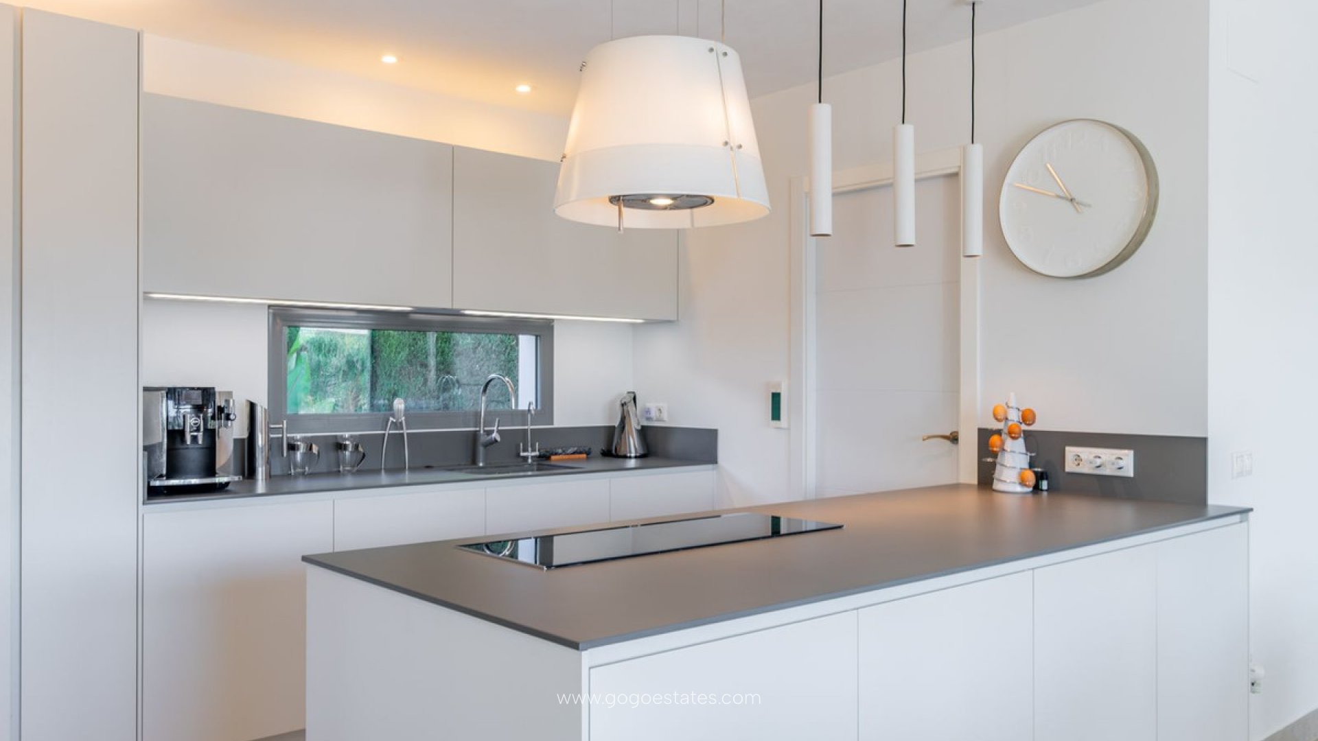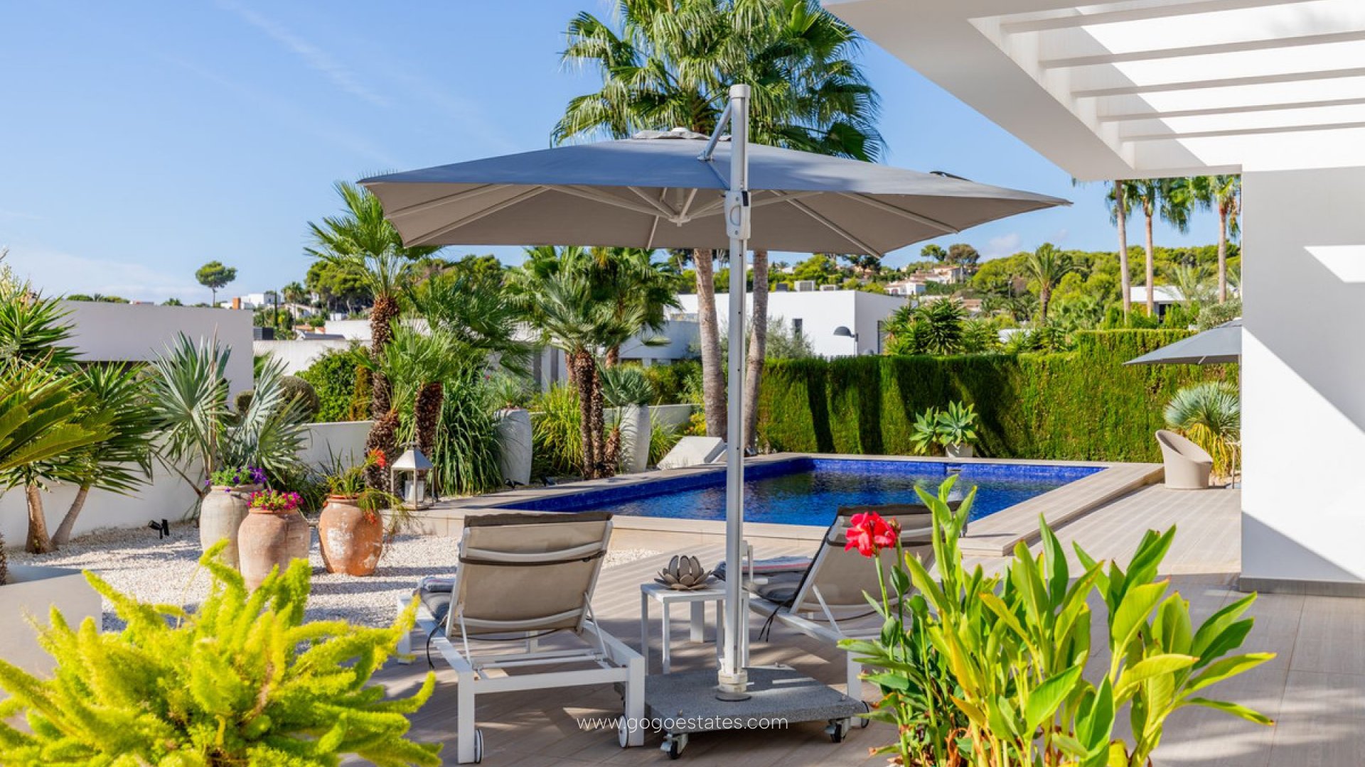 In een rustige straat van het gewilde Sol Park in Moraira staat een villa die niet alleen spektaculair uitziet... het voelt vanaf het eerste moment als thuis. Het is zo'n huis waar modern ontwerp samensmelt met warmte en alledag. Waar de grote ramen bijna de hele dag zonlicht binnenlaten, en de woonkamer de ontmoetingsplek wordt waar de kinderen op de vloer spelen terwijl jij iets bereidt in de open keuken, zonder een seconde te missen van wat er om je heen gebeurt. Met drie slaapkamers (waaronder een met eigen badkamer op de begane grond), is dit huis ontworpen om zich aan te passen aan het ritme van een actief gezin, aan het comfort van een stel dat ruimte wenst, of aan de rust van degenen die op zoek zijn naar een vakantiebestemming dicht bij de zee. Sinds de bouw in 2014 is het met zorg onderhouden, en dat is te merken aan de hoogwaardige materialen, de vloerverwarming, de airconditioning met kanalen en zelfs de zonnepanelen die efficiëntie aan de schoonheid toevoegen. Maar wat echt betovert, bevindt zich buiten: een diepblauwe zwembad dat uitnodigt om te duiken zonder op de klok te kijken, een zomerkeuken die klaar is om diner met vrienden te improviseren en een terras waar de avonden zich uitstrekken tussen lachbuien, glazen wijn en sterrenhemels. Hier is de Middellandse Zee niet alleen een landschap. Het is een levensstijl. En jij kunt het beleven.
