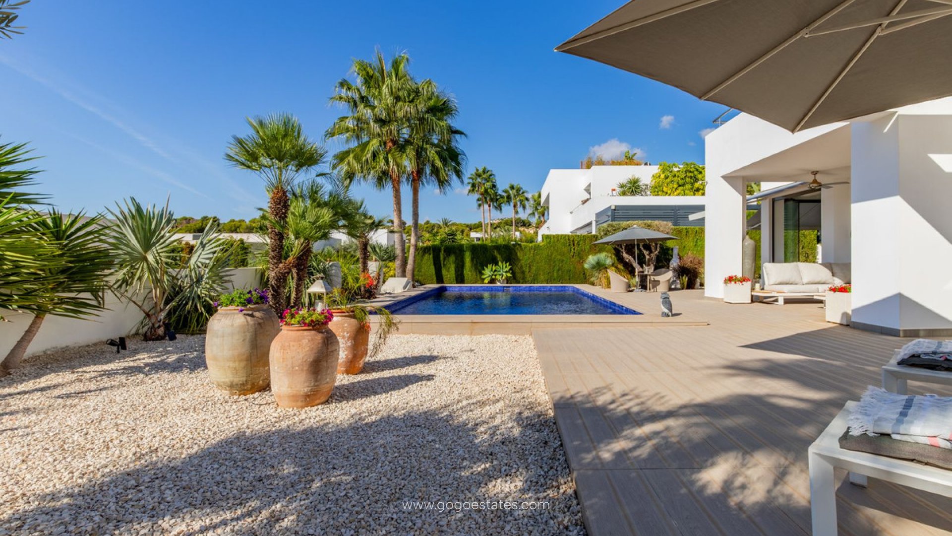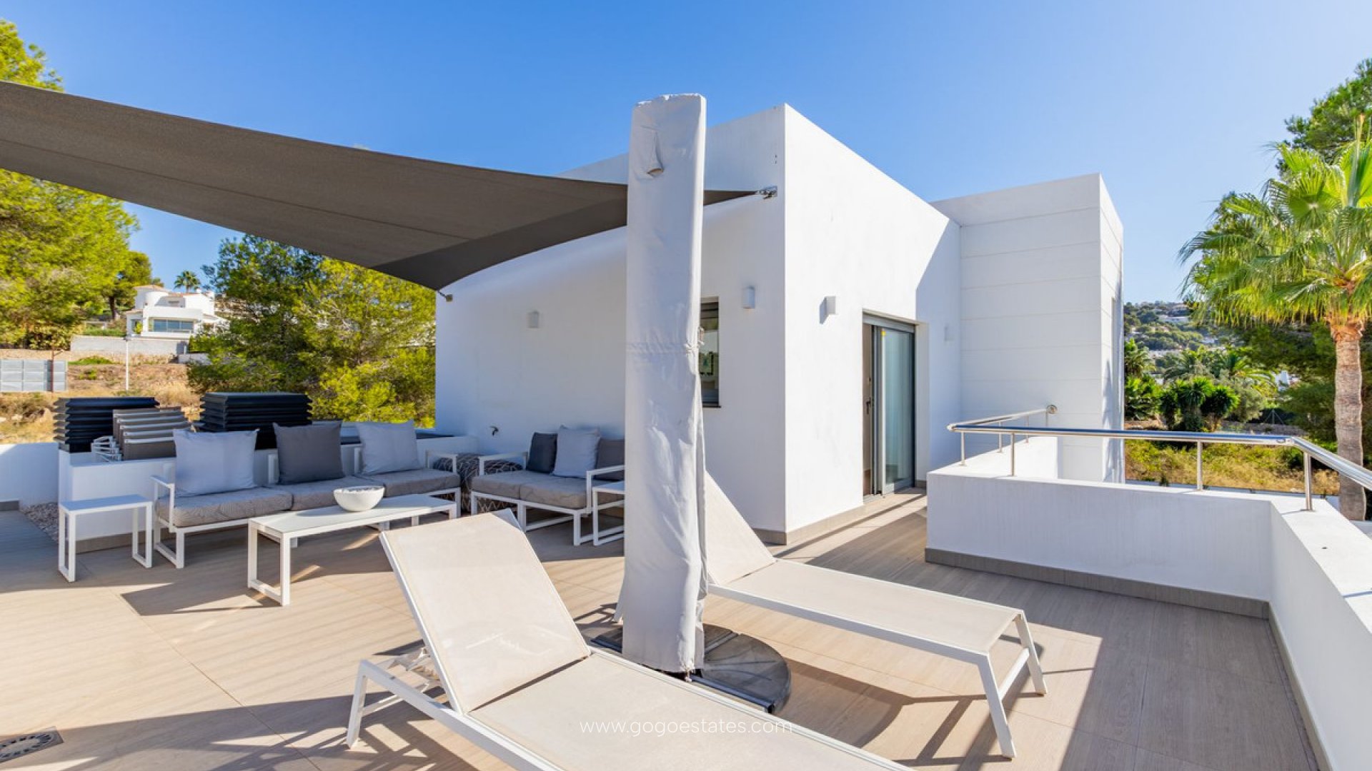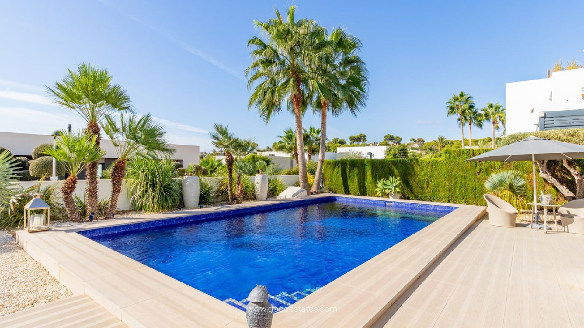 In een rustige straat van het gewilde Sol Park in Moraira staat een villa die niet alleen spektaculair uitziet... het voelt vanaf het eerste moment als thuis. Het is zo'n huis waar modern ontwerp samensmelt met warmte en alledag. Waar de grote ramen bijna de hele dag zonlicht binnenlaten, en de woonkamer de ontmoetingsplek wordt waar de kinderen op de vloer spelen terwijl jij iets bereidt in de open keuken, zonder een seconde te missen van wat er om je heen gebeurt. Met drie slaapkamers (waaronder een met eigen badkamer op de begane grond), is dit huis ontworpen om zich aan te passen aan het ritme van een actief gezin, aan het comfort van een stel dat ruimte wenst, of aan de rust van degenen die op zoek zijn naar een vakantiebestemming dicht bij de zee. Sinds de bouw in 2014 is het met zorg onderhouden, en dat is te merken aan de hoogwaardige materialen, de vloerverwarming, de airconditioning met kanalen en zelfs de zonnepanelen die efficiëntie aan de schoonheid toevoegen. Maar wat echt betovert, bevindt zich buiten: een diepblauwe zwembad dat uitnodigt om te duiken zonder op de klok te kijken, een zomerkeuken die klaar is om diner met vrienden te improviseren en een terras waar de avonden zich uitstrekken tussen lachbuien, glazen wijn en sterrenhemels. Hier is de Middellandse Zee niet alleen een landschap. Het is een levensstijl. En jij kunt het beleven.