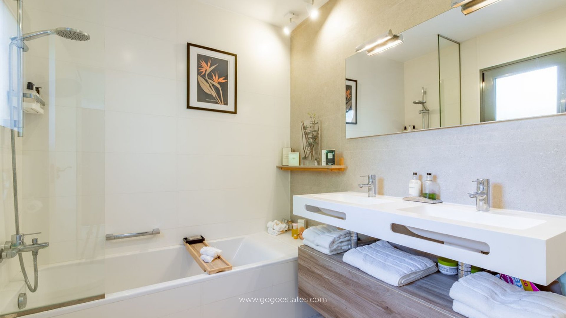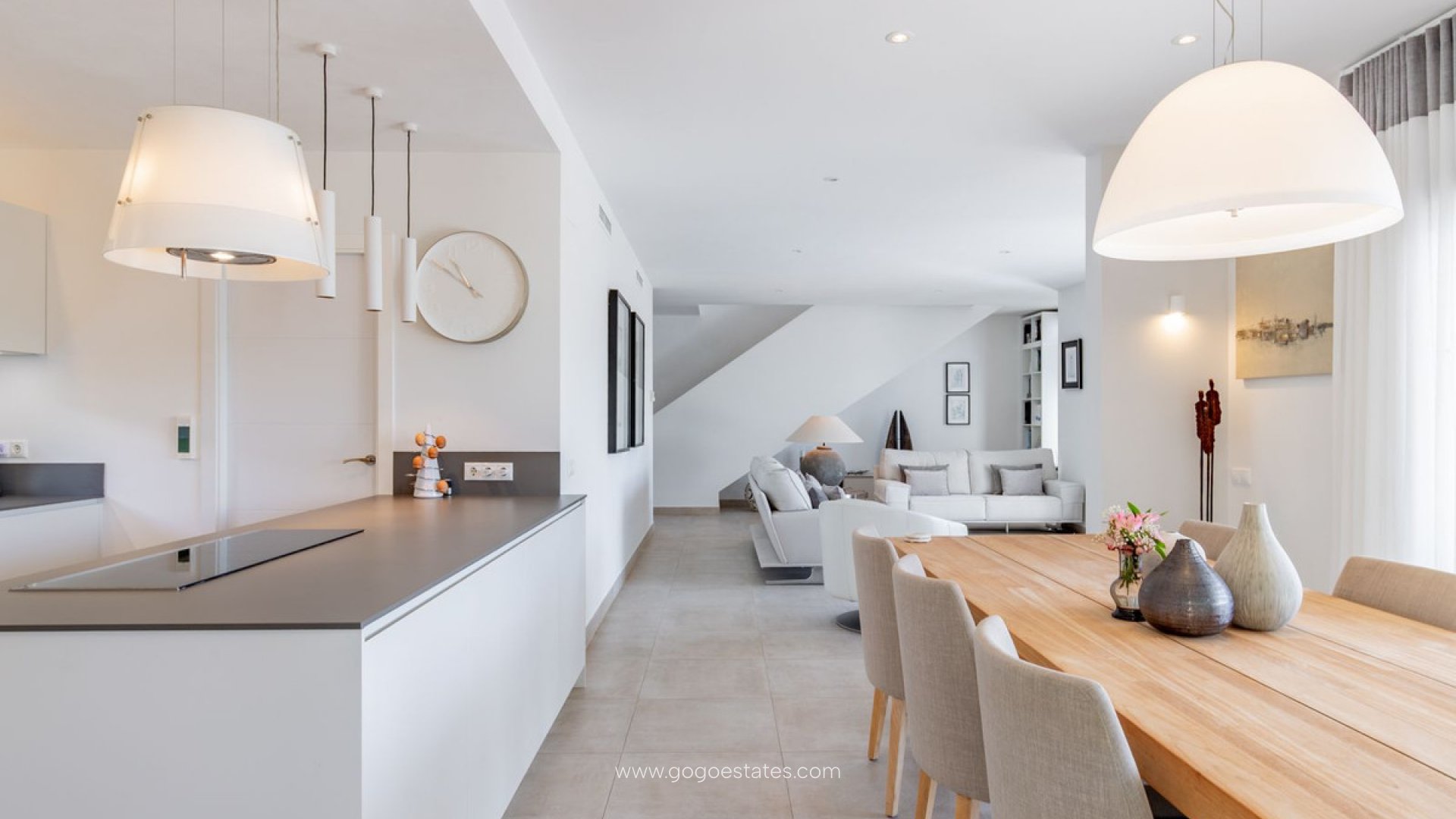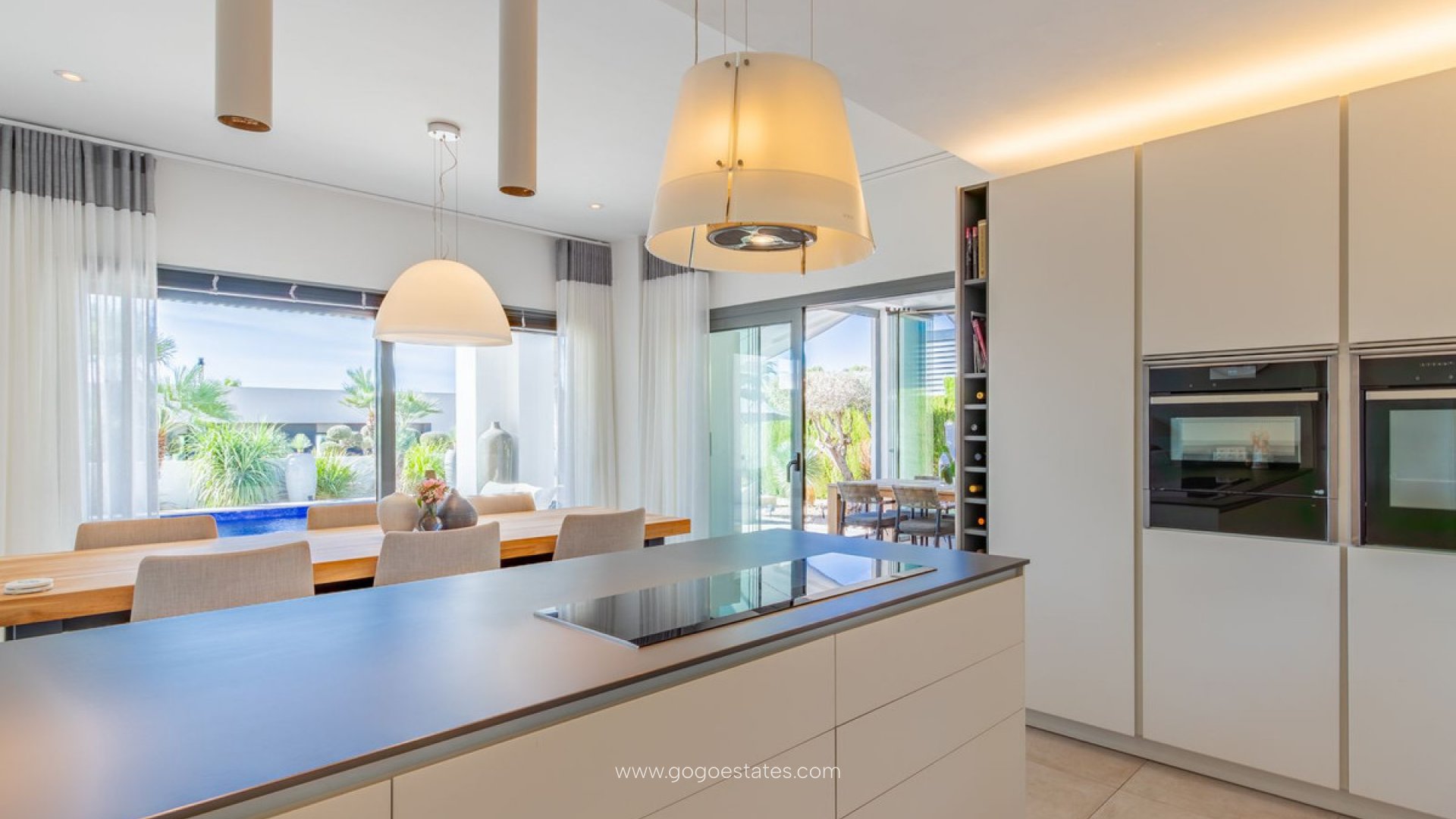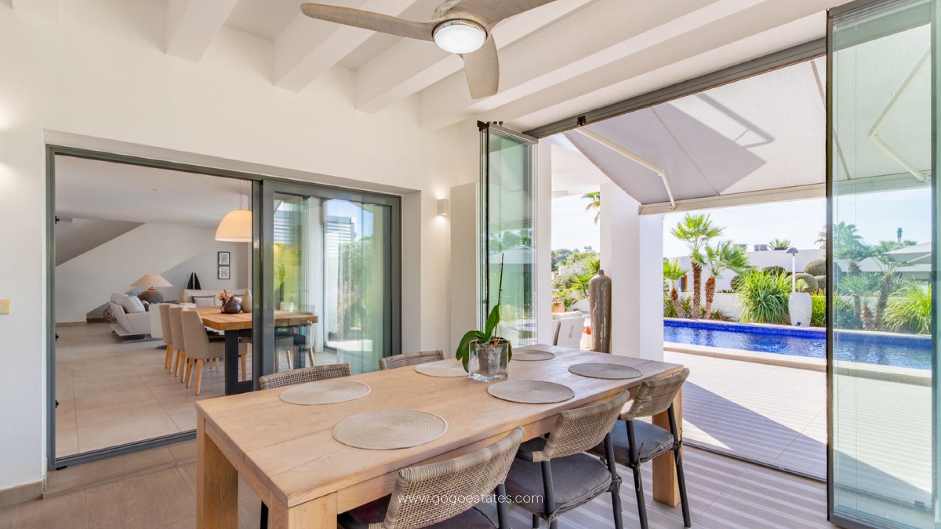 In een rustige straat van het gewilde Sol Park in Moraira staat een villa die niet alleen spektaculair uitziet... het voelt vanaf het eerste moment als thuis. Het is zo'n huis waar modern ontwerp samensmelt met warmte en alledag. Waar de grote ramen bijna de hele dag zonlicht binnenlaten, en de woonkamer de ontmoetingsplek wordt waar de kinderen op de vloer spelen terwijl jij iets bereidt in de open keuken, zonder een seconde te missen van wat er om je heen gebeurt. Met drie slaapkamers (waaronder een met eigen badkamer op de begane grond), is dit huis ontworpen om zich aan te passen aan het ritme van een actief gezin, aan het comfort van een stel dat ruimte wenst, of aan de rust van degenen die op zoek zijn naar een vakantiebestemming dicht bij de zee. Sinds de bouw in 2014 is het met zorg onderhouden, en dat is te merken aan de hoogwaardige materialen, de vloerverwarming, de airconditioning met kanalen en zelfs de zonnepanelen die efficiëntie aan de schoonheid toevoegen. Maar wat echt betovert, bevindt zich buiten: een diepblauwe zwembad dat uitnodigt om te duiken zonder op de klok te kijken, een zomerkeuken die klaar is om diner met vrienden te improviseren en een terras waar de avonden zich uitstrekken tussen lachbuien, glazen wijn en sterrenhemels. Hier is de Middellandse Zee niet alleen een landschap. Het is een levensstijl. En jij kunt het beleven.