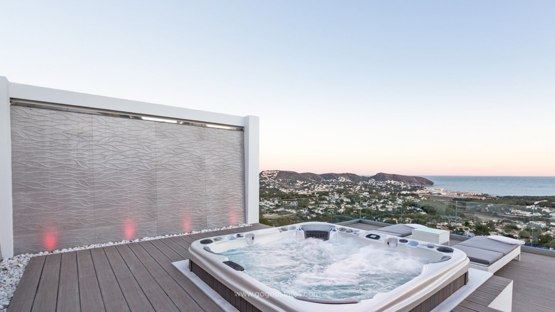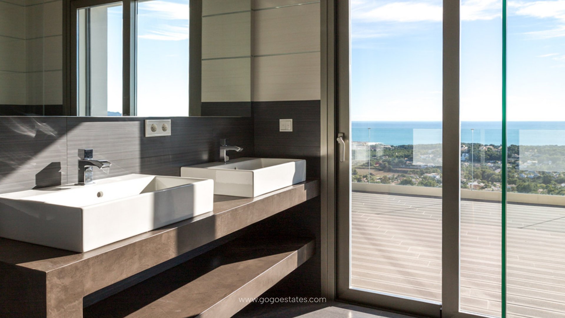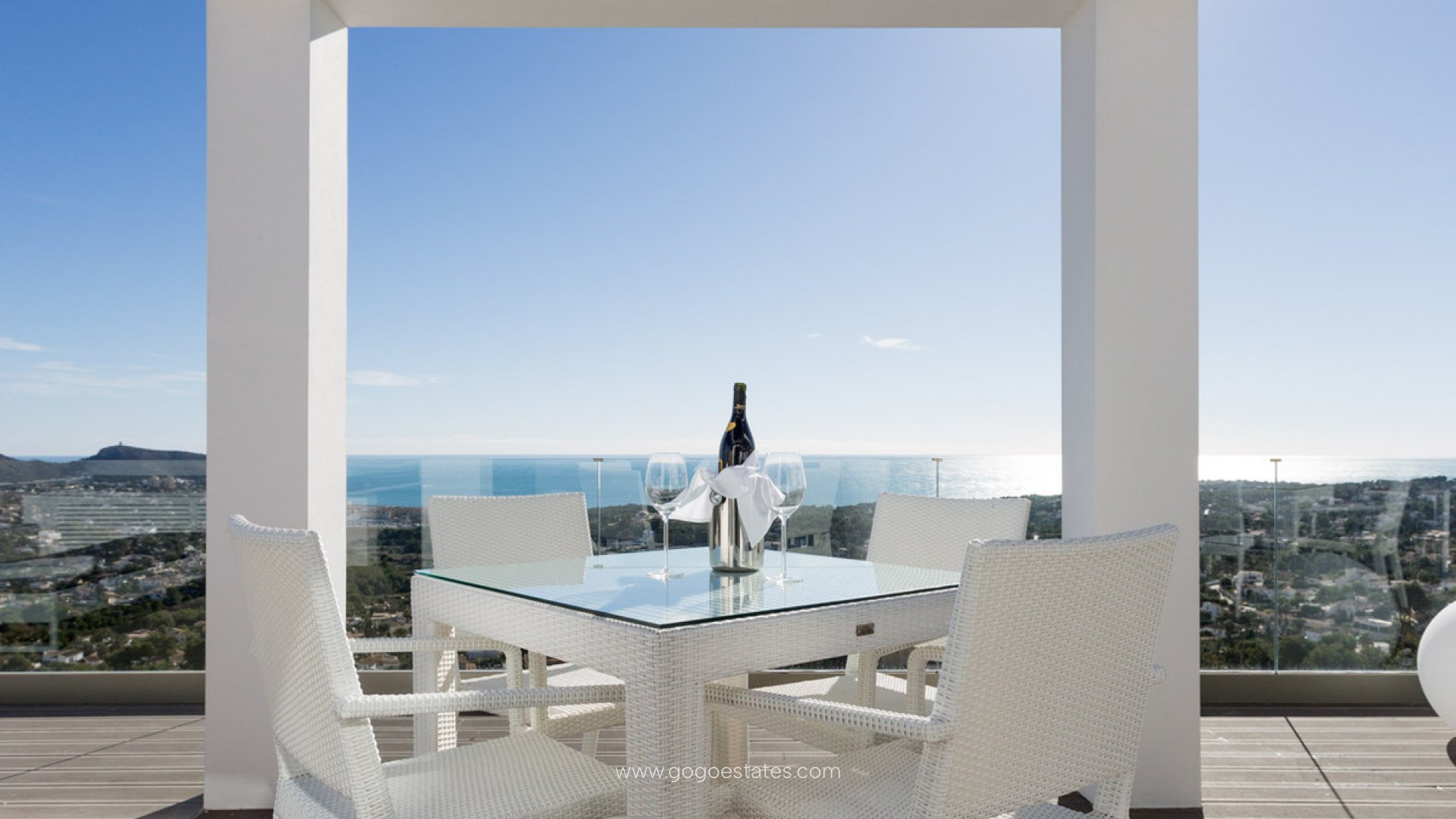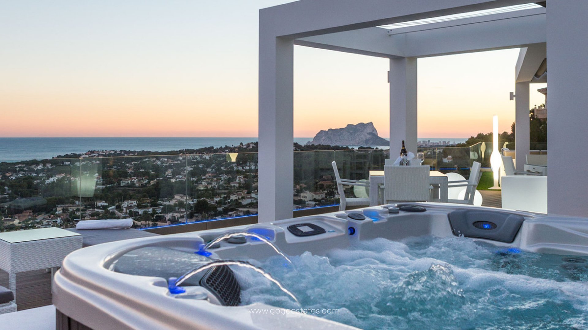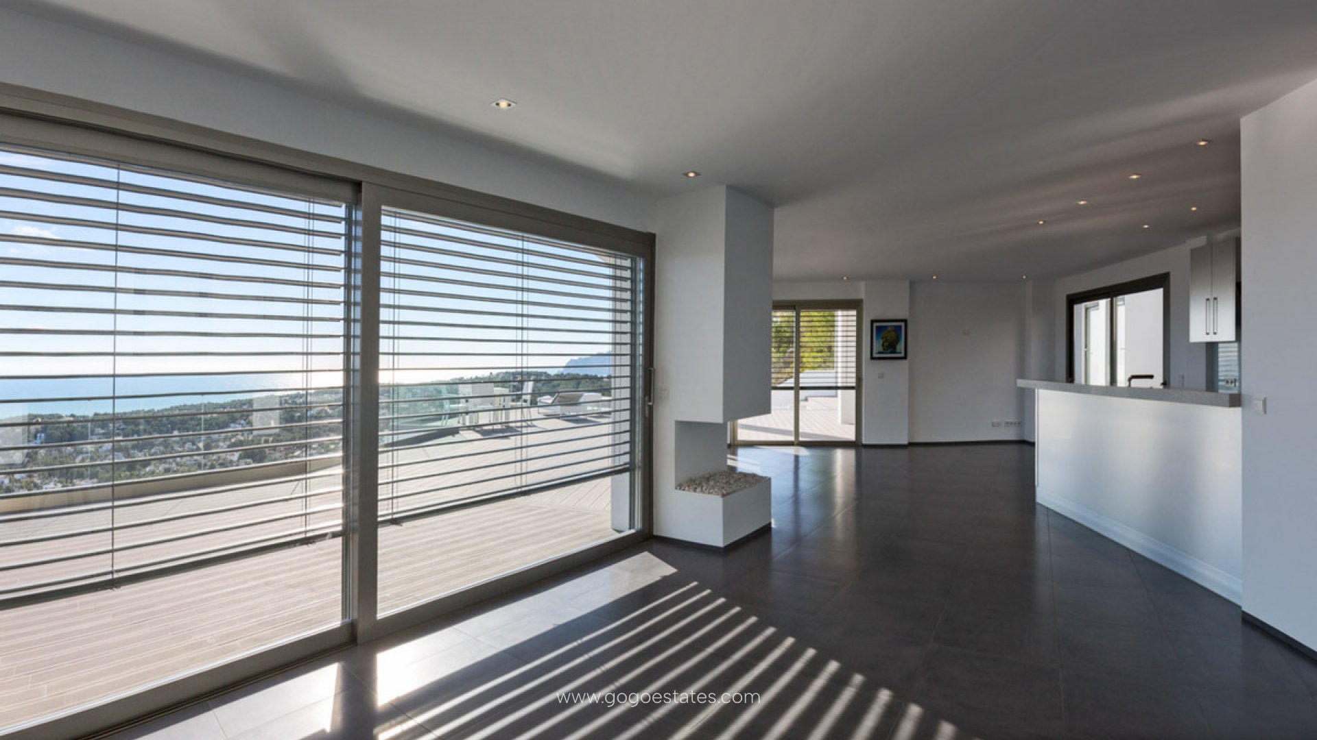 Deze exclusieve villa in moderne stijl staat op een perceel van meer dan 900 m², op het zuiden gericht, zodat u de hele dag kunt genieten van de zon en een prachtig open uitzicht op de Middellandse Zee. Met meer dan 400 m² woonoppervlak en 480 m² terrassen combineert de woning perfect hedendaags design, comfort en elegantie. Op de begane grond bevindt zich een ruime en lichte woon-/eetkamer met open haard, die naadloos overgaat in een open en geïntegreerde professionele keuken, ontworpen voor zowel dagelijks gebruik als gezelligheid. Vanaf deze verdieping is er directe toegang tot het spectaculaire hoofdterras, waar het dubbelzijdige infinity zwembad visueel versmelt met de horizon van de zee. Op dezelfde verdieping bevindt zich een slaapkamer met en-suite badkamer en kleedkamer, die eveneens directe toegang biedt tot het terras en uitzicht op zee, wat een intieme en serene sfeer biedt. Beneden beschikt de villa over drie elegante slaapkamers met en-suite badkamer, die allemaal uitkomen op een ruim terras. Op deze verdieping bevindt zich ook een ruime open ruimte, ideaal als fitnessruimte, studeerkamer of recreatieruimte, en een exclusieve spa met een glazen sauna en toegang tot een terras met een buitenjacuzzi, een perfecte plek voor ontspanning en welzijn. Het dakterras is een ware oase van plezier en ontspanning. Daar kunnen eigenaren genieten van een hydromassageruimte, een decoratieve waterval, ligstoelen en elegant chill-outmeubilair, allemaal vergezeld door een professionele buitenkeuken met bar en toonbank, een gastentoilet en een grote schaduwrijke plek waar u in alle comfort en privacy van de omgeving kunt genieten. De woning is uitgerust met vloerverwarming op zonne-energie en een warmtepomp, airconditioning in alle kamers, op maat ontworpen interieur, een bewakings- en alarmsysteem, een elektrische poort, een garage en een volledig omheinde buitenmuur, wat maximale veiligheid en privacy garandeert. Gelegen in Moraira, een van de meest exclusieve enclaves aan de Costa Blanca, ligt deze villa op slechts enkele minuten van het centrum en de charmante baaien met kristalhelder water. Moraira combineert de charme van een oud vissersdorp met een eersteklas keuken, een jachthaven, boetiekjes en een ongeëvenaarde levenskwaliteit. Een bevoorrechte locatie waar zee, luxe en rust in perfecte harmonie samengaan.