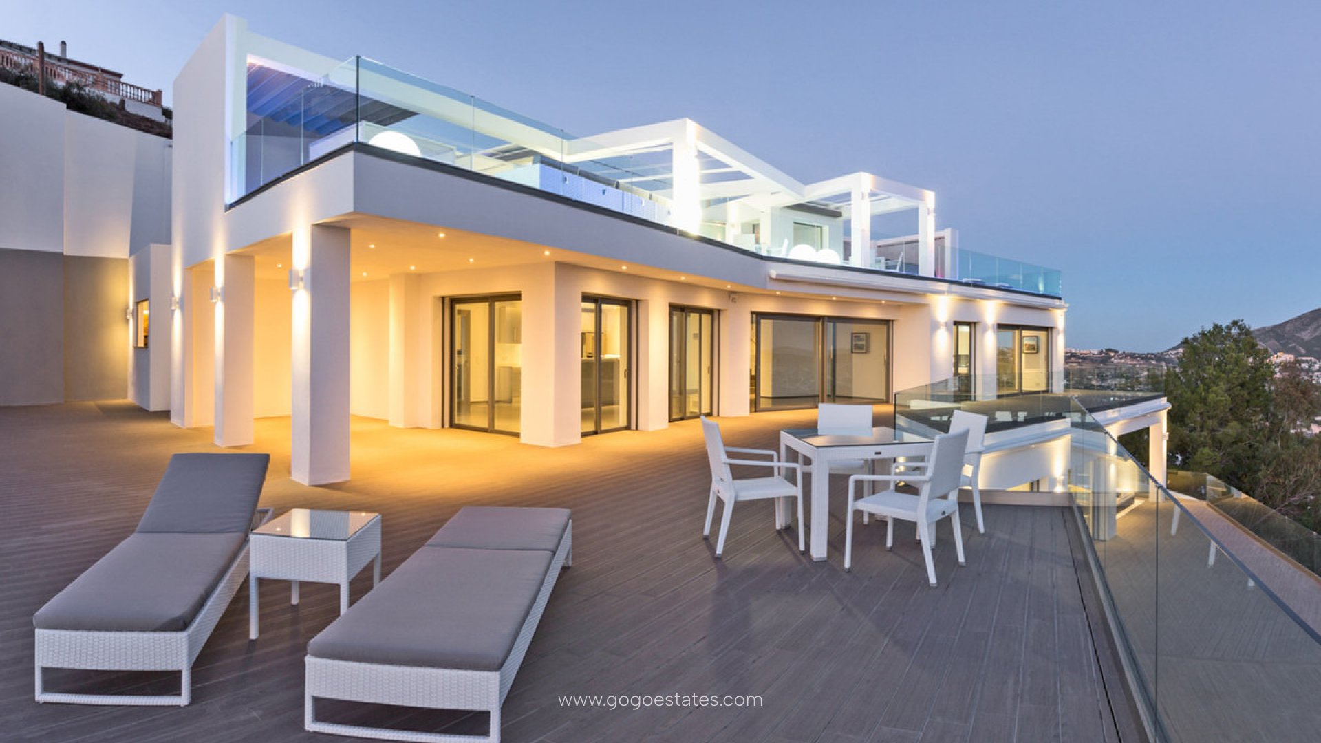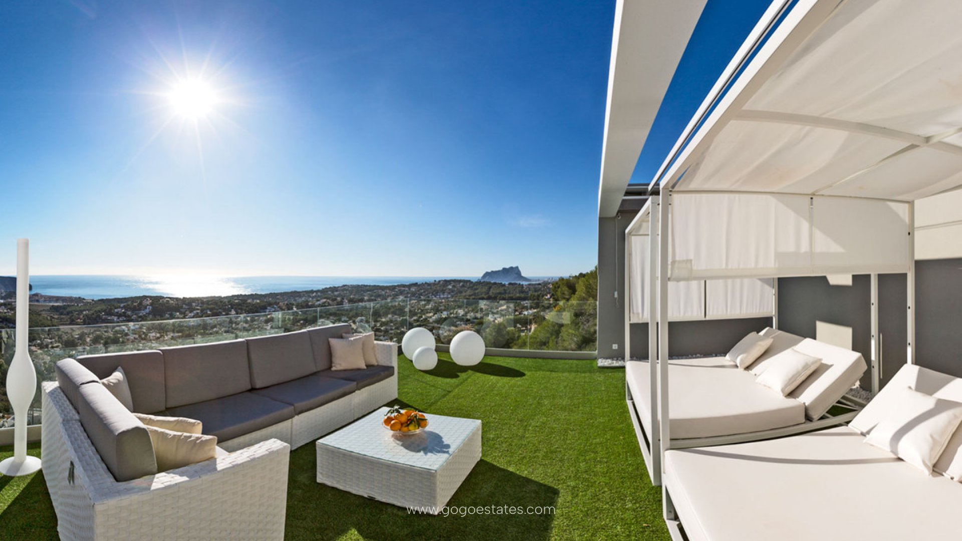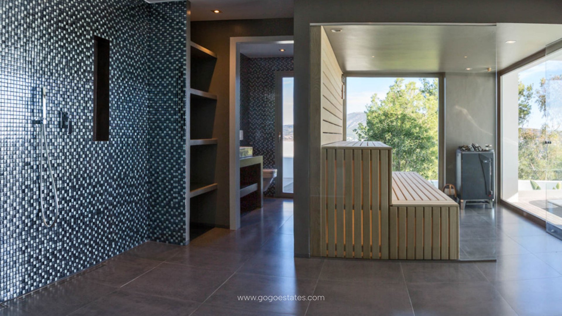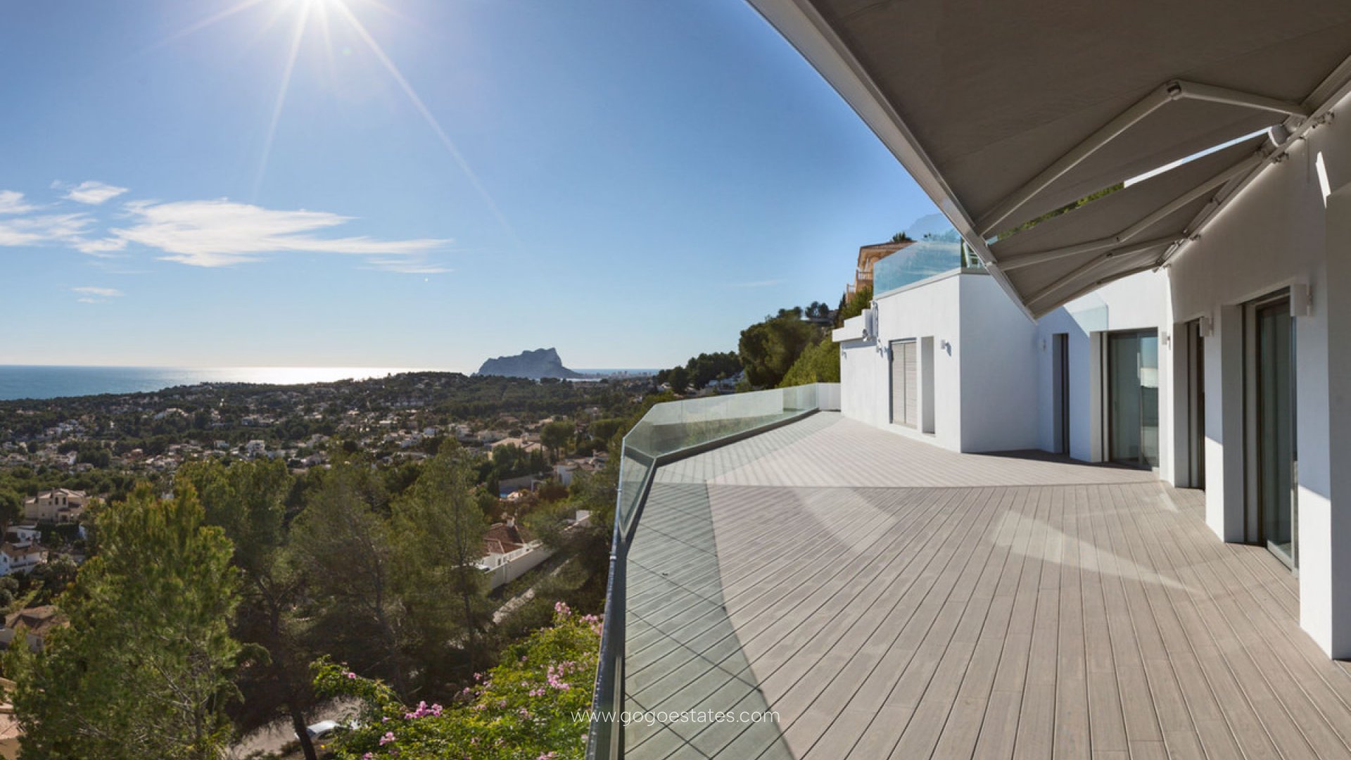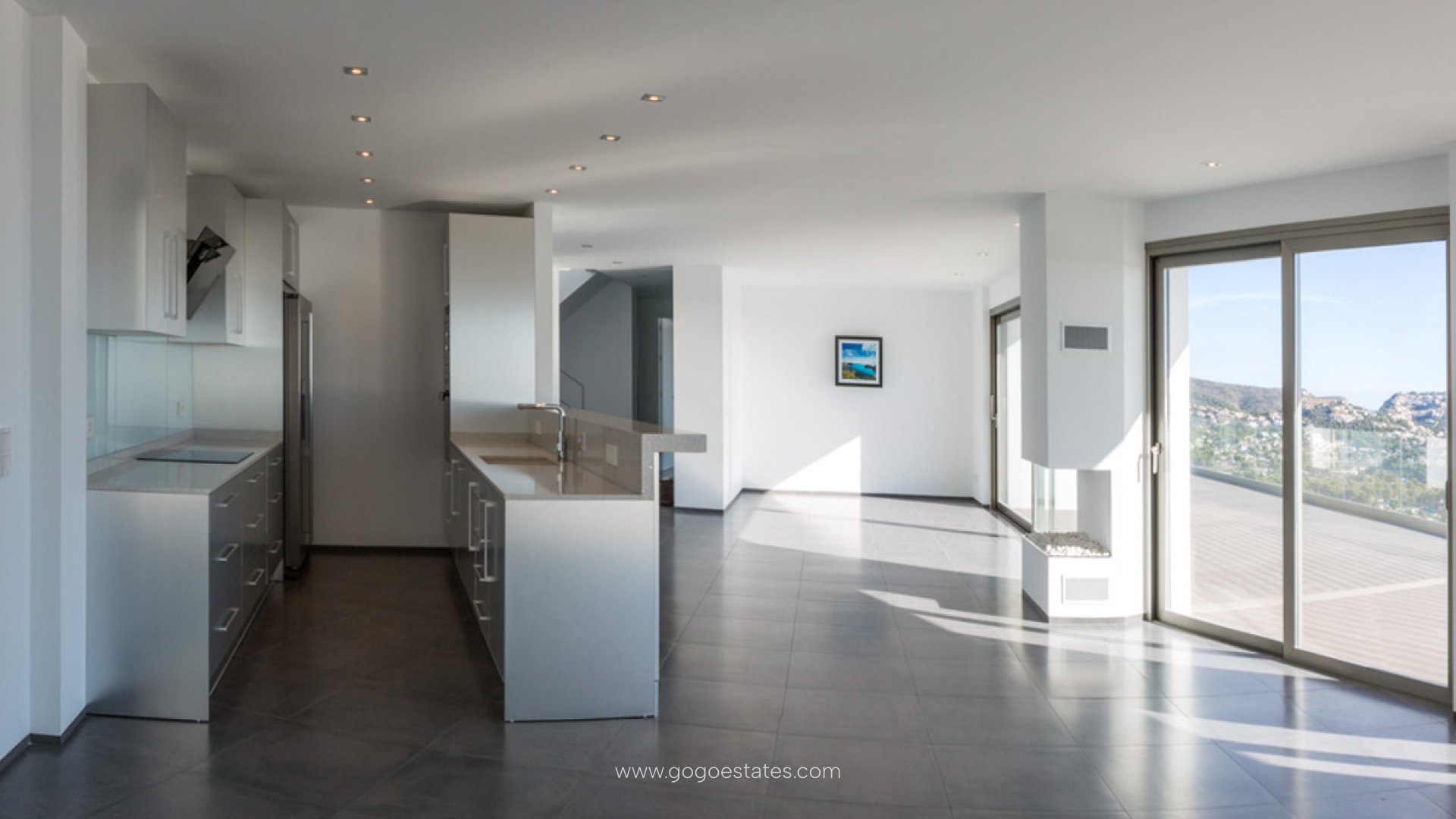 Deze exclusieve villa in moderne stijl staat op een perceel van meer dan 900 m², op het zuiden gericht, zodat u de hele dag kunt genieten van de zon en een prachtig open uitzicht op de Middellandse Zee. Met meer dan 400 m² woonoppervlak en 480 m² terrassen combineert de woning perfect hedendaags design, comfort en elegantie. Op de begane grond bevindt zich een ruime en lichte woon-/eetkamer met open haard, die naadloos overgaat in een open en geïntegreerde professionele keuken, ontworpen voor zowel dagelijks gebruik als gezelligheid. Vanaf deze verdieping is er directe toegang tot het spectaculaire hoofdterras, waar het dubbelzijdige infinity zwembad visueel versmelt met de horizon van de zee. Op dezelfde verdieping bevindt zich een slaapkamer met en-suite badkamer en kleedkamer, die eveneens directe toegang biedt tot het terras en uitzicht op zee, wat een intieme en serene sfeer biedt. Beneden beschikt de villa over drie elegante slaapkamers met en-suite badkamer, die allemaal uitkomen op een ruim terras. Op deze verdieping bevindt zich ook een ruime open ruimte, ideaal als fitnessruimte, studeerkamer of recreatieruimte, en een exclusieve spa met een glazen sauna en toegang tot een terras met een buitenjacuzzi, een perfecte plek voor ontspanning en welzijn. Het dakterras is een ware oase van plezier en ontspanning. Daar kunnen eigenaren genieten van een hydromassageruimte, een decoratieve waterval, ligstoelen en elegant chill-outmeubilair, allemaal vergezeld door een professionele buitenkeuken met bar en toonbank, een gastentoilet en een grote schaduwrijke plek waar u in alle comfort en privacy van de omgeving kunt genieten. De woning is uitgerust met vloerverwarming op zonne-energie en een warmtepomp, airconditioning in alle kamers, op maat ontworpen interieur, een bewakings- en alarmsysteem, een elektrische poort, een garage en een volledig omheinde buitenmuur, wat maximale veiligheid en privacy garandeert. Gelegen in Moraira, een van de meest exclusieve enclaves aan de Costa Blanca, ligt deze villa op slechts enkele minuten van het centrum en de charmante baaien met kristalhelder water. Moraira combineert de charme van een oud vissersdorp met een eersteklas keuken, een jachthaven, boetiekjes en een ongeëvenaarde levenskwaliteit. Een bevoorrechte locatie waar zee, luxe en rust in perfecte harmonie samengaan.