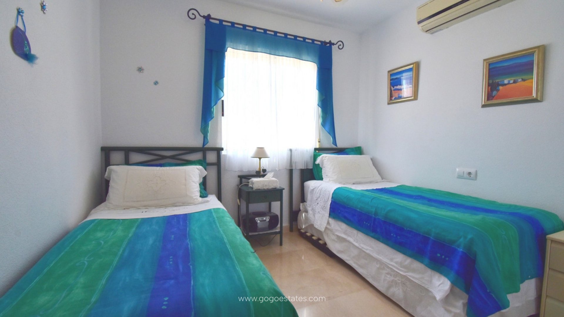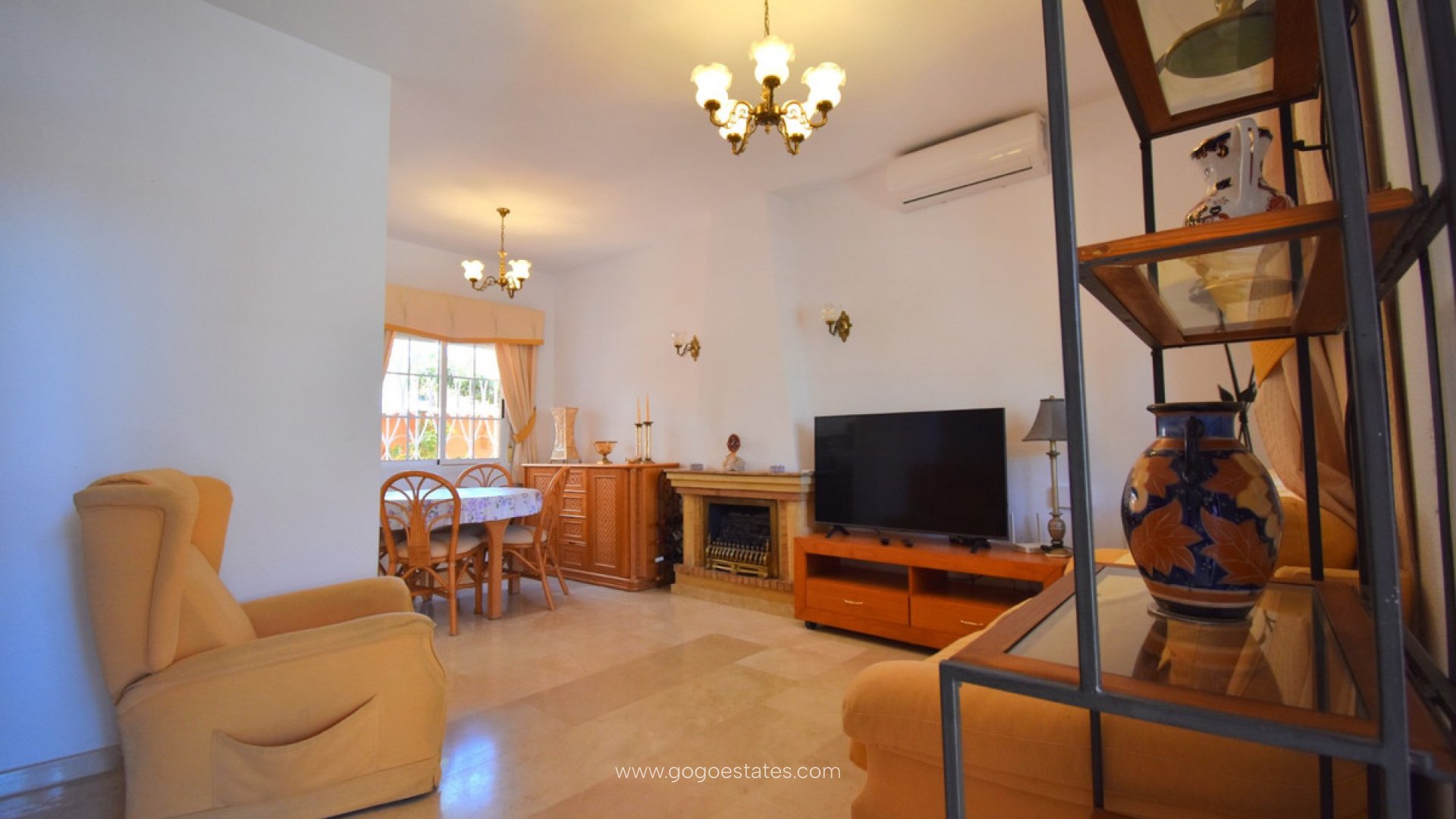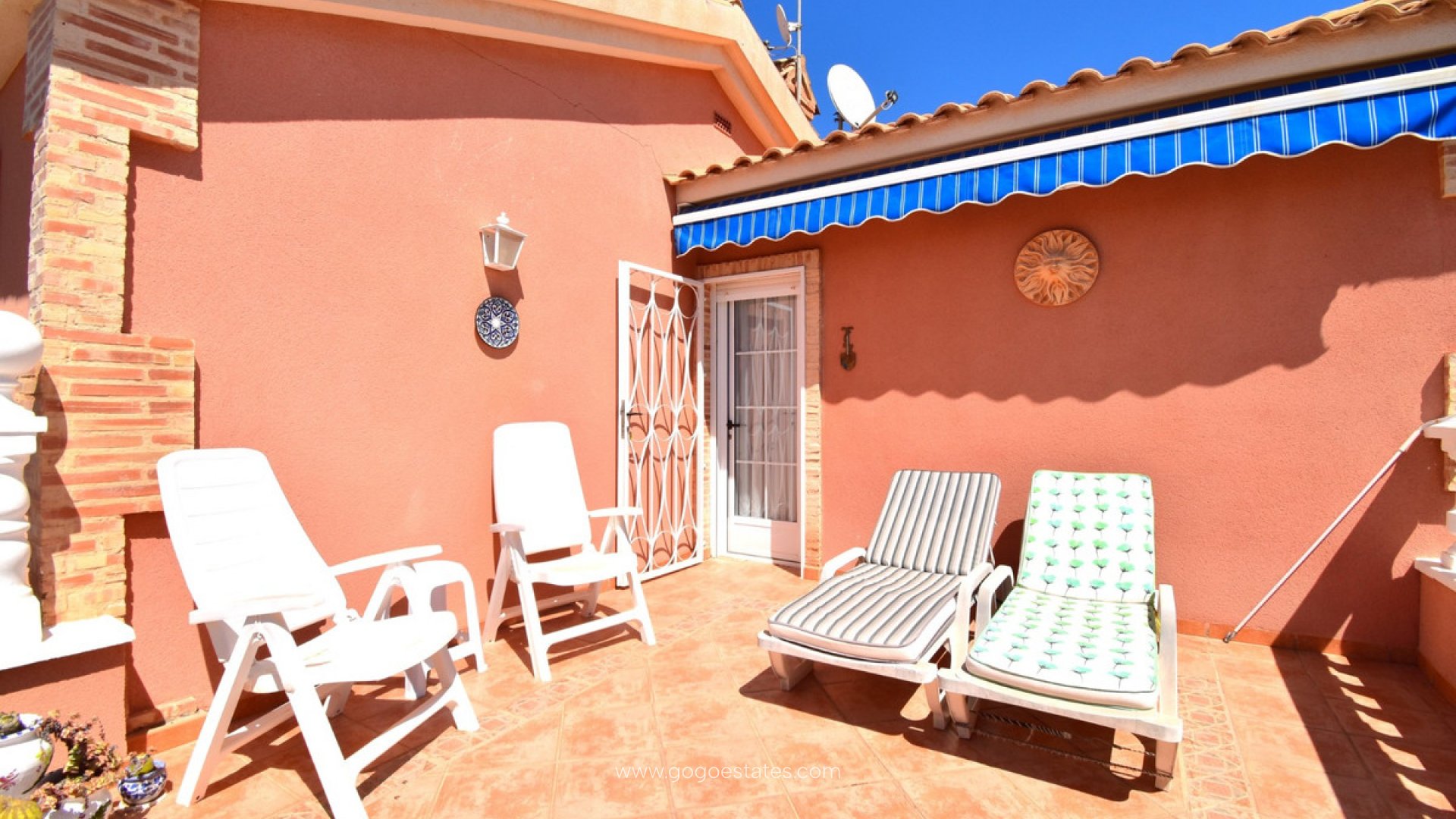 Deze vrijstaande villa met drie slaapkamers en een zuidwestelijke ligging in Playa Flamenca is gelegen in Orihuela Costa, op slechts 7 minuten lopen van diverse voorzieningen, waaronder een ruime keuze aan restaurants en cafés. Het populaire winkelcentrum La Zenia Boulevard ligt op 10 minuten afstand, terwijl het strand en een supermarkt van een grote keten in slechts 3 minuten met de auto te bereiken zijn. Diverse golfbanen liggen ook op minder dan 10 minuten rijden. De woning beschikt over een overdekt terras dat leidt naar een L-vormige woon-/eetkamer met open haard en gashaard; een aparte, goed ingerichte keuken met een deur naar buiten; een slaapkamer met tweepersoonsbed op de begane grond; en een familiebadkamer met douche. Op de eerste verdieping bevinden zich nog twee slaapkamers, waarvan de hoofdslaapkamer toegang heeft tot een privéterras, plus een interne trap naar het solarium met uitzicht op het gemeenschappelijke zwembad. Buiten bevindt zich de betegelde tuin van 100 m² met een oprit voor off-road parkeren, een berging en een overdekte ruimte, ideaal om in de schaduw te dineren. Alle slaapkamers hebben ingebouwde kasten, waarvan twee ook voorzien zijn van plafondventilatoren. Er is ook airconditioning in het hele huis. Een charmant familie- of vakantiehuis op een zeer gewilde locatie aan de Costa Blanca Zuid.