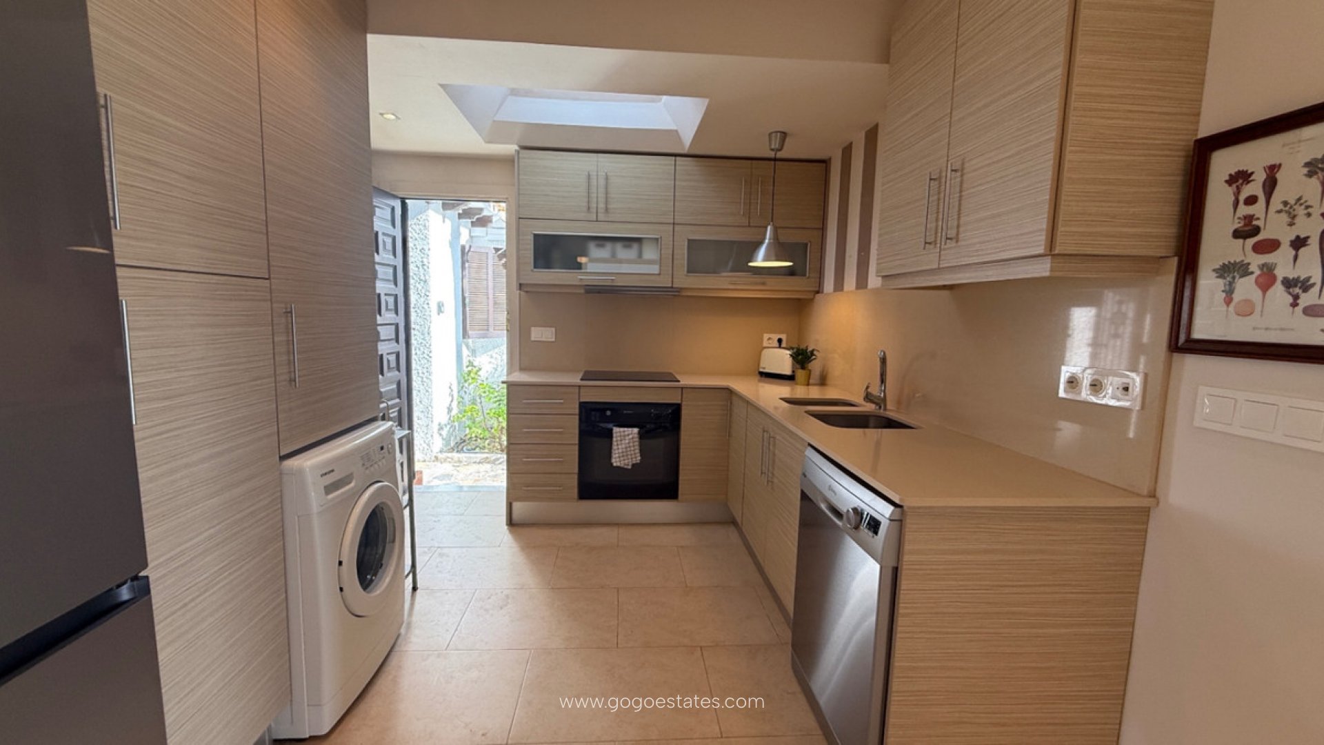 Ervaar het moderne leven aan de kust in deze prachtig gerenoveerde duplex, perfect gelegen op een steenworp afstand van het gouden zand van het Cala Capitán-strand in Cabo Roig. Dit lichte en ruime huis biedt drie volwaardige slaapkamers plus een extra kleinere slaapkamer op de begane grond, ideaal voor gasten, een thuiskantoor of extra opslag. Er zijn twee moderne badkamers, beide elegant ontworpen met hoogwaardige afwerkingen. De open woonkamer vloeit naadloos over in een stijlvolle, volledig uitgeruste keuken, wat een perfecte ruimte creëert voor het vermaken van gasten of ontspannen met het gezin. De woning is verder voorzien van dubbele beglazing en centrale verwarming, wat het hele jaar door comfort garandeert. Op de bovenverdieping heeft de master slaapkamer toegang tot een privé balkon, de ideale plek voor een ochtendkoffie of avondzonsondergangen. Er is ook voldoende opslagruimte, inclusief een grote binnen opslagruimte en een extra buiten opslaggebied. Met zijn zonnige terrassen, moderne upgrades en onklopbare locatie dicht bij stranden, restaurants en winkels, biedt deze sleutelklare duplex het beste van het mediterrane leven — comfort, stijl en gemak in één.