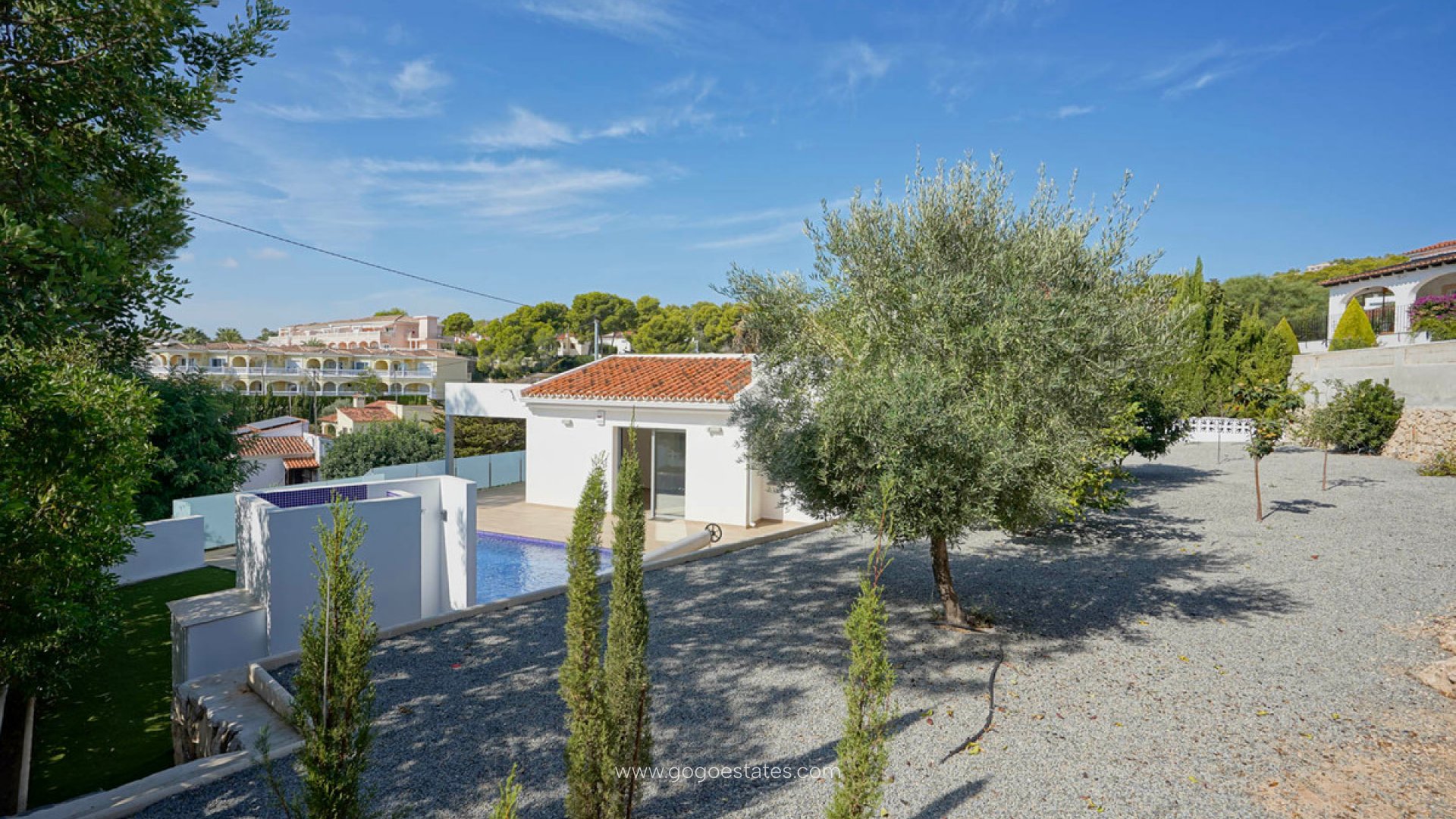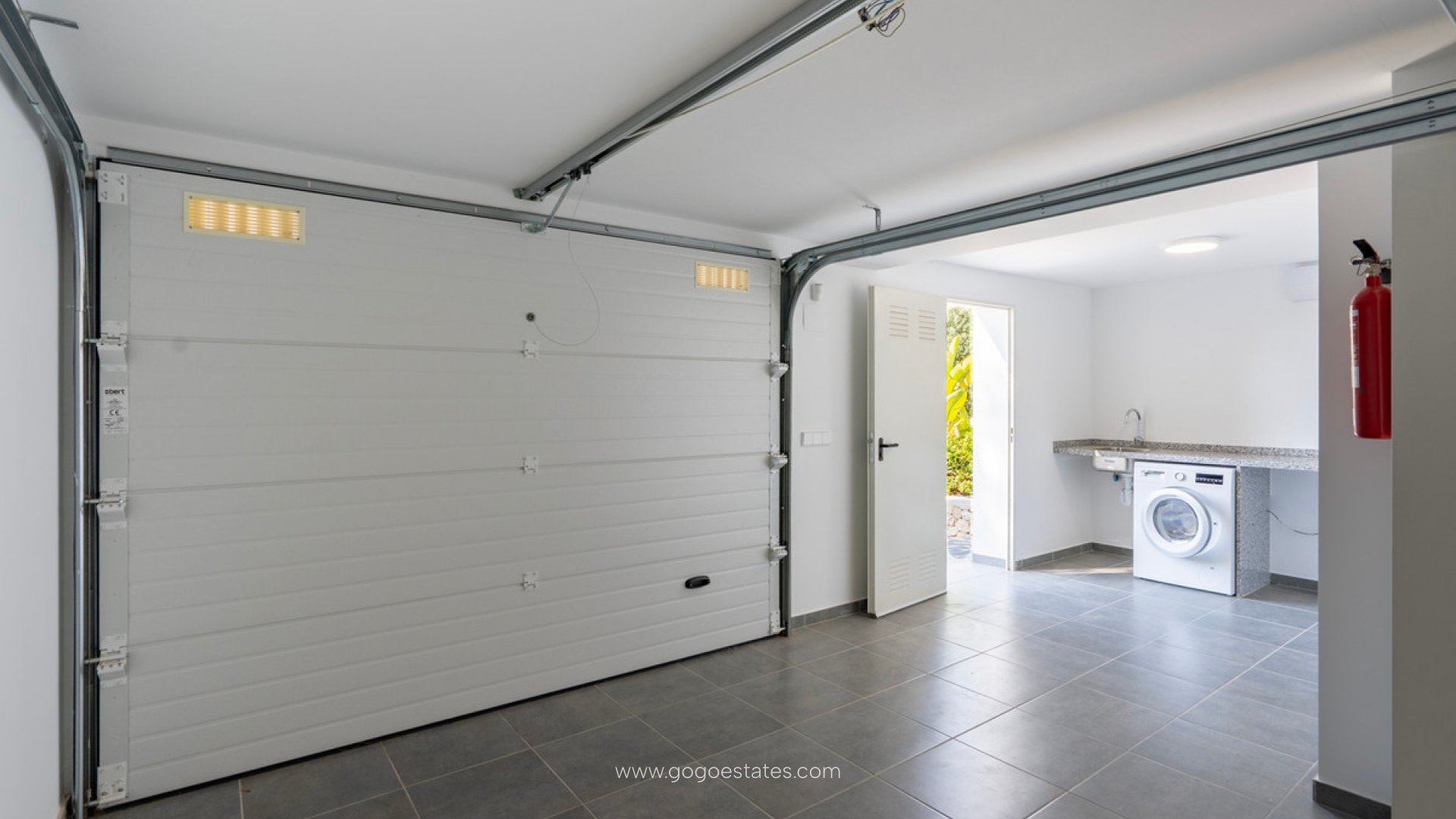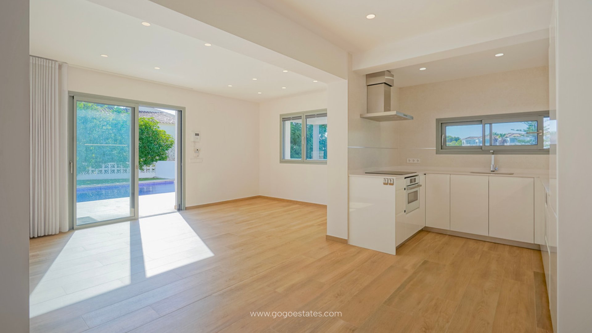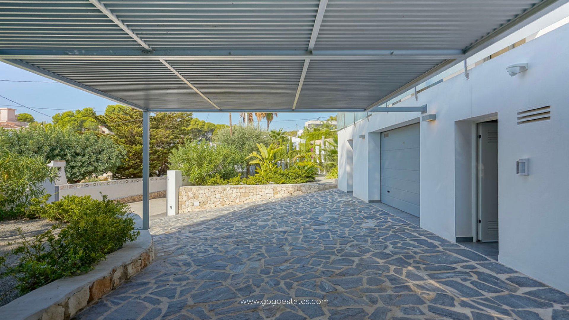 Moderne villa te koop op 1 km van het strand van La Fustera in Benissa, Deze instapklare villa is gelegen in een doodlopende straat in de rustige urbanisatie La Fustera, op slechts één kilometer van de prachtige kustlijn van Benissa. De woning werd in 2023 volledig gerenoveerd en is verdeeld over twee verdiepingen. Het volledige woongedeelte bevindt zich op het niveau van het zwembad en omvat een ruime woon- en eetkamer met open keuken, uitgerust met een multifunctionele Bosch-oven, vaatwasser, koelkast, vriezer en inductiekookplaat. Verder is er een hoofdslaapkamer met en suite badkamer en twee extra slaapkamers die een tweede badkamer delen. Eén verdieping lager, op straatniveau, bevindt zich een ruime garage met aangrenzend een wasruimte, een technische ruimte en een carport. De villa is uitgerust met airconditioning warm/koud, inbouwkasten, rolluiken, muggenramen, glasvezelinternet, een waterfiltersysteem, 12 fotovoltaïsche zonnepanelen en een uitgebreid alarmsysteem met camera's en sensoren. Buiten vindt u een verwarmd zwembad met verwarmde buitendouche, een overdekt terras en een open terras met een luifel voorzien van wind- en regensensor. De woning is omgeven door een mooie, onderhoudsvriendelijke tuin met fruitbomen en mediterrane beplanting. Het levendige centrum van Calpe ligt op slechts 10 minuten rijden, en het charmante havenplaatsje Moraira bereikt u in ongeveer 15 minuten.