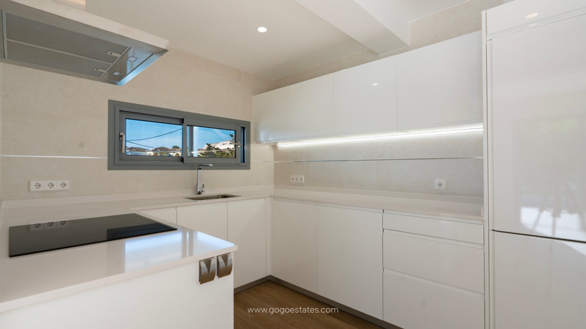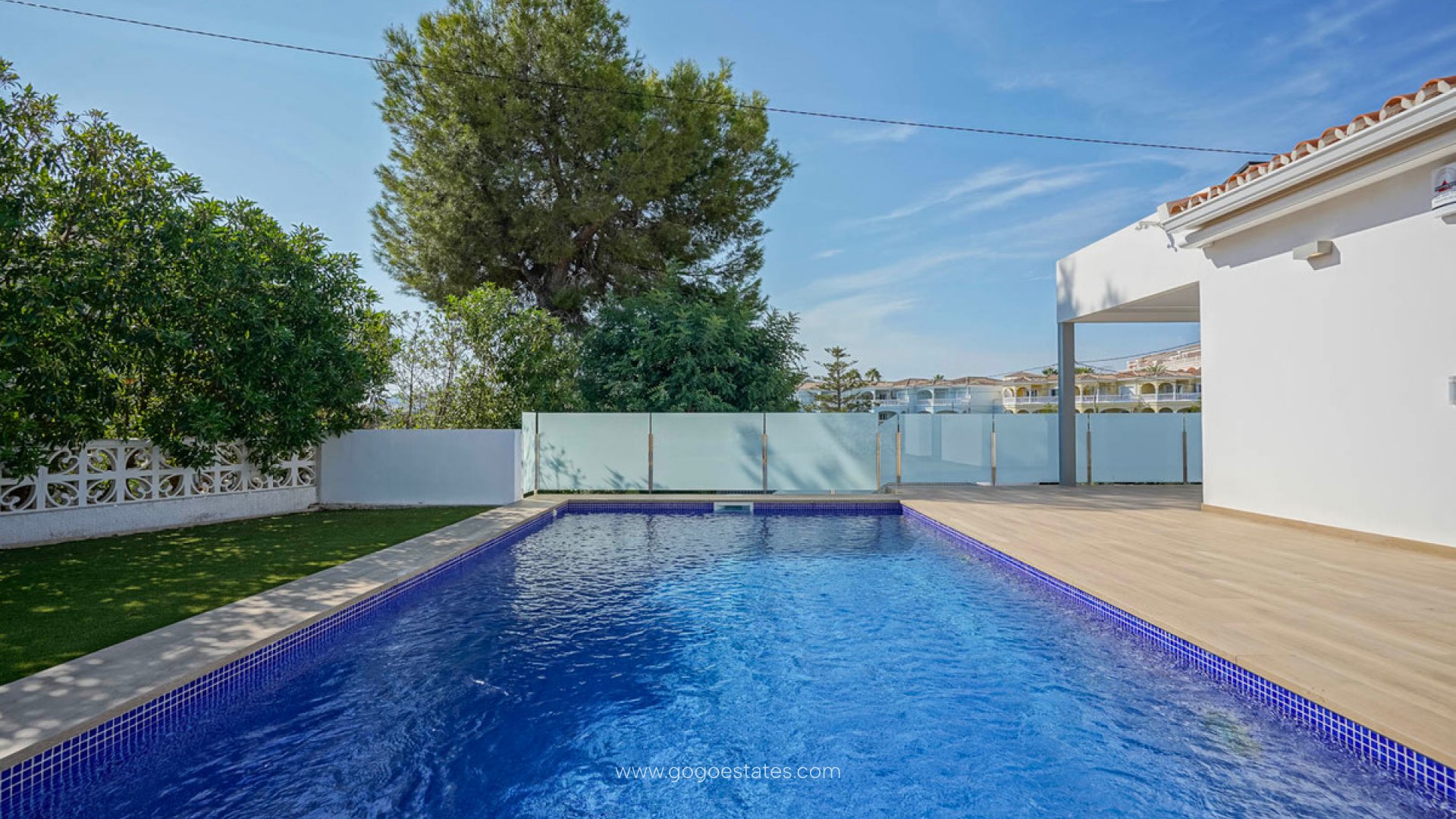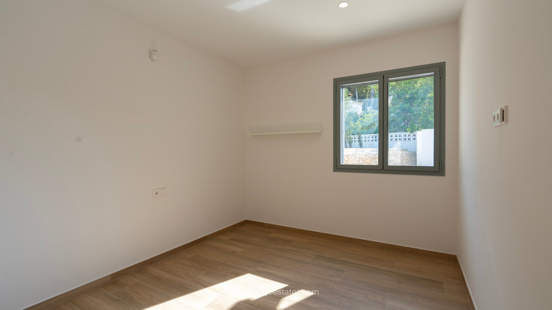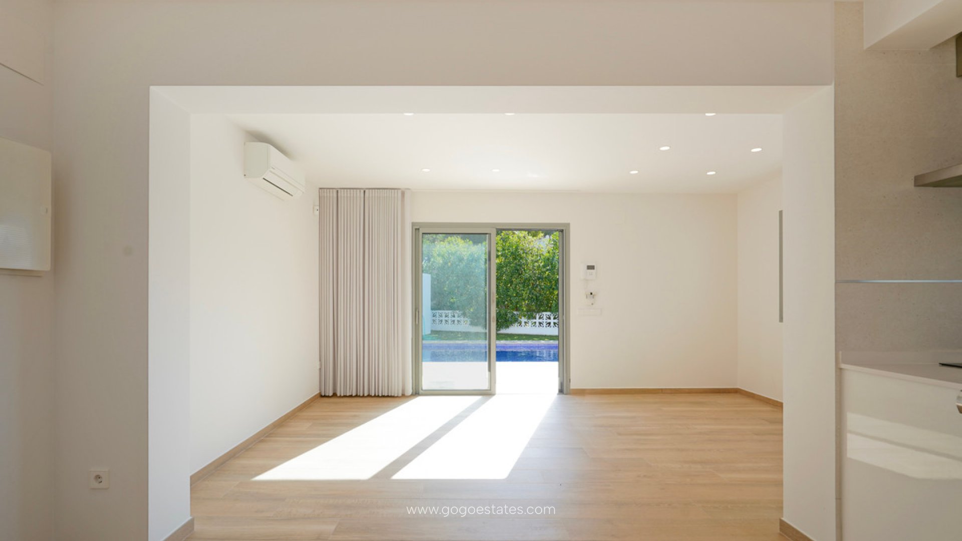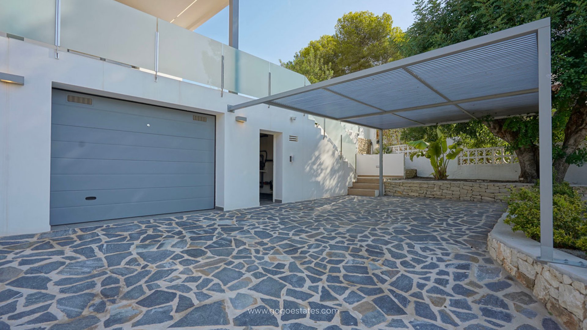 Moderne villa te koop op 1 km van het strand van La Fustera in Benissa, Deze instapklare villa is gelegen in een doodlopende straat in de rustige urbanisatie La Fustera, op slechts één kilometer van de prachtige kustlijn van Benissa. De woning werd in 2023 volledig gerenoveerd en is verdeeld over twee verdiepingen. Het volledige woongedeelte bevindt zich op het niveau van het zwembad en omvat een ruime woon- en eetkamer met open keuken, uitgerust met een multifunctionele Bosch-oven, vaatwasser, koelkast, vriezer en inductiekookplaat. Verder is er een hoofdslaapkamer met en suite badkamer en twee extra slaapkamers die een tweede badkamer delen. Eén verdieping lager, op straatniveau, bevindt zich een ruime garage met aangrenzend een wasruimte, een technische ruimte en een carport. De villa is uitgerust met airconditioning warm/koud, inbouwkasten, rolluiken, muggenramen, glasvezelinternet, een waterfiltersysteem, 12 fotovoltaïsche zonnepanelen en een uitgebreid alarmsysteem met camera's en sensoren. Buiten vindt u een verwarmd zwembad met verwarmde buitendouche, een overdekt terras en een open terras met een luifel voorzien van wind- en regensensor. De woning is omgeven door een mooie, onderhoudsvriendelijke tuin met fruitbomen en mediterrane beplanting. Het levendige centrum van Calpe ligt op slechts 10 minuten rijden, en het charmante havenplaatsje Moraira bereikt u in ongeveer 15 minuten.