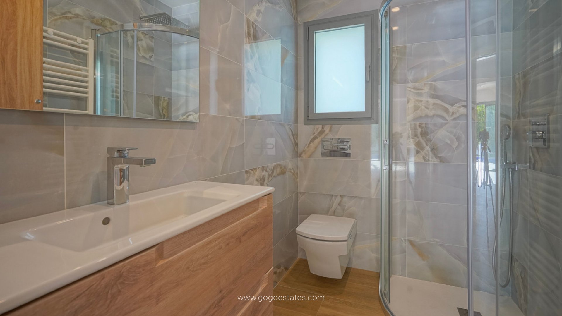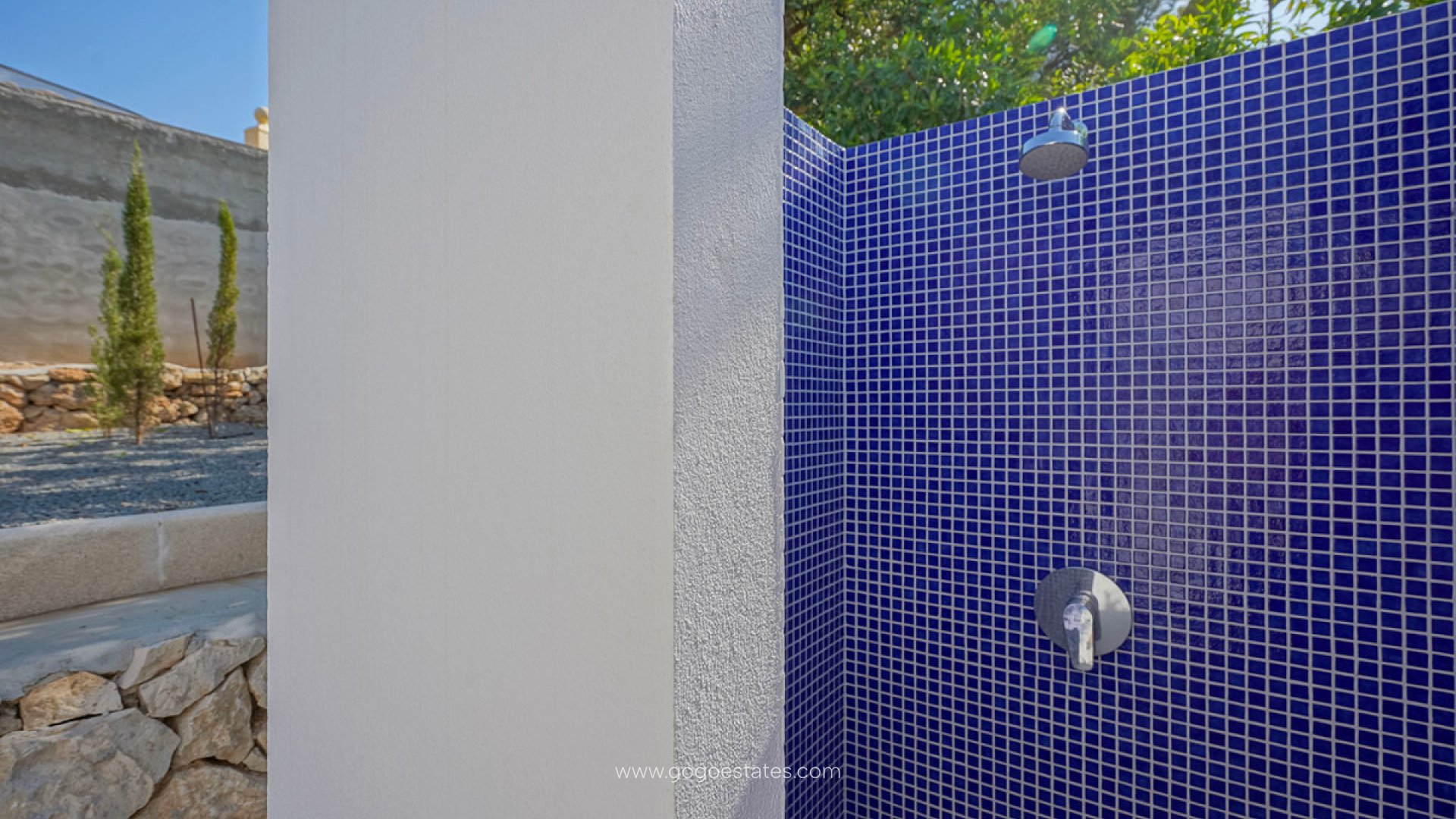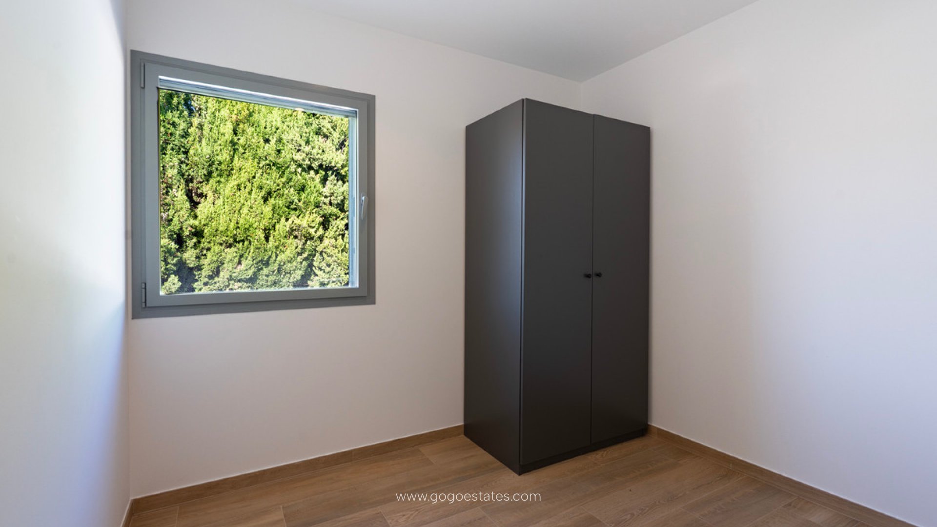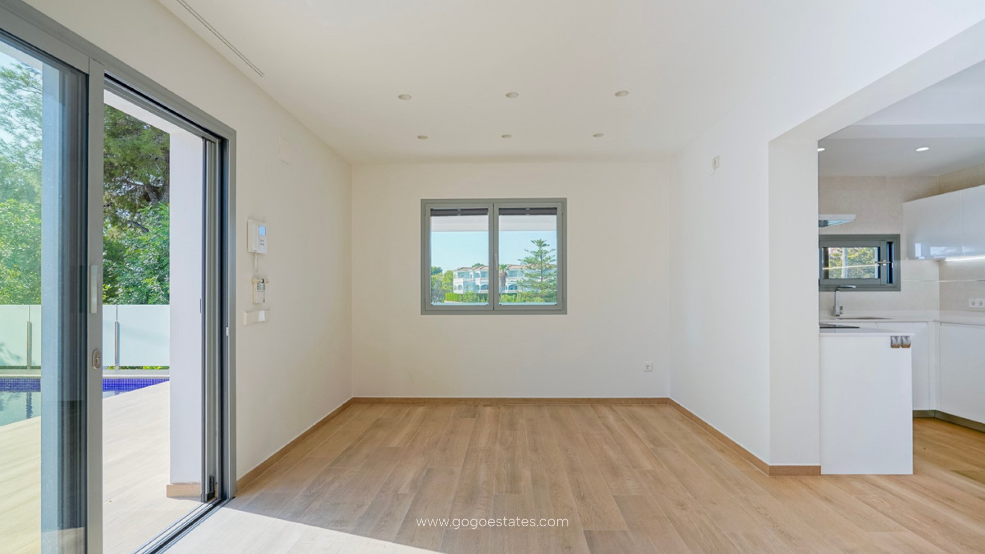 Moderne villa te koop op 1 km van het strand van La Fustera in Benissa, Deze instapklare villa is gelegen in een doodlopende straat in de rustige urbanisatie La Fustera, op slechts één kilometer van de prachtige kustlijn van Benissa. De woning werd in 2023 volledig gerenoveerd en is verdeeld over twee verdiepingen. Het volledige woongedeelte bevindt zich op het niveau van het zwembad en omvat een ruime woon- en eetkamer met open keuken, uitgerust met een multifunctionele Bosch-oven, vaatwasser, koelkast, vriezer en inductiekookplaat. Verder is er een hoofdslaapkamer met en suite badkamer en twee extra slaapkamers die een tweede badkamer delen. Eén verdieping lager, op straatniveau, bevindt zich een ruime garage met aangrenzend een wasruimte, een technische ruimte en een carport. De villa is uitgerust met airconditioning warm/koud, inbouwkasten, rolluiken, muggenramen, glasvezelinternet, een waterfiltersysteem, 12 fotovoltaïsche zonnepanelen en een uitgebreid alarmsysteem met camera's en sensoren. Buiten vindt u een verwarmd zwembad met verwarmde buitendouche, een overdekt terras en een open terras met een luifel voorzien van wind- en regensensor. De woning is omgeven door een mooie, onderhoudsvriendelijke tuin met fruitbomen en mediterrane beplanting. Het levendige centrum van Calpe ligt op slechts 10 minuten rijden, en het charmante havenplaatsje Moraira bereikt u in ongeveer 15 minuten.