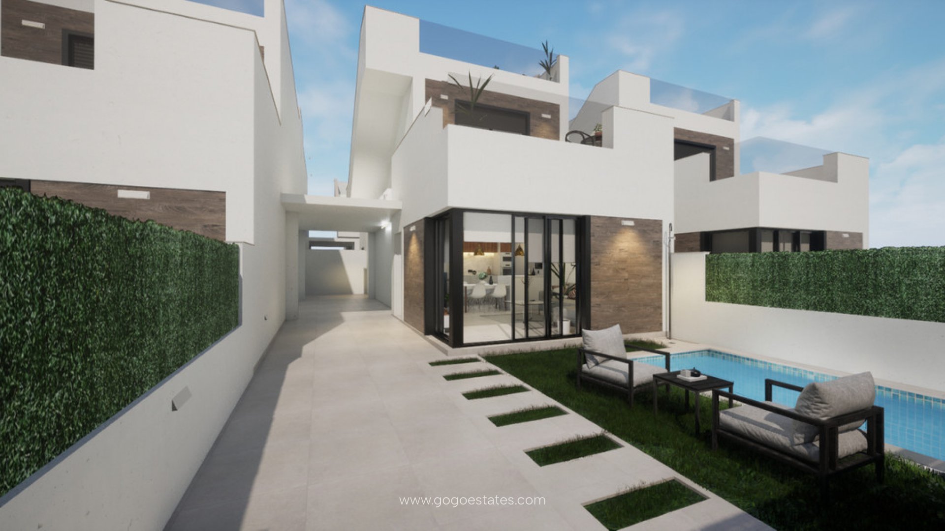 Nieuwbouw: Prijzen van 419.900 ? tot 419.900 ?. [Slaapkamers: 3 - 3] [Badkamers: 2 - 2] [Bebouwde oppervlakte: 101,00 m2 - 101,00 m2]De nieuwe residentie in Los Alcázares, Murcia, een exclusief voorstel van 9 villa's. In de eerste fase hebben we 3 huizen verdeeld over twee verdiepingen plus solarium en een begane grond woning plus solarium met privé zwembad en overdekte parkeerplaats voor elk van de woningen. Elke woning heeft 3 slaapkamers en 2 badkamers met pre-installatie voor airconditioning. De woningen zijn ontworpen met een eigentijdse stijl en een open woonconcept, bestaande uit een ingerichte keuken en een woon-eetkamer. De ontwikkeling is gelegen in Los Alcázares (Murcia), omgeven door alle voorzieningen, sportgebieden en verschillende golfbanen. De villa's liggen op vijf minuten lopen van het strand. Prijzen vanaf: 315.000 ? plus BTW~