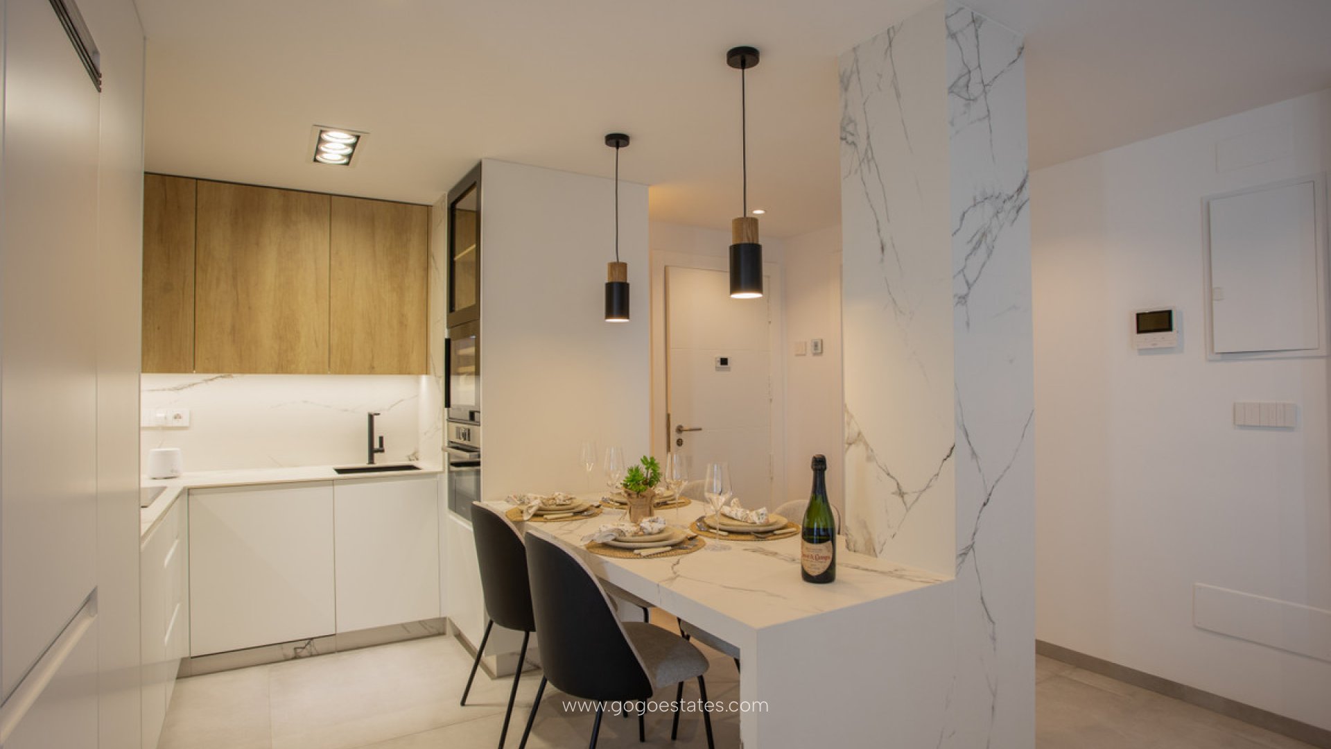 Nieuwbouw: Prijzen van 279.000 ? tot 329.000 ? [Slaapkamers: 2 - 3] [Badkamers: 2 - 2] [Bebouwde oppervlakte: 72,00 m2 - 92,00 m2]Deze ontwikkeling is een groep volledig uitgeruste moderne woningen met twee en drie slaapkamers, op slechts twee minuten lopen van het centrum van de stad San Pedro del Pinatar. De woningen op de bovenste verdieping beschikken over een groot solarium met een buitenkeuken. De woningen op de onderste verdieping beschikken over een ruim terras. DUURZAAMHEIDDe gemeenschappelijke ruimtes genieten van maximaal zonlicht. Het zwembad heeft een oppervlakte van 115 m2, beschikt over een zwemgedeelte en een waterbed en is voorzien van een warmtepomp om het water te verwarmen en het zwemseizoen te verlengen. BUITEN WONENBewoners kunnen genieten van de zon bij het zwembad, omgeven door groen en ontworpen voor maximale privacy. DE WONINGENGERAFFINEERDE, DISCRETE, TIJDLOZE DESIGNERAPPARTEMENTENDe woningen beschikken over twee en drie slaapkamers, twee badkamers en een groot daggedeelte, voorzien van een royale keuken en een woon-eetkamer die uitkomt op het terras met grote ramen die zorgen voor continuïteit tussen binnen en buiten en zo de ervaring van buitenleven garanderen.INHEEMSE SMAKENDe kamers zijn ruim en vol natuurlijk licht met een elegante toets, wat comfort toevoegt aan de woningen. De bouwspecificaties zorgen ervoor dat de gebruikte materialen een natuurlijke uitstraling geven aan de afwerking, evenals warme houten elementen en texturen die doen denken aan de natuur en in harmonie zijn met de omgeving. De kamers zijn comfortabel. De hoofdslaapkamer heeft een eigen badkamer. De badkamer is uitgerust met grote opbergruimtes en een douche. *Let op: VOLLEDIG pakket appartement + standaard open parkeerplaats 10.000?~