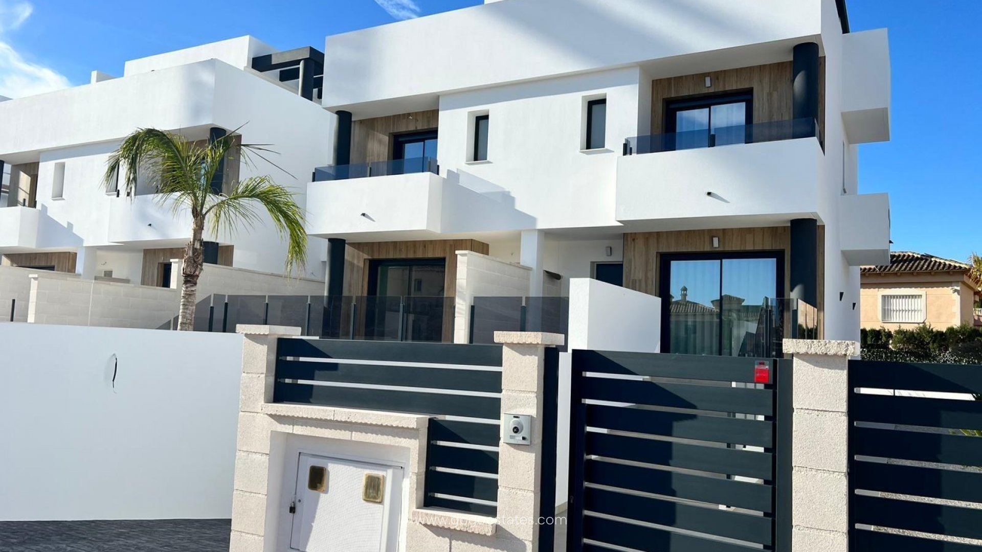 Moderne nieuwbouwwoningen in Benferri Alicante Exclusief nieuwbouwproject in Benfis Park Ontdek dit nieuwe project van 10 moderne halfvrijstaande villa's in Benfis Park, Benferri, in het hart van de Vega Baja-regio van Alicante. Dit charmante stadje biedt een rustige woonomgeving met goed onderhouden straten en een gastvrije gemeenschap, ideaal voor gezinnen, gepensioneerden of iedereen die op zoek is naar een ontspannen levensstijl onder de mediterrane zon. Benferri combineert landelijke charme met uitstekende verbindingen naar nabijgelegen steden, stranden en belangrijke vervoersverbindingen. Ruime villa's met privé-solarium Elke villa heeft een totale bebouwde oppervlakte van 222 m² en is verdeeld over drie verdiepingen plus een privé-solarium. De kelderverdieping omvat een garage met ruimte voor twee auto's en een berging. De begane grond beschikt over een lichte open woon- en eetkamer met een moderne keuken, een wasruimte en een gastentoilet, met directe toegang tot een terras dat rondom het huis loopt. Op de eerste verdieping zijn er drie slaapkamers en twee badkamers, waarvan één ensuite, evenals twee terrassen die bij twee van de slaapkamers horen. De bovenste verdieping biedt een privésolarium van ongeveer 39 m², perfect om te zonnebaden, buiten te eten of te ontspannen met vrij uitzicht. Moderne voorzieningen en optioneel zwembad De villa's zijn voorzien van een volledig ingerichte keuken met elektrische apparatuur en een voorinstallatie voor airconditioning. Een privézwembad is beschikbaar als optionele extra, waardoor kopers hun woning nog verder kunnen personaliseren. Het ontwerp is gericht op comfort, functionaliteit en natuurlijk licht, waardoor een eigentijdse woonomgeving ontstaat die ideaal is om het hele jaar door te wonen of als vakantiehuis te gebruiken. Wonen in Benferri Vega Baja Benferri ligt op slechts enkele minuten van Orihuela en profiteert van een snelle toegang tot de snelweg AP 7, waardoor reizen naar de stranden van de Costa Blanca, de luchthaven van Alicante Elche en de belangrijkste winkel- en recreatiegebieden snel en gemakkelijk zijn. Het omringende landschap wordt gekenmerkt door vruchtbare landbouwgrond, glooiende heuvels en mediterrane landschappen, die een gevoel van welzijn en verbondenheid met de natuur bieden. De stad biedt alle essentiële voorzieningen, waaronder supermarkten, scholen, sportfaciliteiten en een levendige lokale sfeer het hele jaar door. Afstanden tot bezienswaardigheden Orihuela 8 km Strand van Guardamar del Segura 25 km La Finca Golf Resort 18 km Vistabella Golf 14 km Luchthaven Alicante Elche 45 km Haven van Torrevieja 32 km Winkelcentrum Zenia Boulevard 30 km Uw nieuwe thuis aan de Costa Blanca Deze nieuw gebouwde halfvrijstaande villa's in Benferri bieden royale ruimte, een modern ontwerp en een strategische ligging dicht bij stranden, golfbanen en belangrijke voorzieningen. Neem vandaag nog contact met ons op voor meer informatie of om een privébezichtiging te regelen.