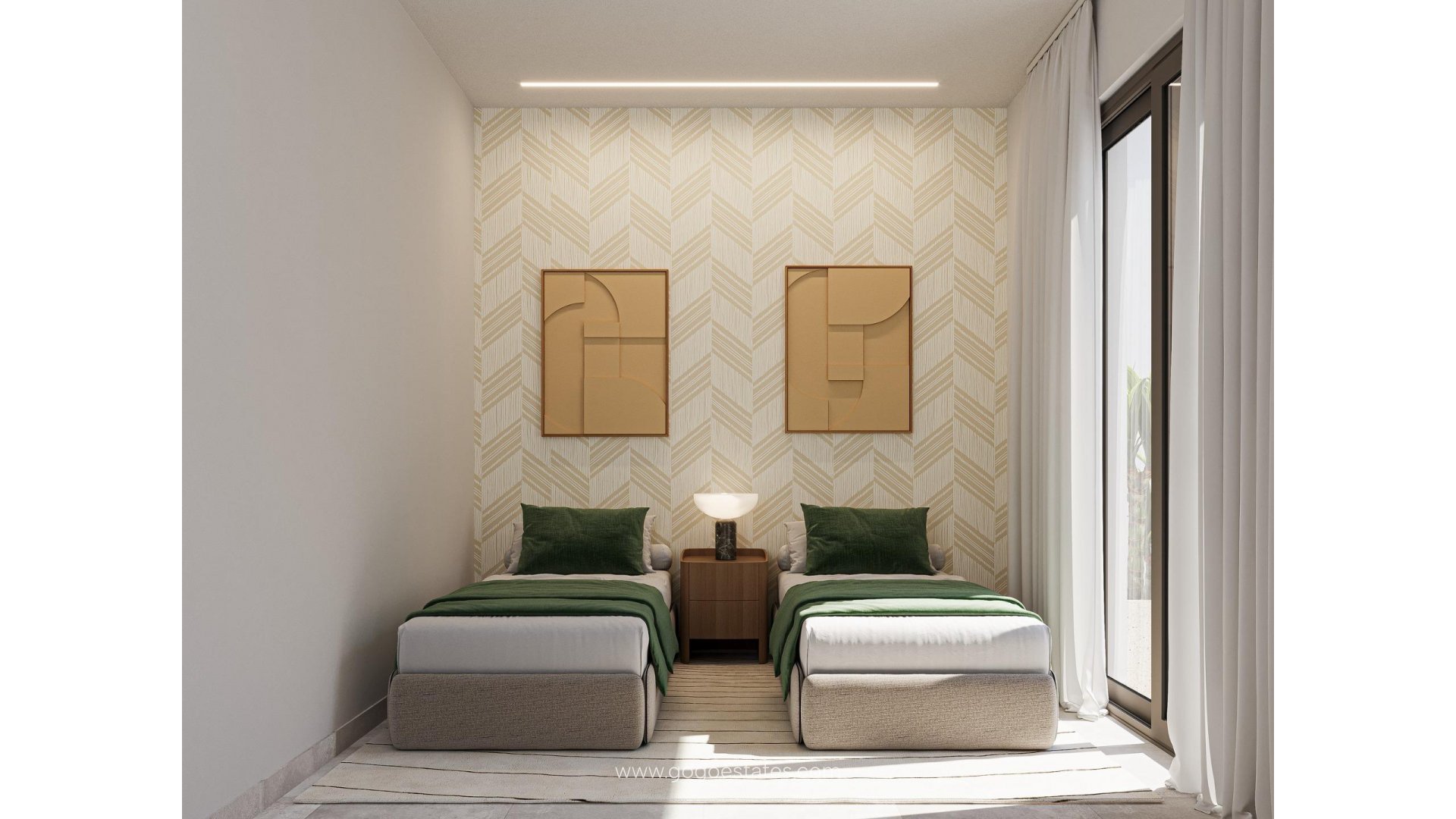 Moderne gelijkvloerse villa's met privézwembad en solarium in El Jimenado Murcia Eigentijds mediterraan wonen met privacy en comfort Dit exclusieve project van 6 onafhankelijke villa's is ontworpen om maximale privacy, comfort en buitenleven te bieden. Gelegen in El Jimenado, een rustige woonwijk die behoort tot Torrepacheco in de regio Murcia, combineren deze elegante gelijkvloerse woningen een modern design met de ontspannen mediterrane levensstijl. Elke villa staat op een eigen perceel met privétuin, zwembad, grote terrassen en parkeerplaats op het perceel, zodat u het hele jaar door kunt genieten van de zon en het buitenleven. El Jimenado staat bekend om zijn rustige omgeving en is tegelijkertijd strategisch gelegen in de buurt van golfbanen, stranden en essentiële voorzieningen, waardoor het ideaal is voor zowel permanent wonen als vakantiegebruik. Open ontwerp en hoogwaardige voorzieningen De villa's zijn zorgvuldig ontworpen met een open indeling, waarbij de volledig uitgeruste keuken naadloos aansluit op de lichte woon- en eetkamer. Grote ramen verbinden de binnenruimtes met de terrassen en het zwembad, waardoor een natuurlijke overgang ontstaat tussen binnen- en buitenleven. Elke woning is voorzien van: Volledig ingerichte keuken met apparatuur Badkamers met spiegel, verlichting en doucheschermen Privézwembad Parkeerplaats op het perceel Binnen- en buitenverlichting inbegrepen, met uitzondering van decoratieve lampen Voorbereiding voor airconditioning Zomerkamer op het privé-solarium Het ontwerp met één niveau zorgt voor comfort en toegankelijkheid, terwijl het ruime solarium op het dak een extra ruimte biedt om te ontspannen, gasten te ontvangen en het hele jaar door van de zon te genieten. Rustige locatie dicht bij golfbanen en de kust El Jimenado biedt een rustige woonomgeving, omgeven door open landschappen en verschillende gerenommeerde golfresorts. Tegelijkertijd is het goed verbonden met de belangrijkste steden van het Mar Menor-gebied en de Middellandse Zeekust. Stranden van Mar Menor 18 km Stranden van de Middellandse Zee 25 km Roda Golf 9 km Mar Menor Golf Resort 10 km La Serena Golf 15 km Jachthaven van Los Alcazares 18 km Luchthaven Murcia Corvera 22 km Luchthaven Alicante 95 km Stad Cartagena 30 km Een ideale keuze voor levensstijl en investering Dankzij hun moderne ontwerp, privacy en uitstekende locatie zijn deze villa's perfect voor mensen die op zoek zijn naar een rustige woning in de buurt van golfbanen en de zee, maar ook voor kopers die op zoek zijn naar een verhuurinvestering met een hoog potentieel in de regio Murcia. Neem vandaag nog contact met ons op voor meer informatie of om een bezichtiging te regelen van deze prachtige nieuwbouwwilla's in El Jimenado.