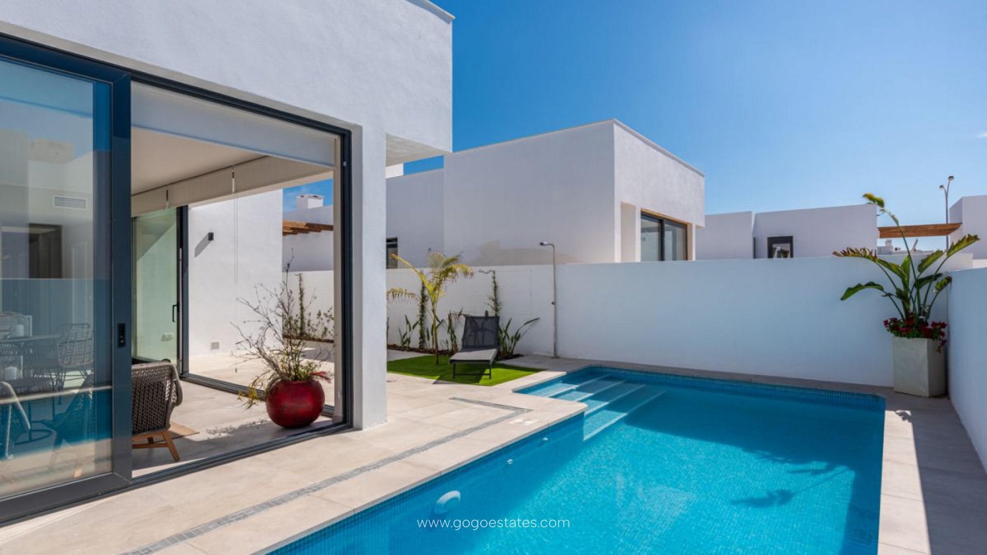 Gelijkvloerse villa's in moderne stijl, met privézwembad en tuin.