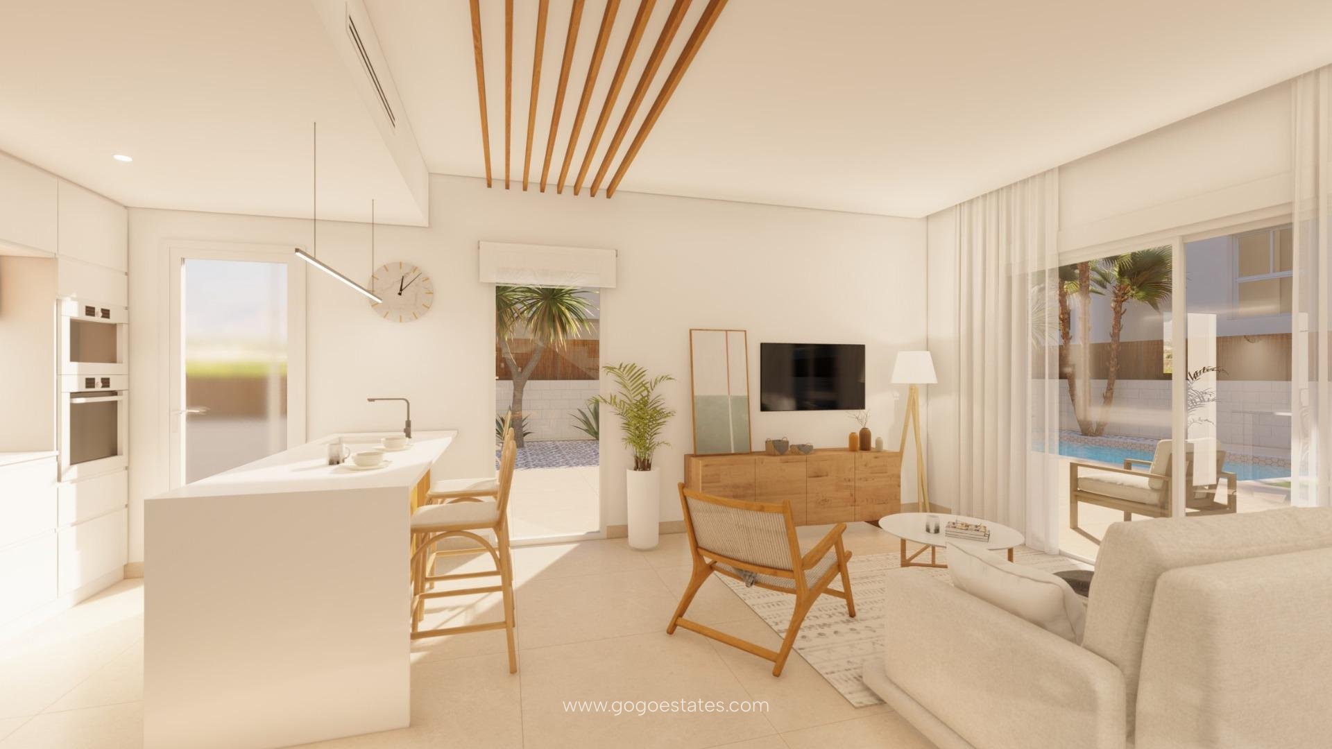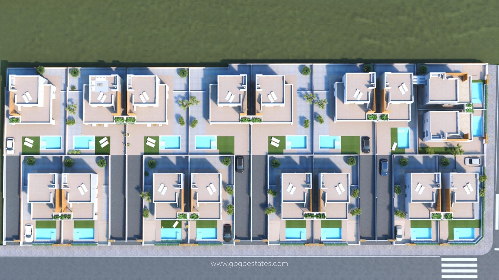 NIEUWBOUW VILLA'S IN PILAR DE LA HORADADA Nieuwbouw villa's in Pilar de la Horadada. Het interieur van de villa's bestaat uit 3 slaapkamers, 3 badkamers en suite, grote open woonkamer met keuken alles gelegen op twee verdiepingen. De buitenkant heeft een grote aangelegde tuin met privé zwembad en parkeerplaats. Nieuwbouw Villa's waar u de beste mediterrane stijl aangepast aan modern design zult vinden. Residentieel bestaat uit 17 villa's gelegen in Pilar de la Horadada, omgeven door alle diensten die u nodig heeft en op slechts enkele minuten van het strand. Pilar de la Horadada is een typisch Spaans dorp in het meest zuidelijke deel van de Costa Blanca. De grote hoofdstraat heeft supermarkten, veel winkels, restaurants en bars en enkele mooie pleinen. De prachtige stranden van Torre de la Horadada en Mil Palmeras met fijn zand en boulevard liggen op slechts 5 minuten afstand. In Pilar de la Horadada is er ook een goed ontwikkeld fiets- en wandelpadennetwerk, en er is ook een groot aanbod van diverse sportactiviteiten. De golfbaan Lo Romero met 18 holes ligt op korte rijafstand van de stad. De luchthavens van Corvera (Murcia) en Alicante liggen op respectievelijk 40 en 55 minuten afstand.
