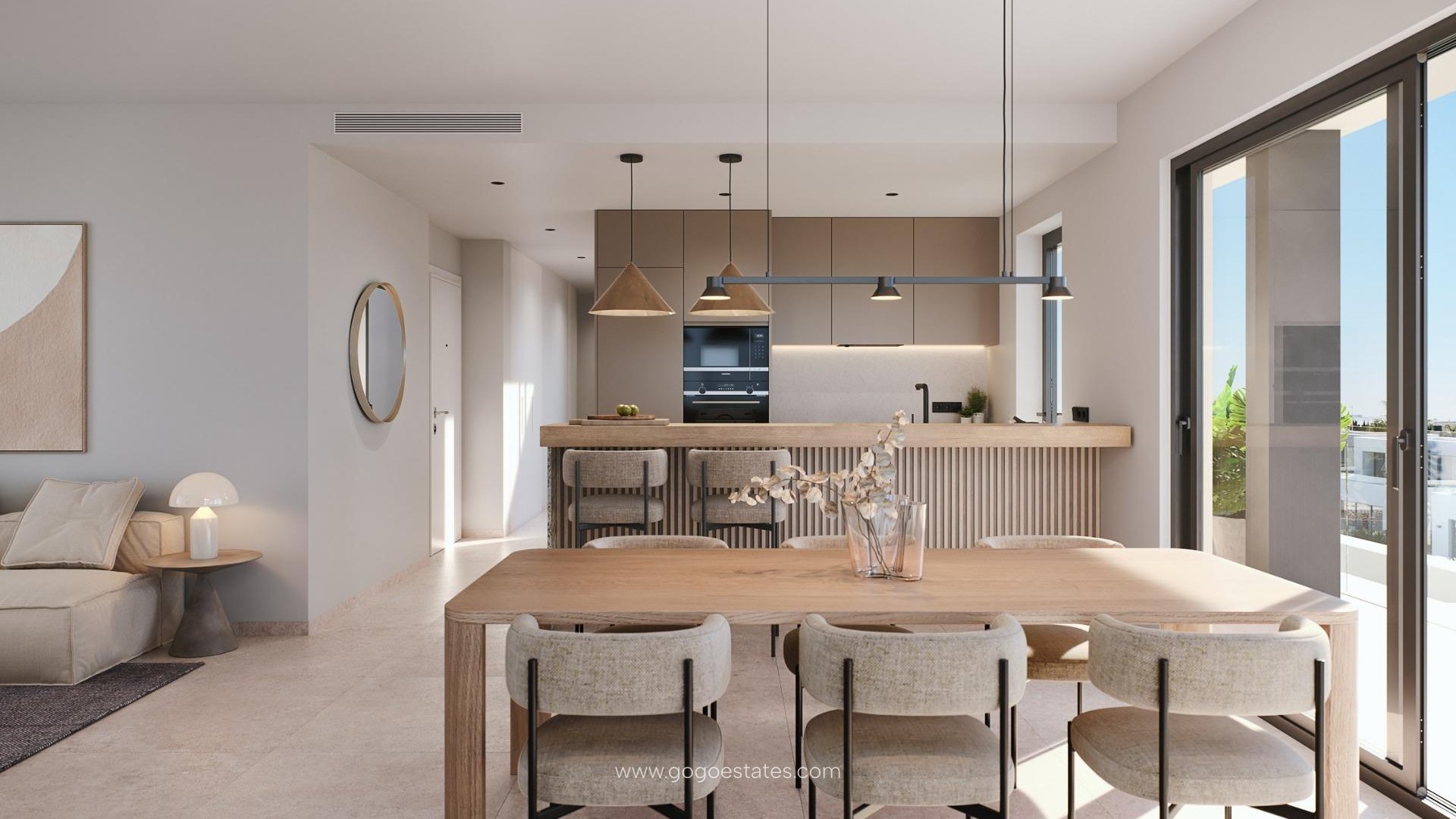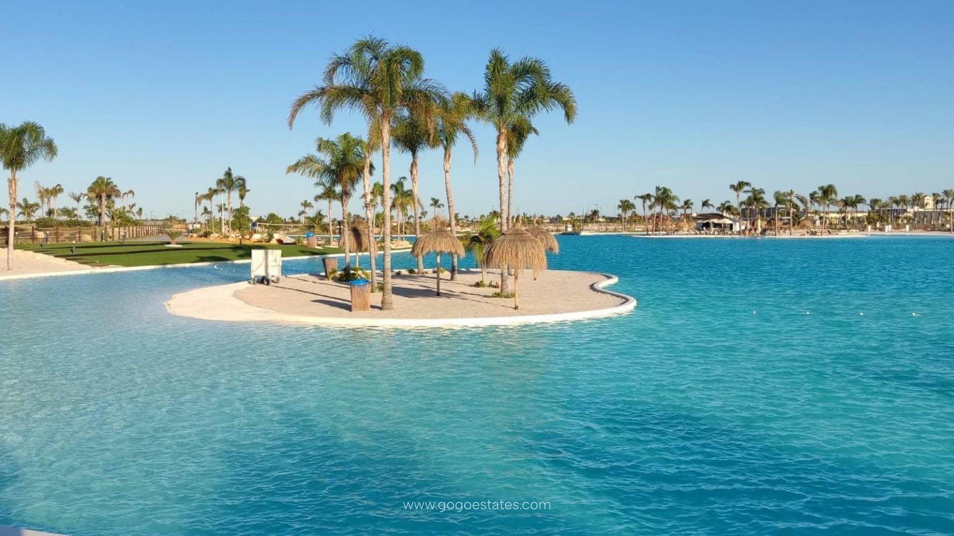 NIEUWBOUW IN OMHEIND PRIVÉRESORT IN DE PROVINCIE MURCIA Nieuwbouw wooncomplex bestaande uit 42 luxe appartementen en penthouses met 2 en 3 slaapkamers, 2 badkamers, open keuken met ruime woonkamer, inbouwkasten en terrassen. Appartementen op de begane grond met privétuin, appartementen op de middelste verdiepingen met terras en penthouses met een groot privéterras. Deze exclusieve ontwikkeling heeft een aangelegde gemeenschappelijke ruimte met een prachtig eigentijds zwembad, een sociale club en groene zones. Alle appartementen hebben een ondergrondse parkeergarage en berging. Gelegen in een omheind privéresort, met een hoofdingang en 24 uur bewaking. Het resort is ontworpen rond een indrukwekkend groengebied van 126.000 m2. Het bestaat uit wandel- en fietspaden, sportfaciliteiten, paddle- en tennisbanen, een minigolfbaan, tuinen, hondenparken, recreatiegebieden, clubhuis.... Ook in het centrale gebied ligt het juweel van het resort, een kristalhelder kunstmatig meer van bijna 17.000 m2 wateroppervlak, omringd door witte zandstranden en palmbomen, dat een stukje Caribisch gebied naar de regio Murcia brengt. Er zijn 2 eilanden in het meer, waarvan er één een eigen bar heeft, en er zijn ook "strand Chiringuitos" verspreid over het meer. Het resort is strategisch gelegen op minder dan 4 km van het strand en de stad Los Alcázares, waar je verschillende watersporten kunt beoefenen, omringd door verschillende golfbanen en de stad Cartagena op minder dan 15 minuten rijden en 22 km van de luchthaven van Murcia, waardoor een breed cultureel, gastronomisch en sportief aanbod binnen handbereik ligt.