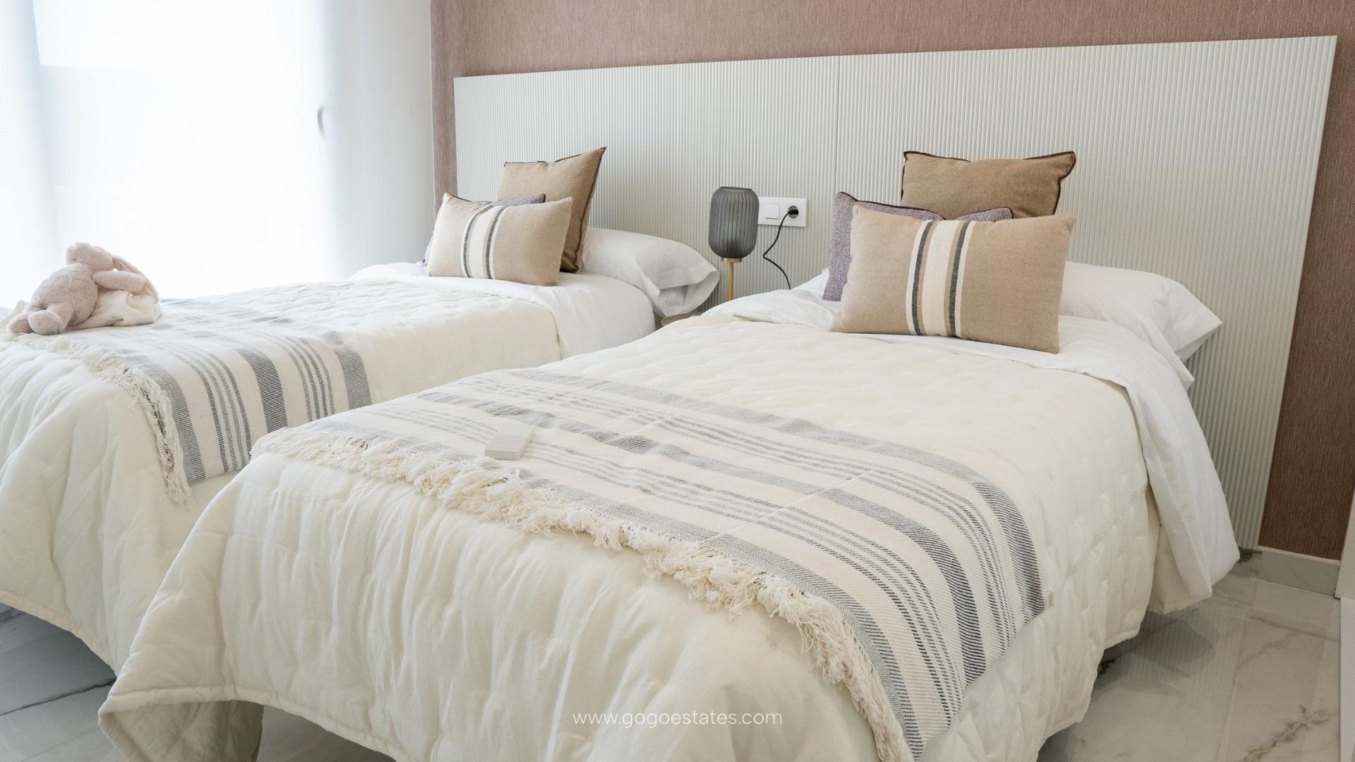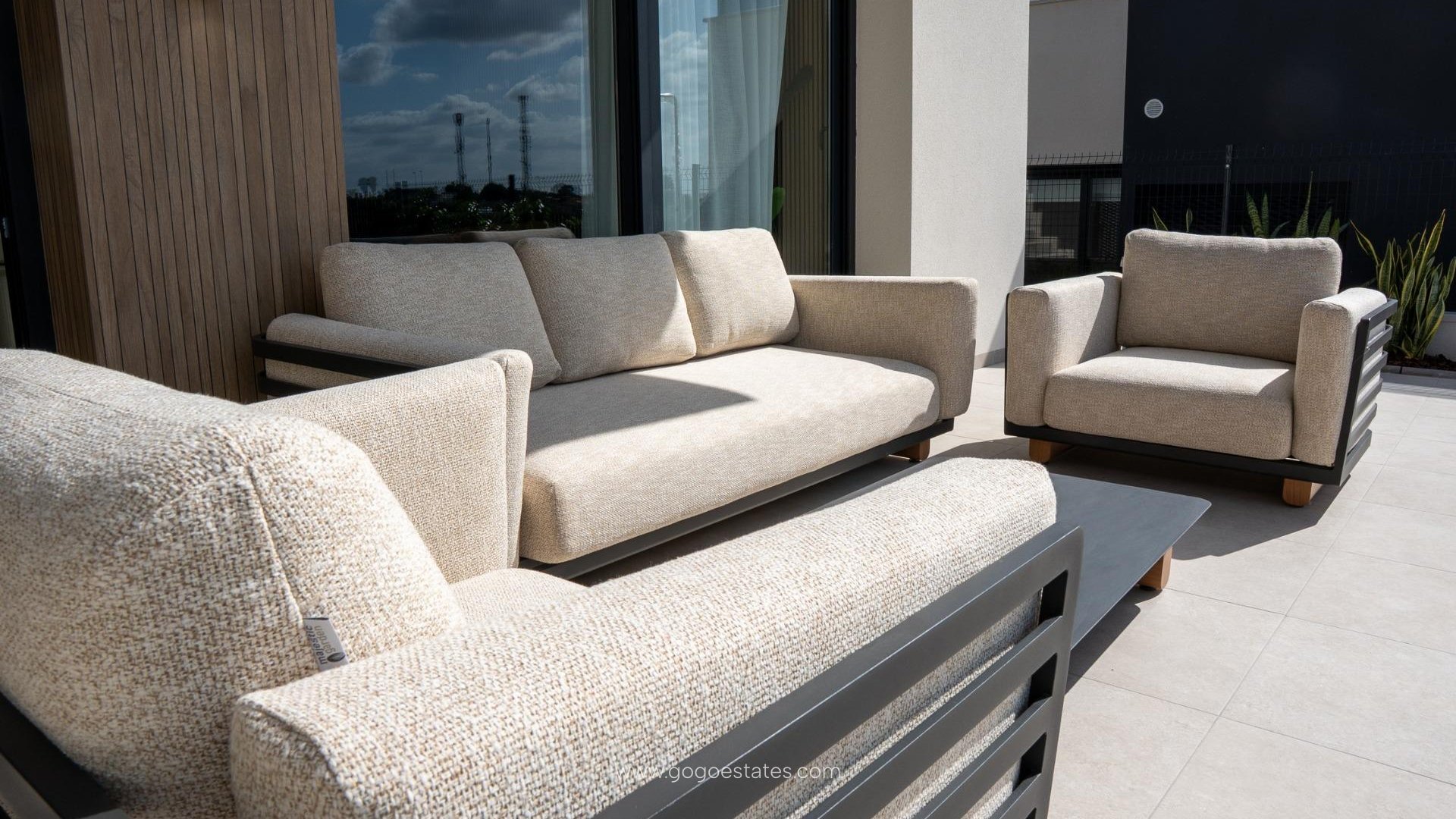 Bungalows: Units op de begane grond met een privétuin of op de bovenste verdieping met een solarium. Alle bungalows hebben twee slaapkamers, twee badkamers, een parkeerplaats en een berging, gelegen rond een centrale gemeenschappelijke ruimte met een zwembad en aangelegde tuinen.