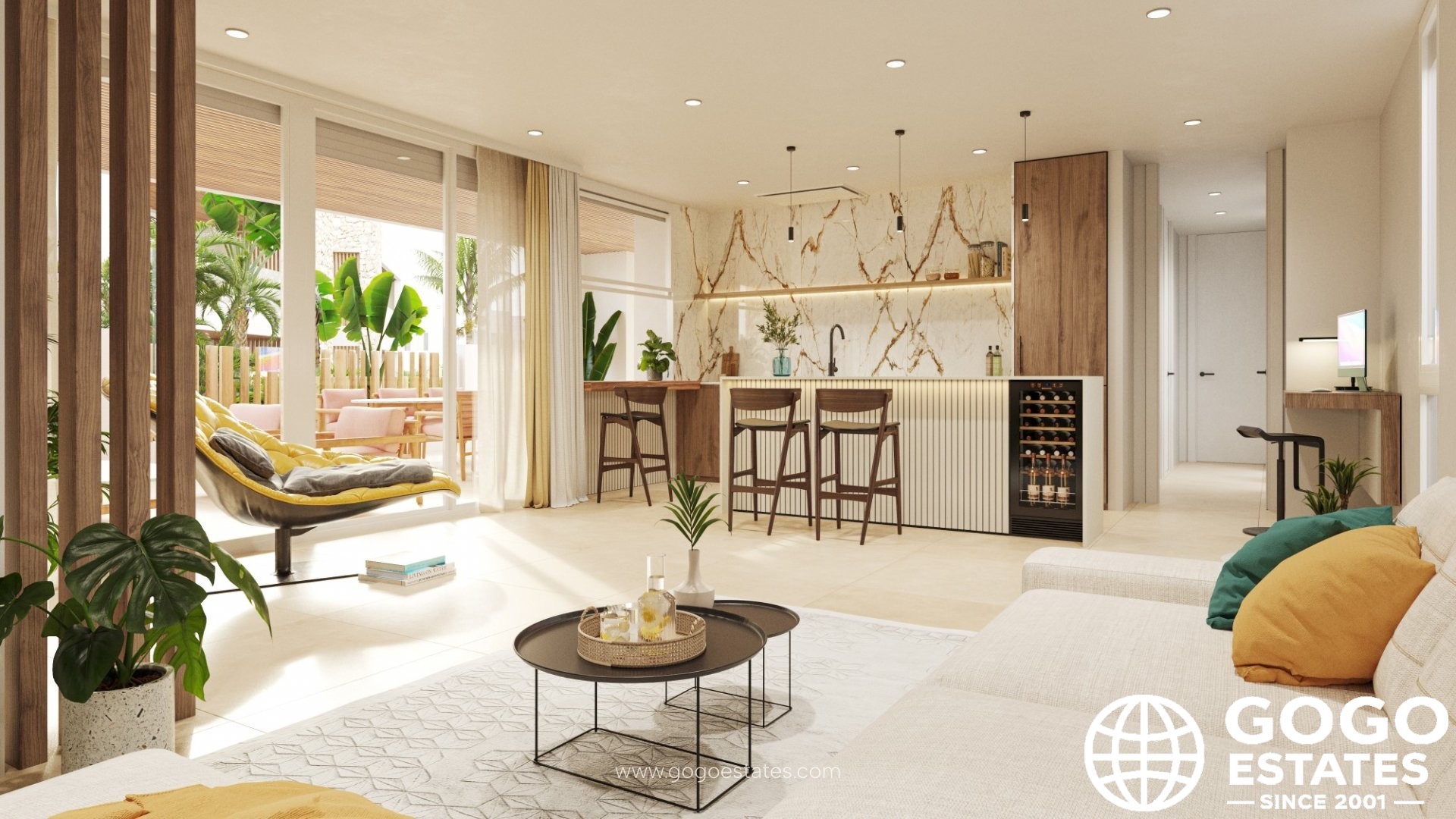 Dit uitnodigende appartement op de begane grond biedt een comfortabele woonruimte met twee slaapkamers en twee badkamers. De woning is perfect voor degenen die op zoek zijn naar een praktische en gezellige thuis.