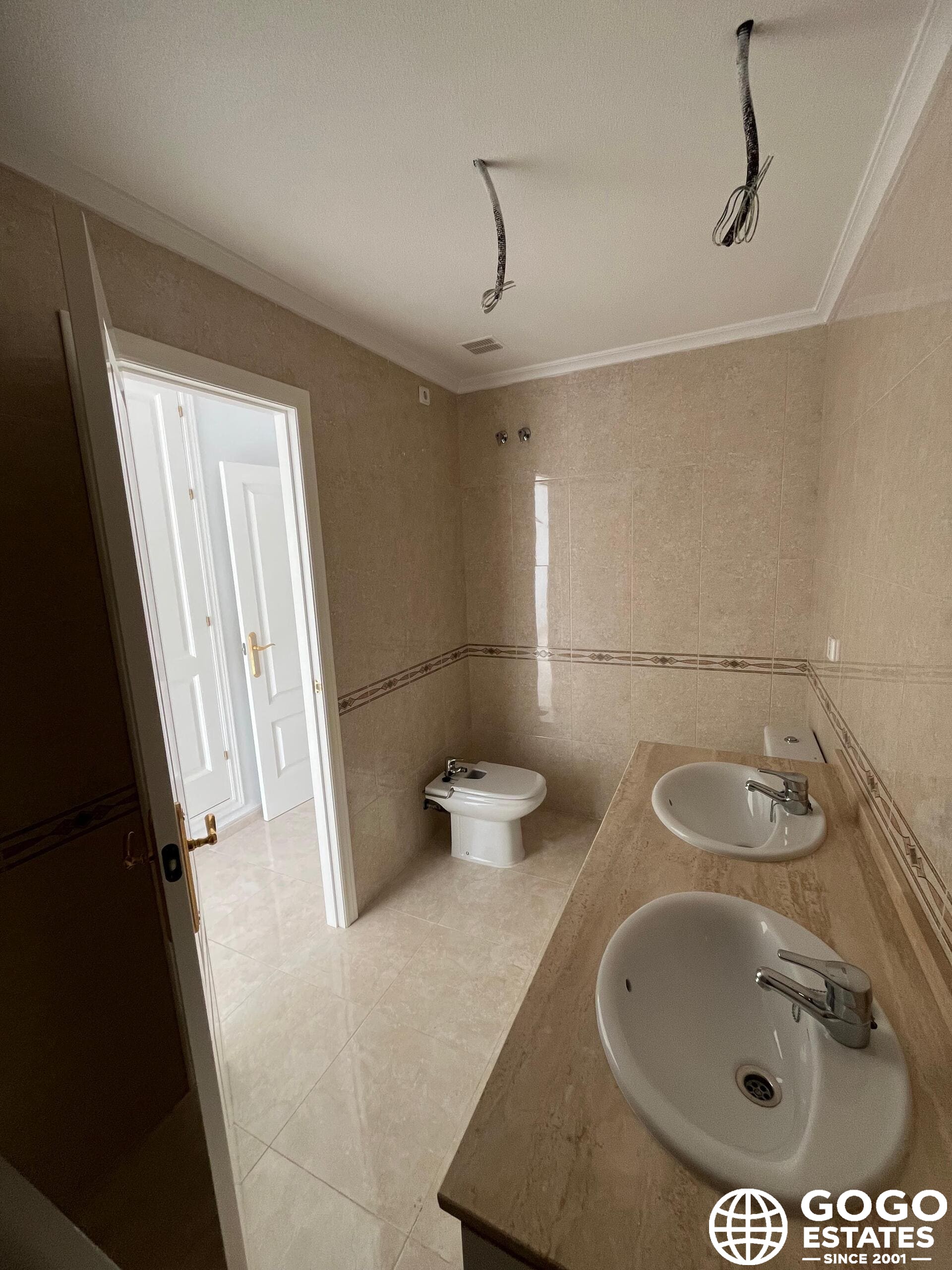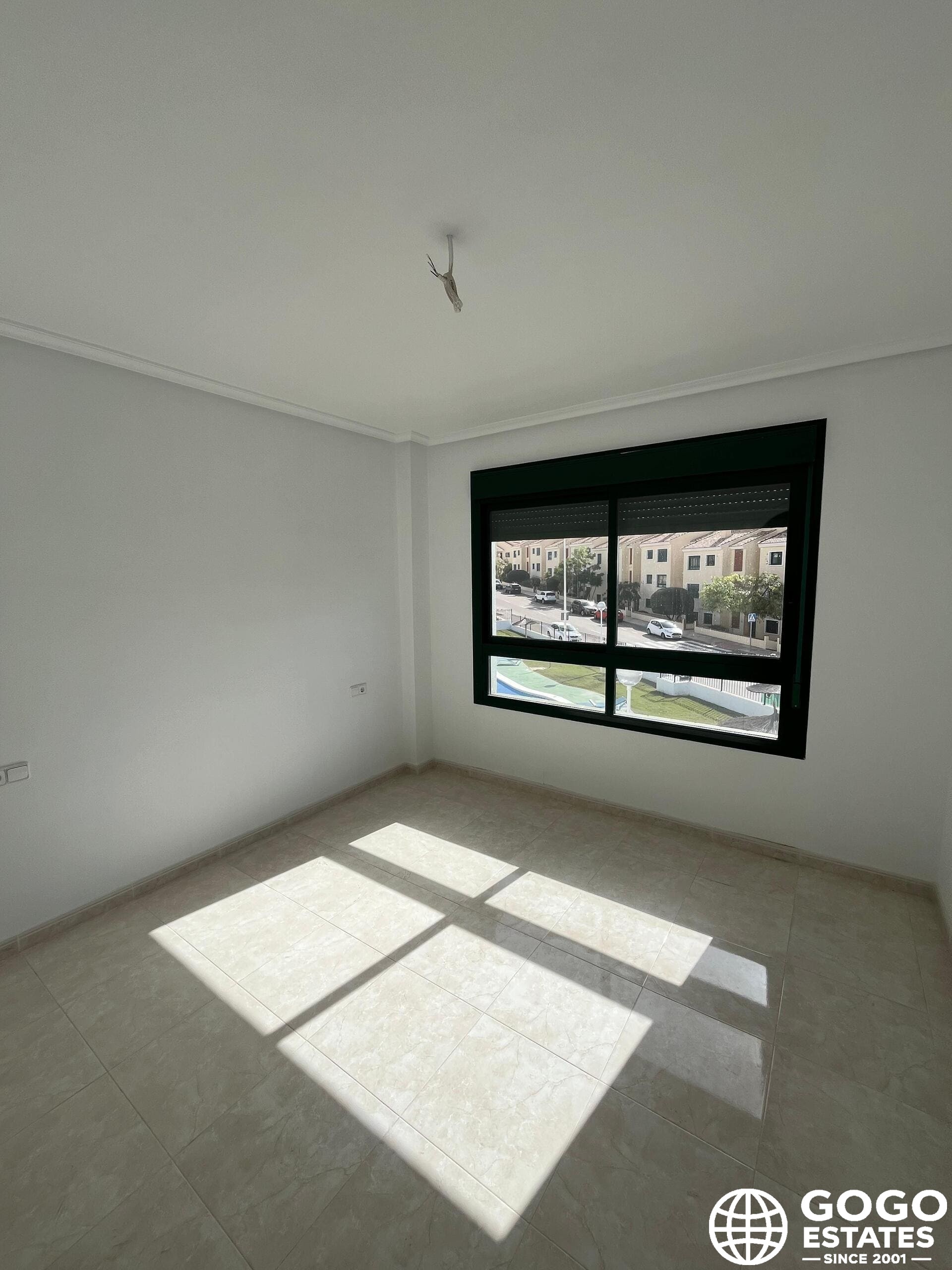 Standaardvoorzieningen zijn onder andere voorgeïnstalleerde airconditioning en inbouwkasten, wat moderniteit en gemak toevoegt. De keramische vloertegels zorgen voor een duurzame en elegante afwerking.