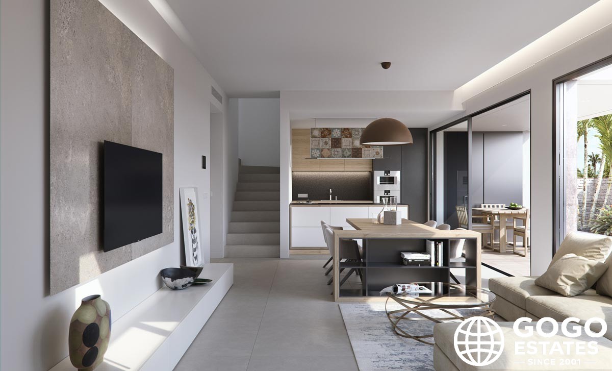Binnen beschikt de villa over porseleinen vloertegels, moderne apparaten en een airconditioningsysteem. Het is volledig gemeubileerd, klaar om in te trekken. Inbouwkasten en een video-intercom zorgen voor gemak en veiligheid.