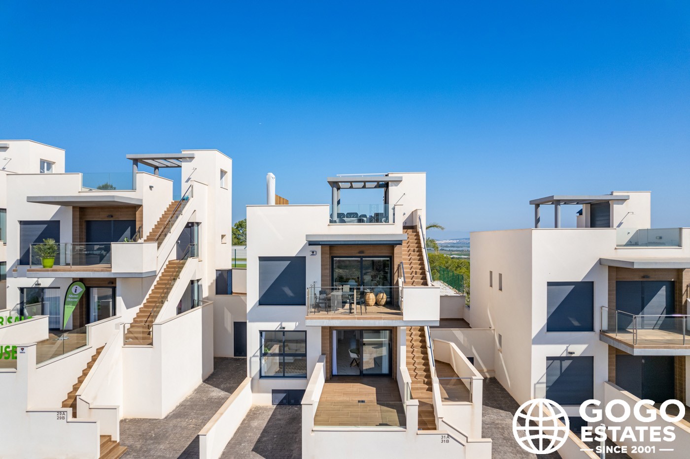 De interieurs zijn ontworpen voor comfort, met 3 slaapkamers en 2 badkamers. Moderne keukens en airconditioning zorgen voor een aangename leefomgeving. Inbouwkasten bieden voldoende opbergruimte.