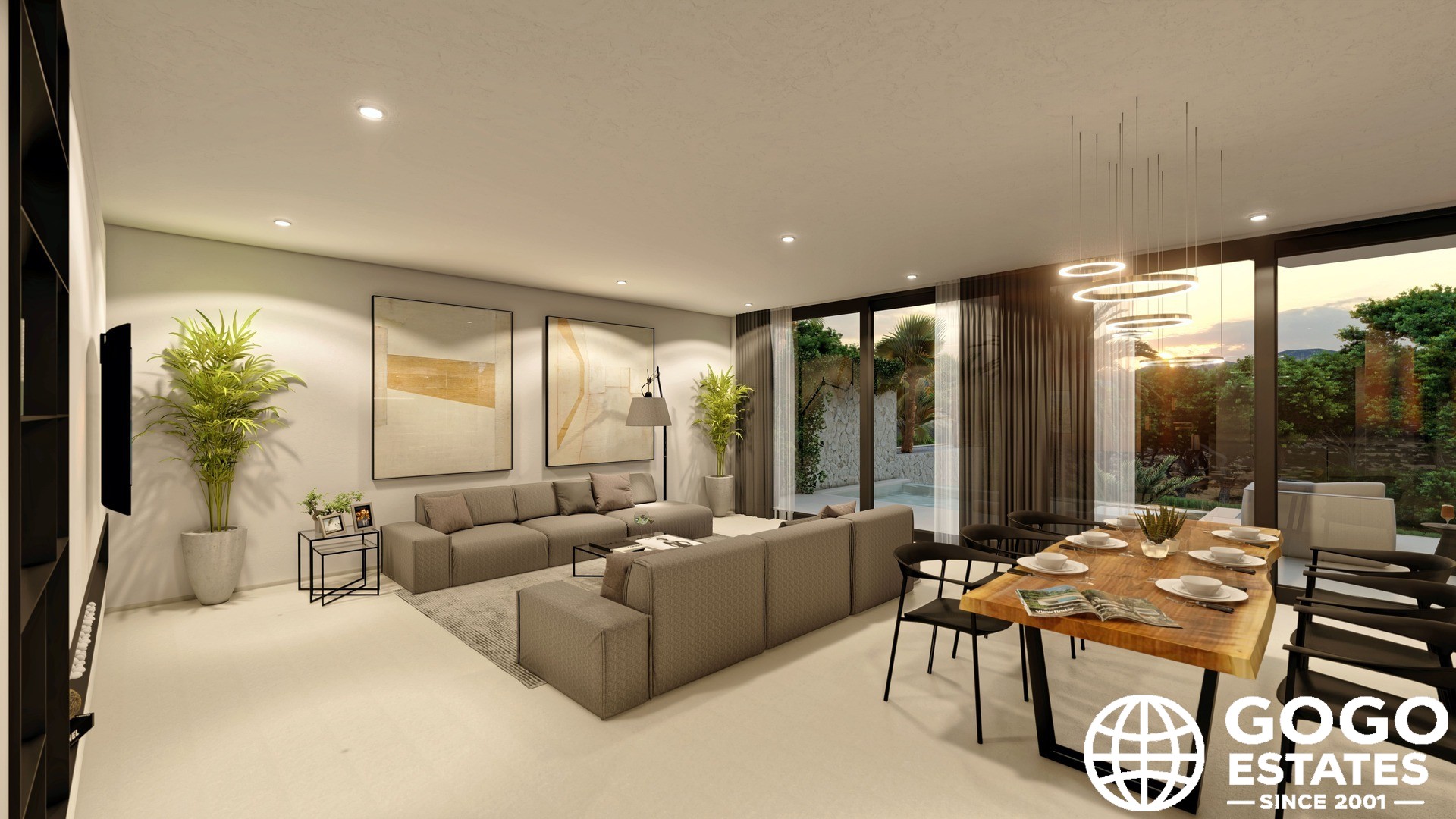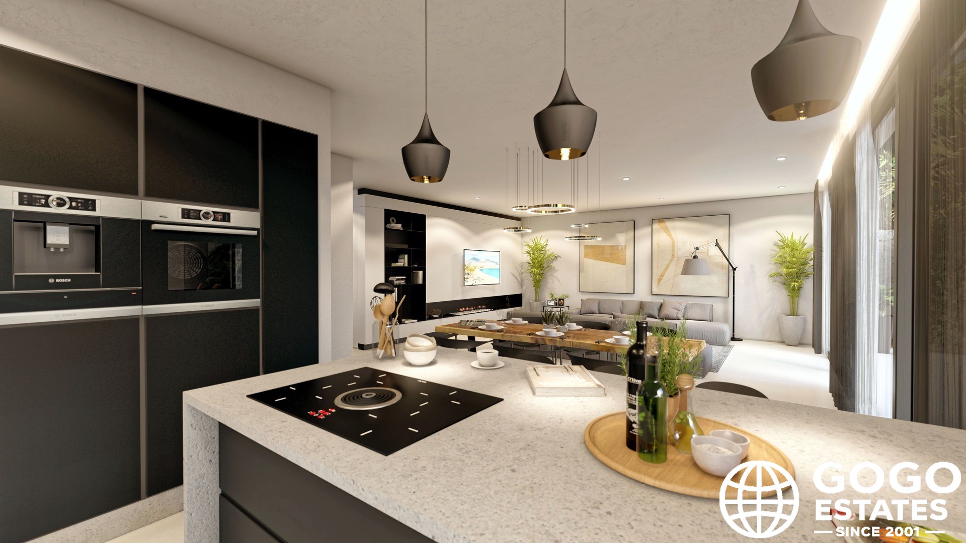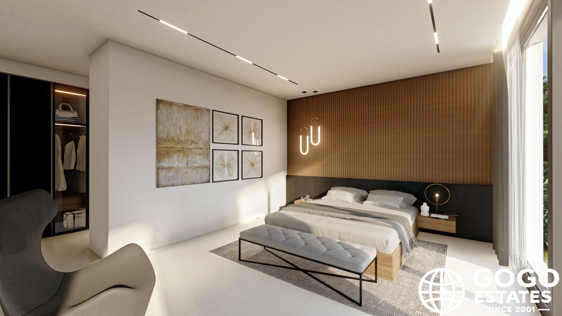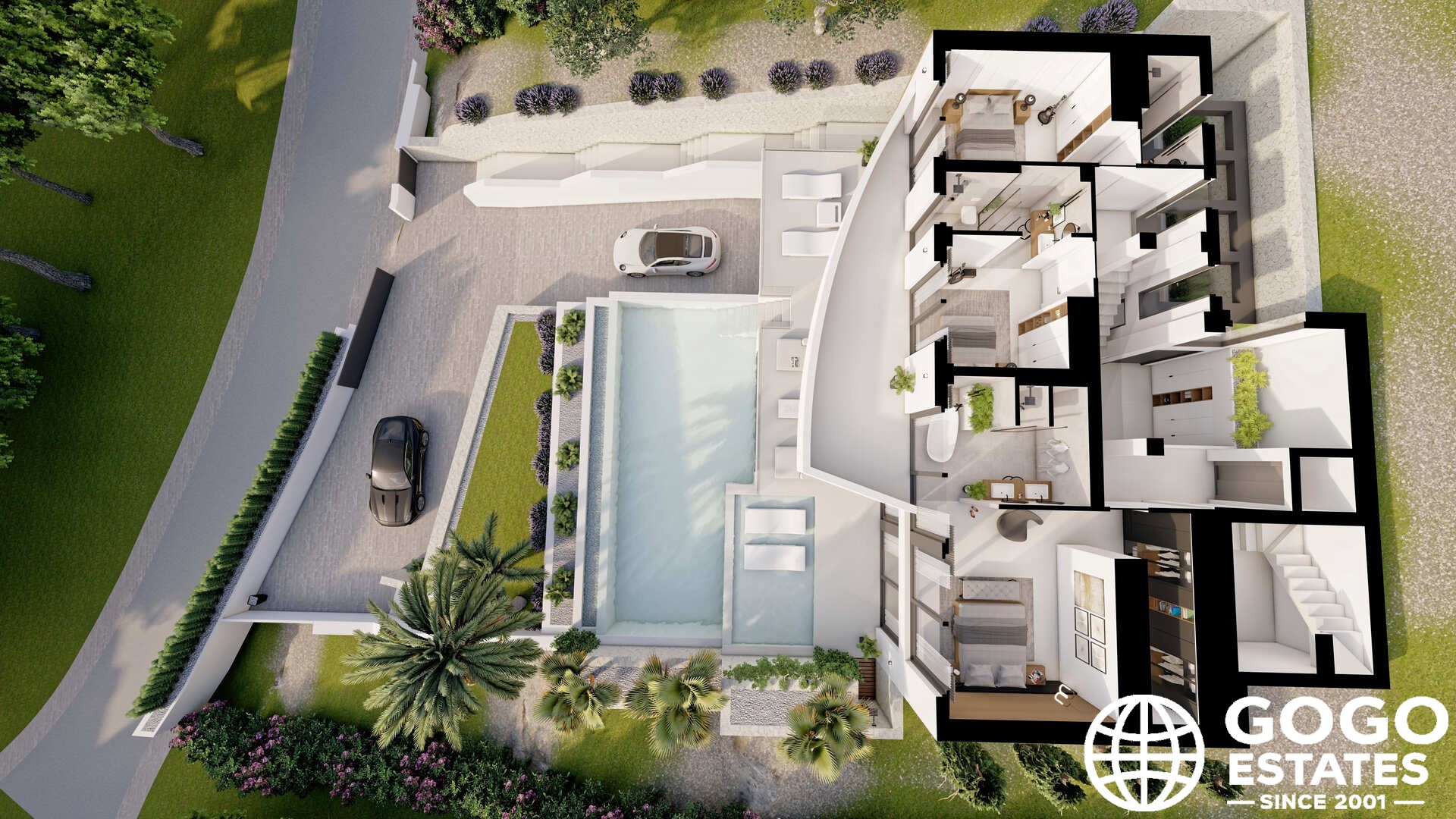 Het interieur is zorgvuldig ontworpen voor comfort en functionaliteit, met vier slaapkamers, elk met een eigen badkamer. Inbouwkasten bieden voldoende opbergruimte. De moderne keuken en de keramische vloeren verhogen de elegantie van het huis.
