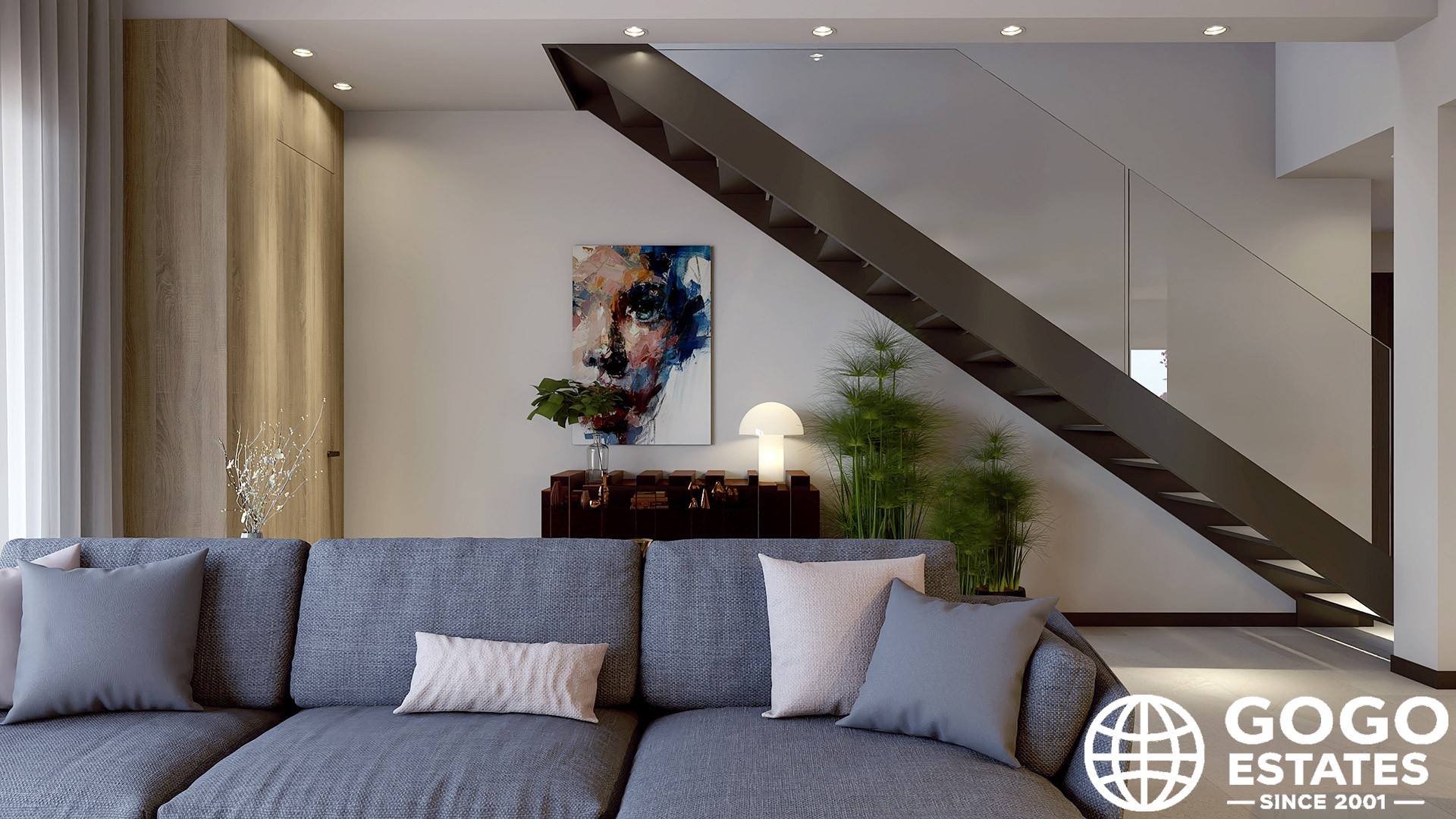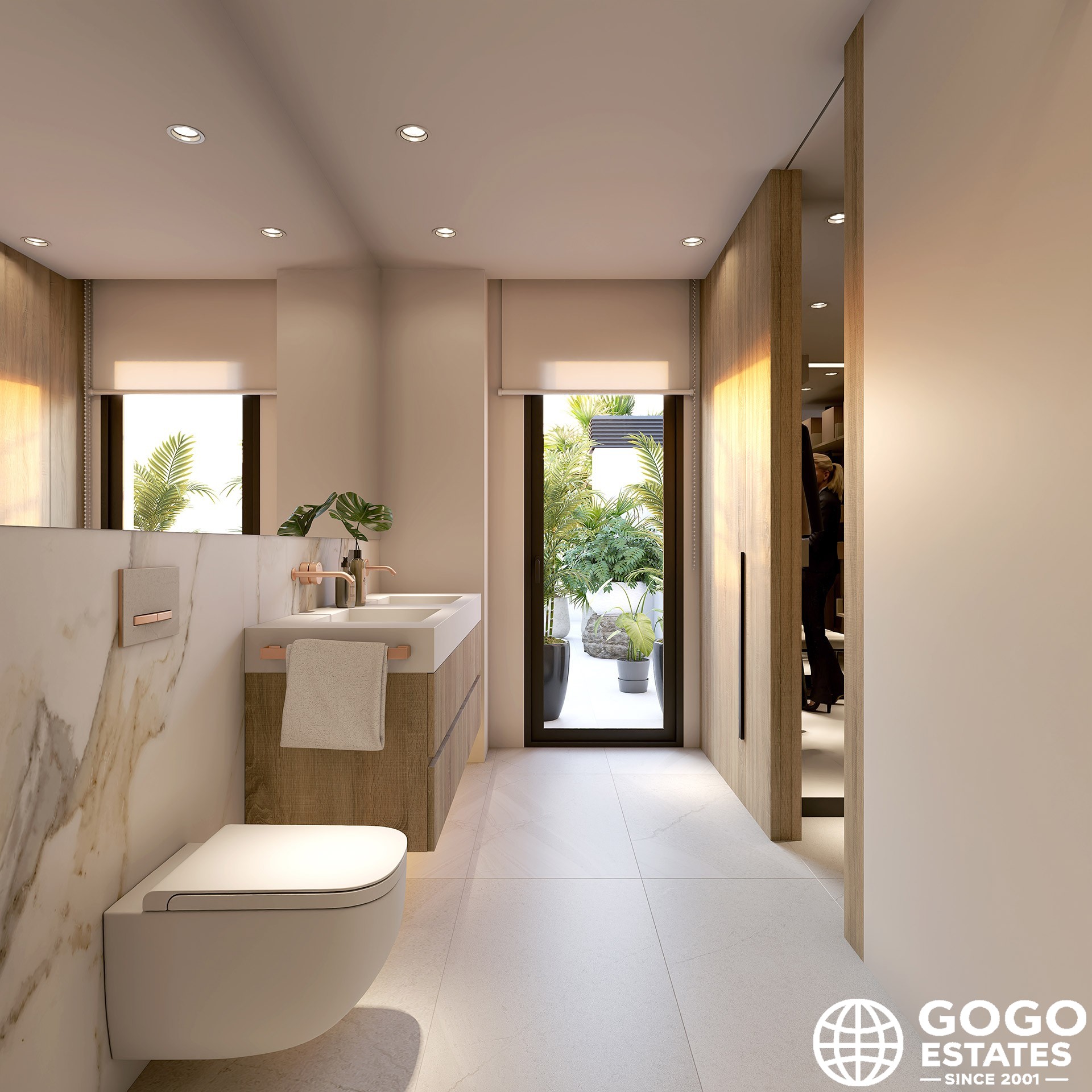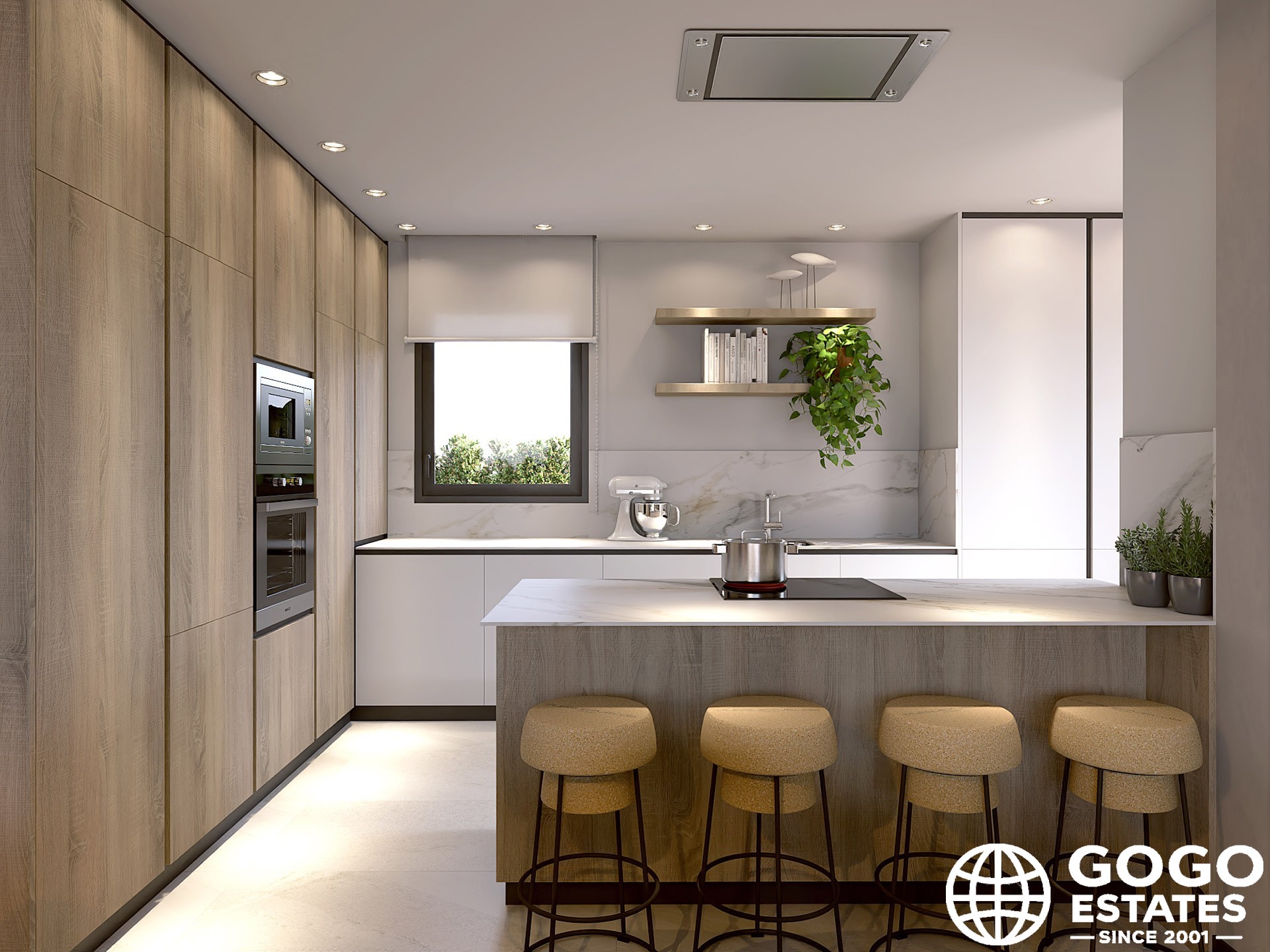 Het interieur is ontworpen om maximaal comfort en functionaliteit te bieden. Kenmerken zijn onder andere airconditioning, elektrische rolluiken en inbouwkasten voor voldoende opbergruimte. De indeling omvat een privé-garage voor veilige parkeergelegenheid en een solarium om te genieten van panoramische uitzichten.