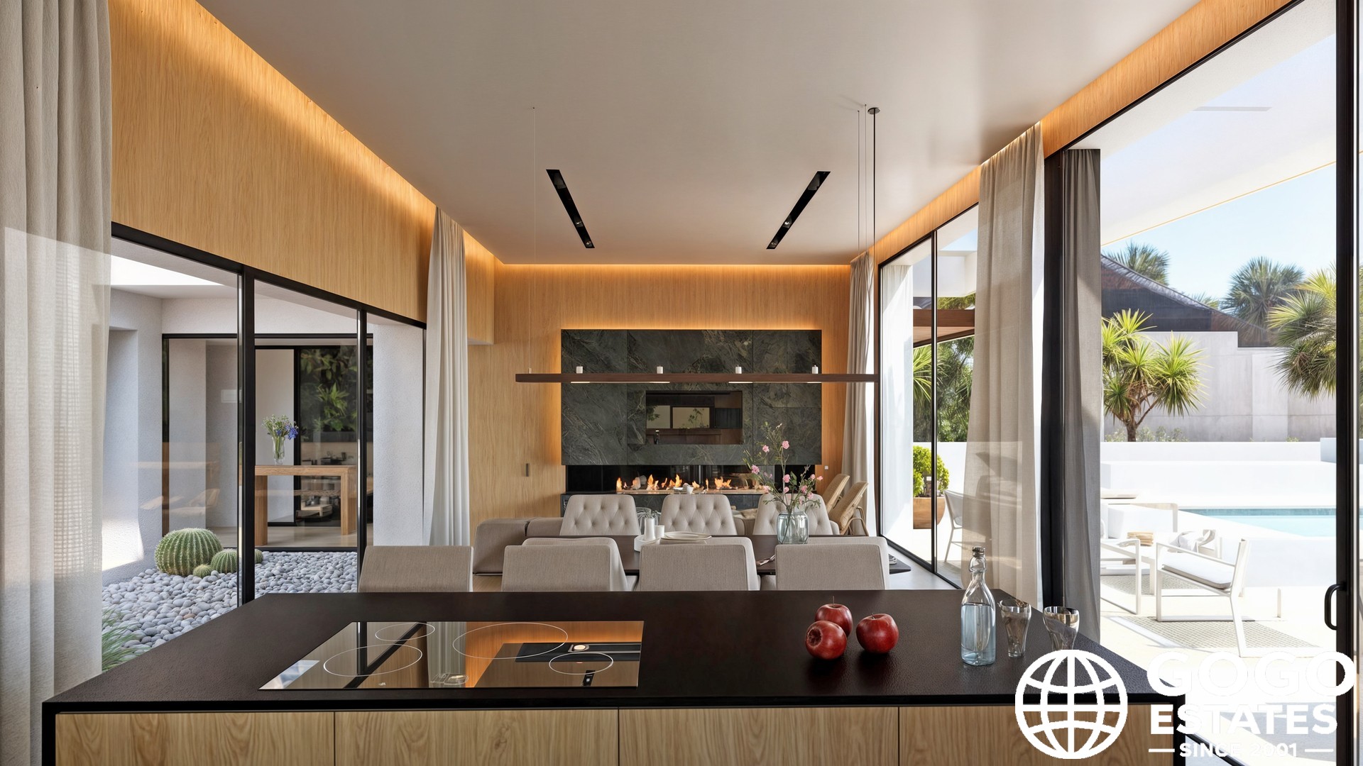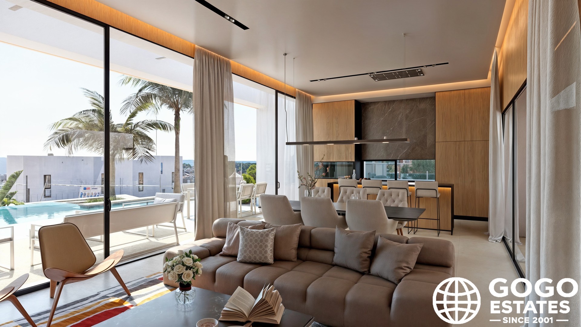 Het interieur van de villa is ontworpen om maximaal comfort en functionaliteit te bieden. Met in totaal 5 slaapkamers is de woning perfect voor het onderbrengen van een groot gezin of het ontvangen van gasten. De 4 badkamers zorgen voor comfort en privacy voor alle bewoners. De villa is uitgerust met airconditioning, wat zorgt voor een aangename omgeving het hele jaar door. Daarnaast beschikt het over vloerverwarming, wat extra comfort biedt tijdens de koudere maanden. Inbouwkasten bieden efficiënte en stijlvolle opbergruimte, wat bijdraagt aan het behoud van de orde en esthetiek van het huis.