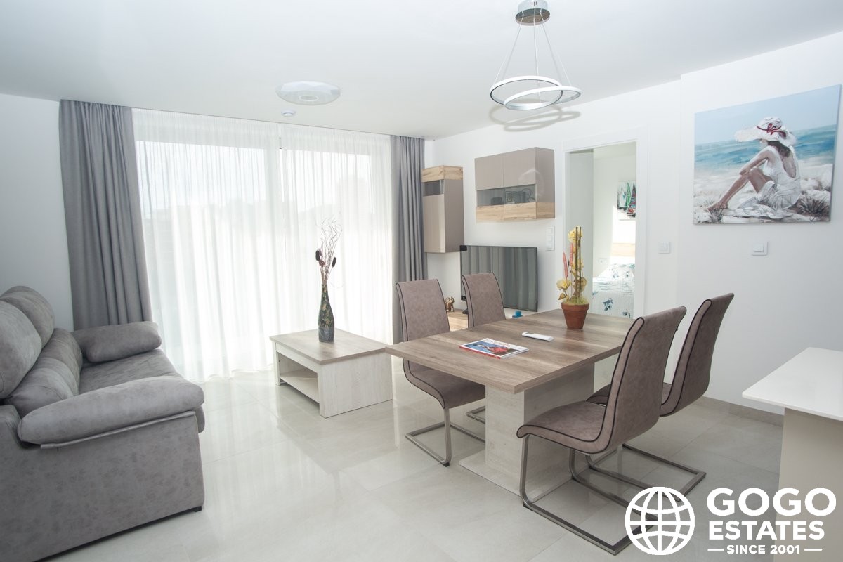 De woningen zijn uitgerust met airconditioning en moderne apparaten, wat zorgt voor een aangename omgeving het hele jaar door. Inbouwkasten bieden efficiënte opbergruimte, terwijl de porseleinen vloertegels een vleugje elegantie en duurzaamheid aan elke kamer toevoegen.