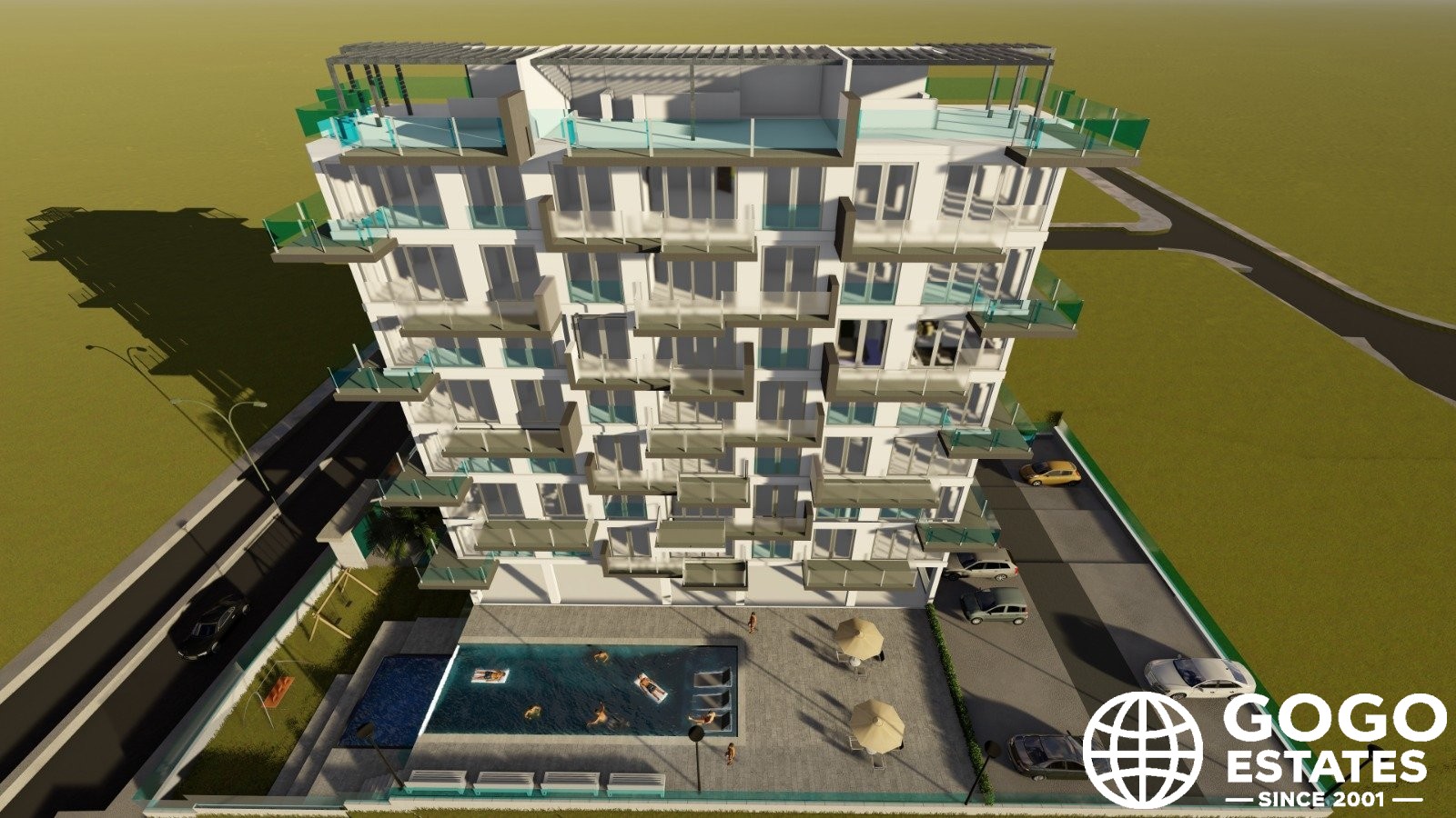 De gemeenschappelijke ruimtes omvatten gemeenschappelijke tuinen, een zwembad en parkeermogelijkheden, wat een complete levensstijl biedt. Het gemeenschappelijke solarium is een perfecte plek om van de zon en het panoramische uitzicht te genieten.