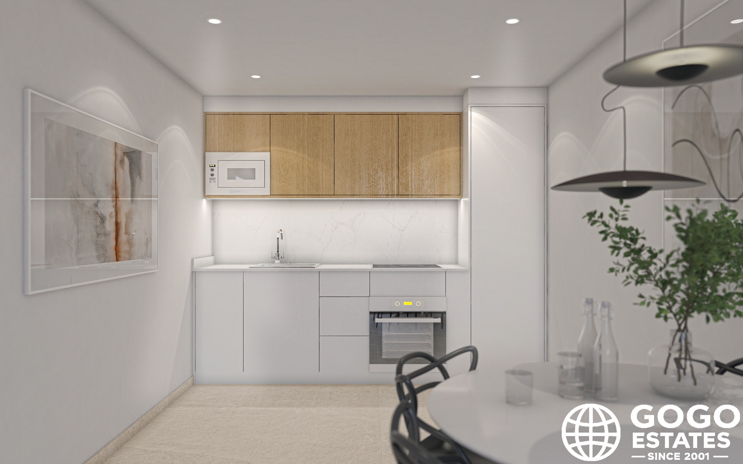 Elke bungalow heeft een privézwembad, pergola's voor schaduw en voorgeïnstalleerde airconditioning. Geniet van milieuvriendelijke functies zoals oplaadpunten voor elektrische auto's. Binnen bieden keramische vloeren en inbouwkasten een stijlvolle en praktische woonruimte.