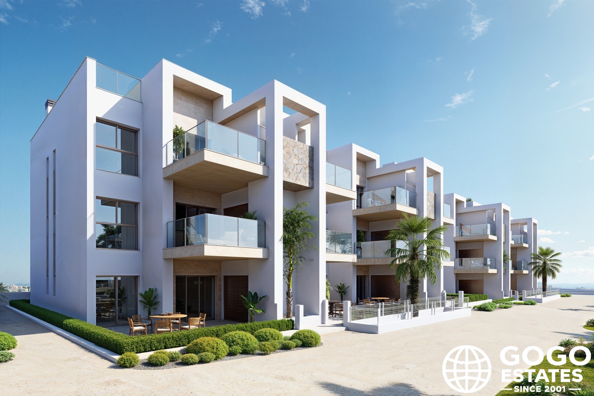 De interieurs zijn ontworpen met kwaliteit en functionaliteit in gedachten. Alle woningen beschikken over porseleinen tegels, airconditioning en elektrische rolluiken. Inbouwkasten en moderne apparaten verbeteren het dagelijks leven. De penthouses hebben solariums, perfect om in privacy te zonnebaden.