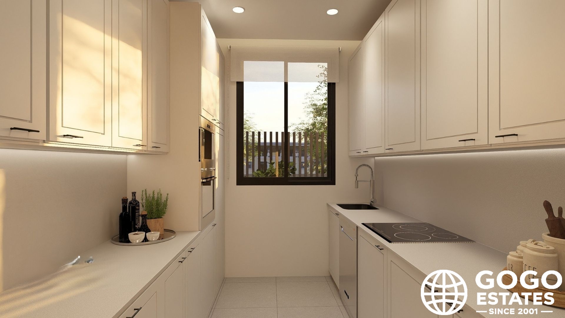 Binnen beschikt het penthouse over moderne apparatuur, inbouwkasten en elegante porseleinen vloertegels. Een video-intercom verhoogt de veiligheid en gemoedsrust.