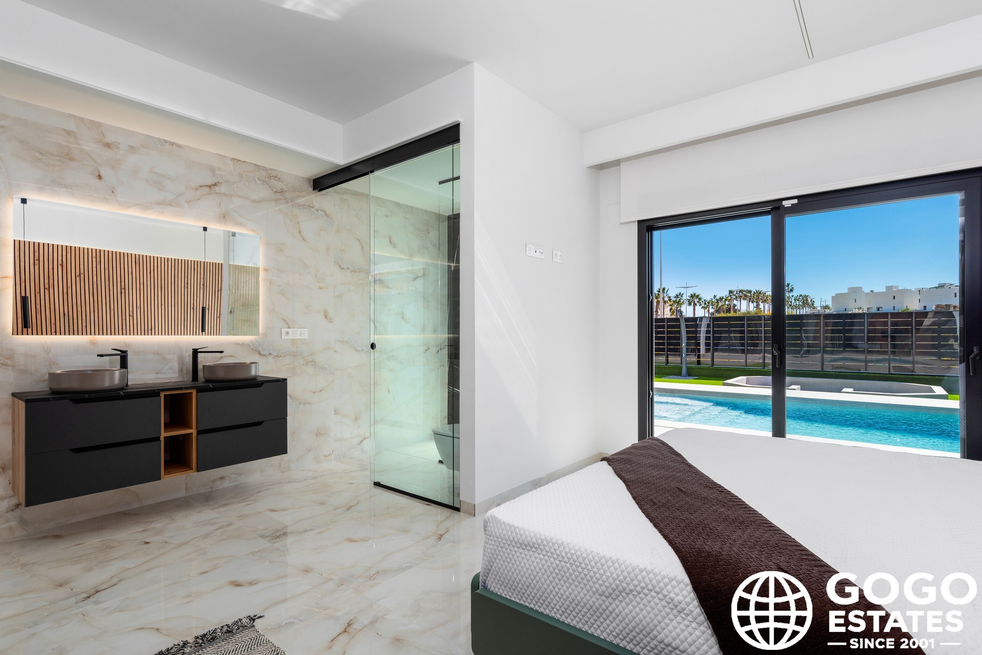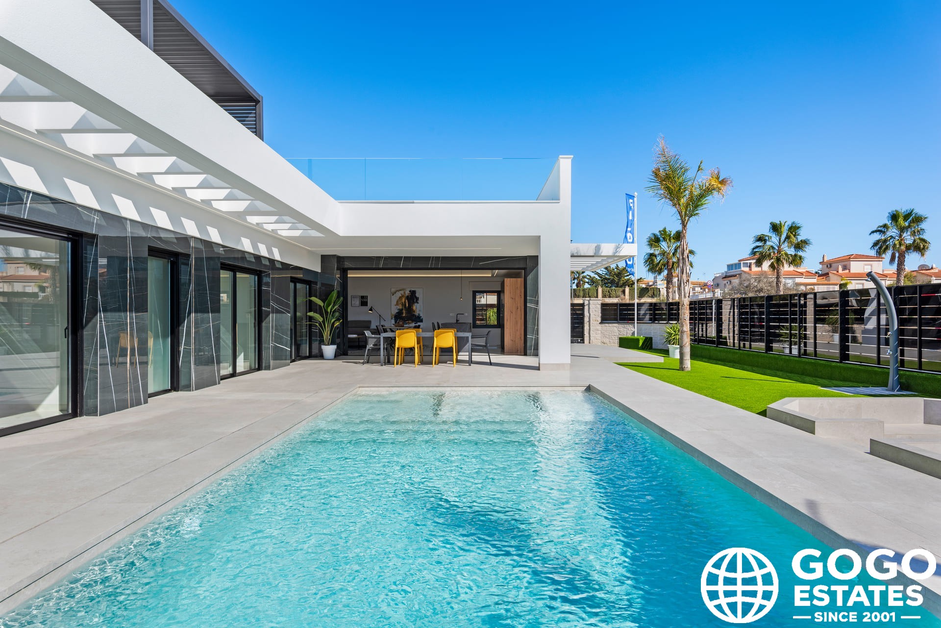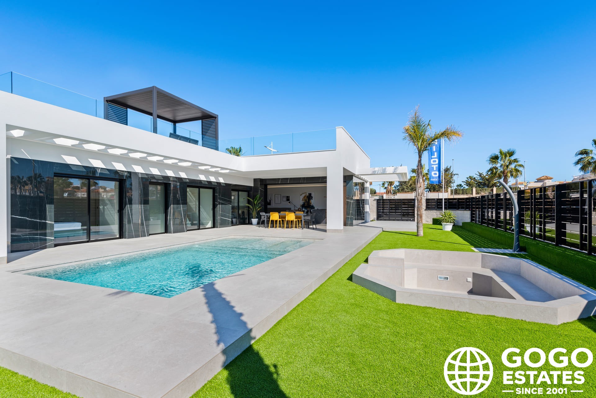 De woningen beschikken over een reeks exterieurkenmerken die opvallen door hun elegantie en functionaliteit. Elke woning heeft een privézwembad, perfect om te genieten van het mediterrane klimaat. Daarnaast bieden de terrassen en solariums ideale ruimtes voor buitenrecreatie, waardoor men kan genieten van het uitzicht en de natuurlijke omgeving. De aanwezigheid van pergola's voegt een vleugje onderscheid toe en biedt schaduw op zonnige dagen.