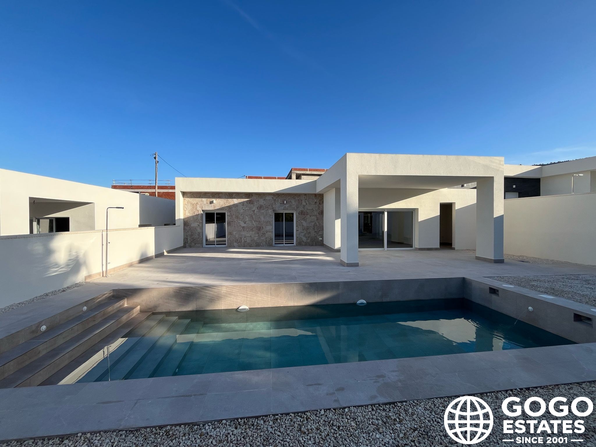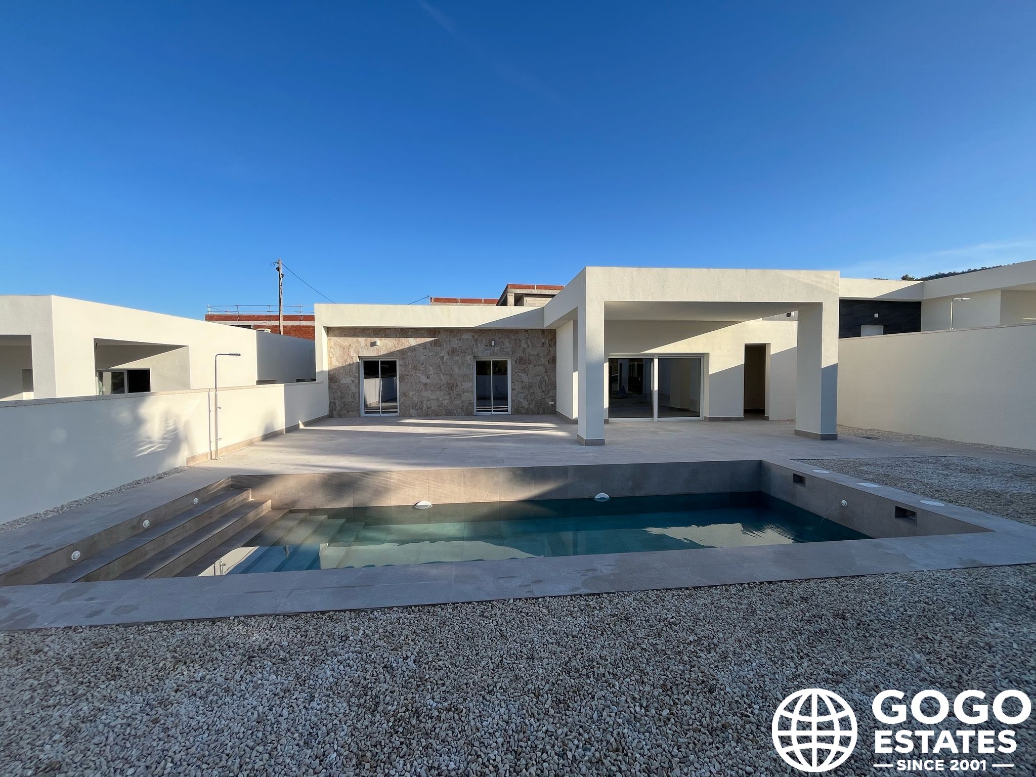Wnętrze willi jest starannie zaprojektowane, aby zapewnić komfort i styl. Posiada trzy sypialnie, co czyni ją idealną dla rodzin lub tych, którzy potrzebują dodatkowej przestrzeni dla gości lub biura. Dwie łazienki są wyposażone w nowoczesne wykończenia. Podłoga z płytek porcelanowych dodaje eleganckiego akcentu i jest łatwa w utrzymaniu. Elektryczne rolety i klimatyzacja zapewniają komfortowe warunki przez cały rok. Kuchnia jest wyposażona w nowoczesne urządzenia, co ułatwia codzienne zadania. Wbudowane szafy w sypialniach oferują wystarczającą przestrzeń do przechowywania, utrzymując porządek i organizację.