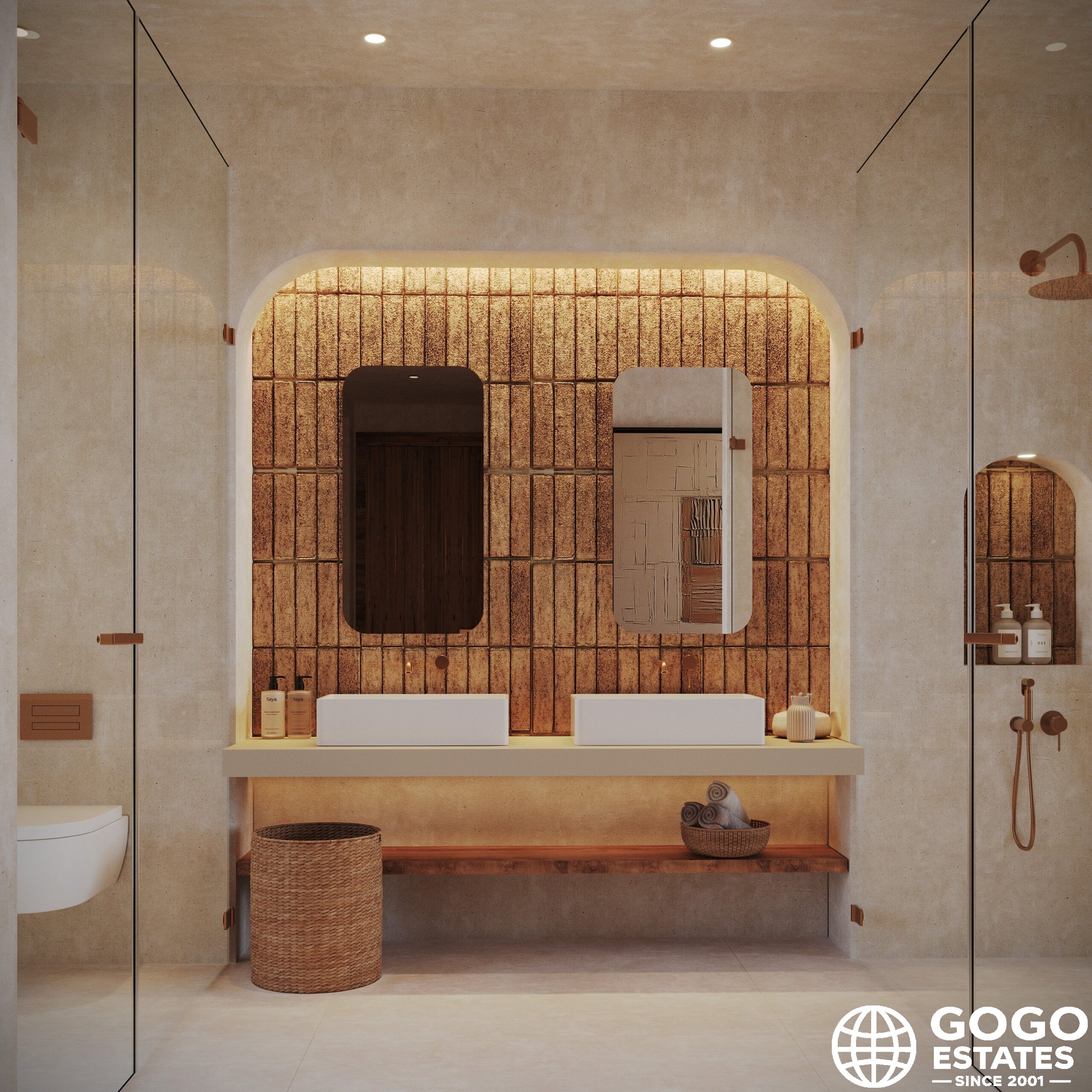 Willa została zaprojektowana z myślą o maksymalnym komforcie, z nowoczesnymi cechami i wysokiej jakości wykończeniem. Wnętrze obejmuje trzy sypialnie z wbudowanymi szafami oraz cztery łazienki z ogrzewaniem podłogowym. Kuchnia jest wyposażona w nowoczesne urządzenia.