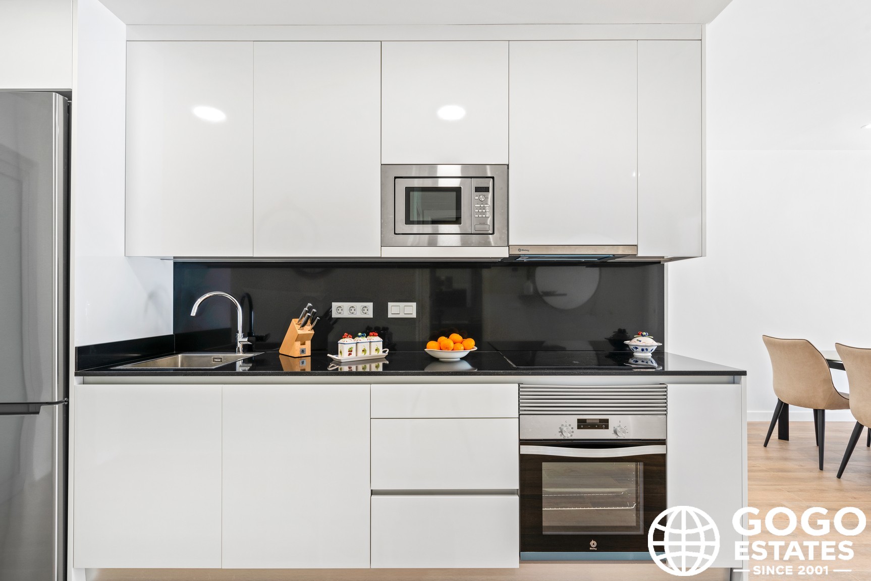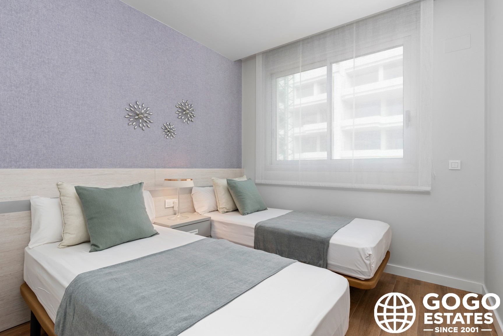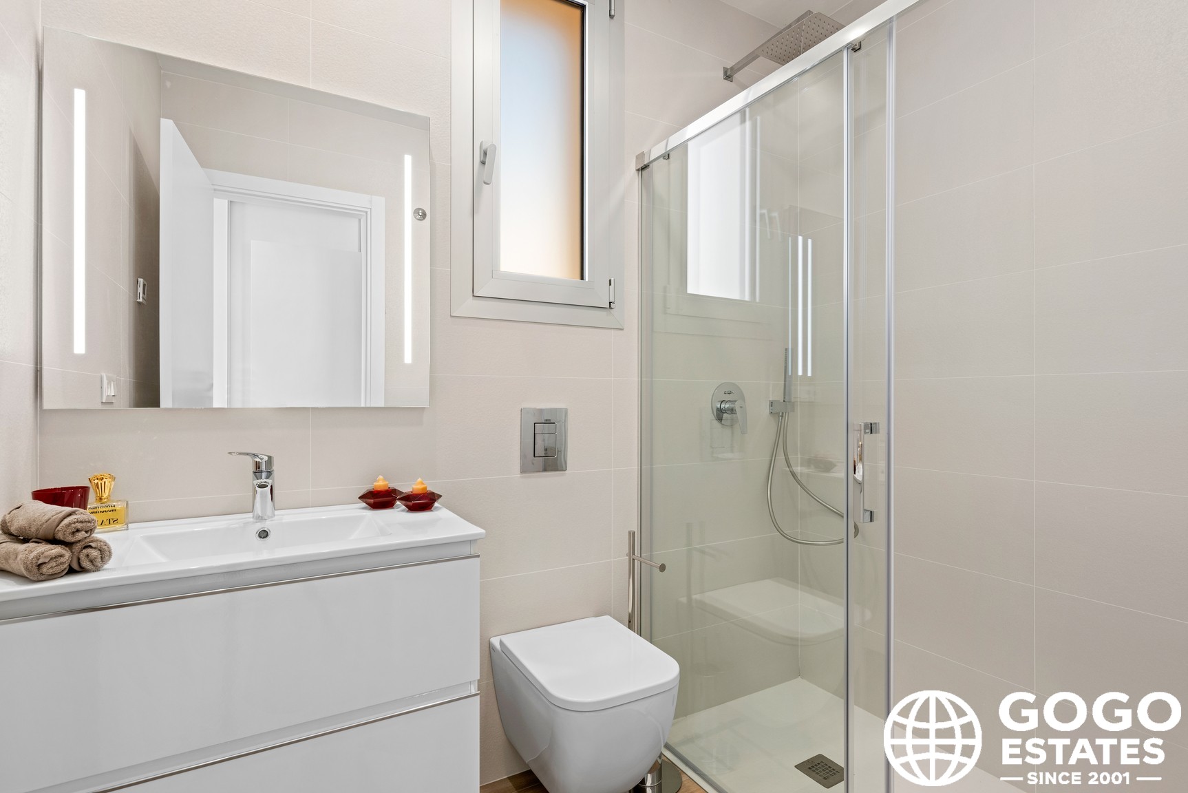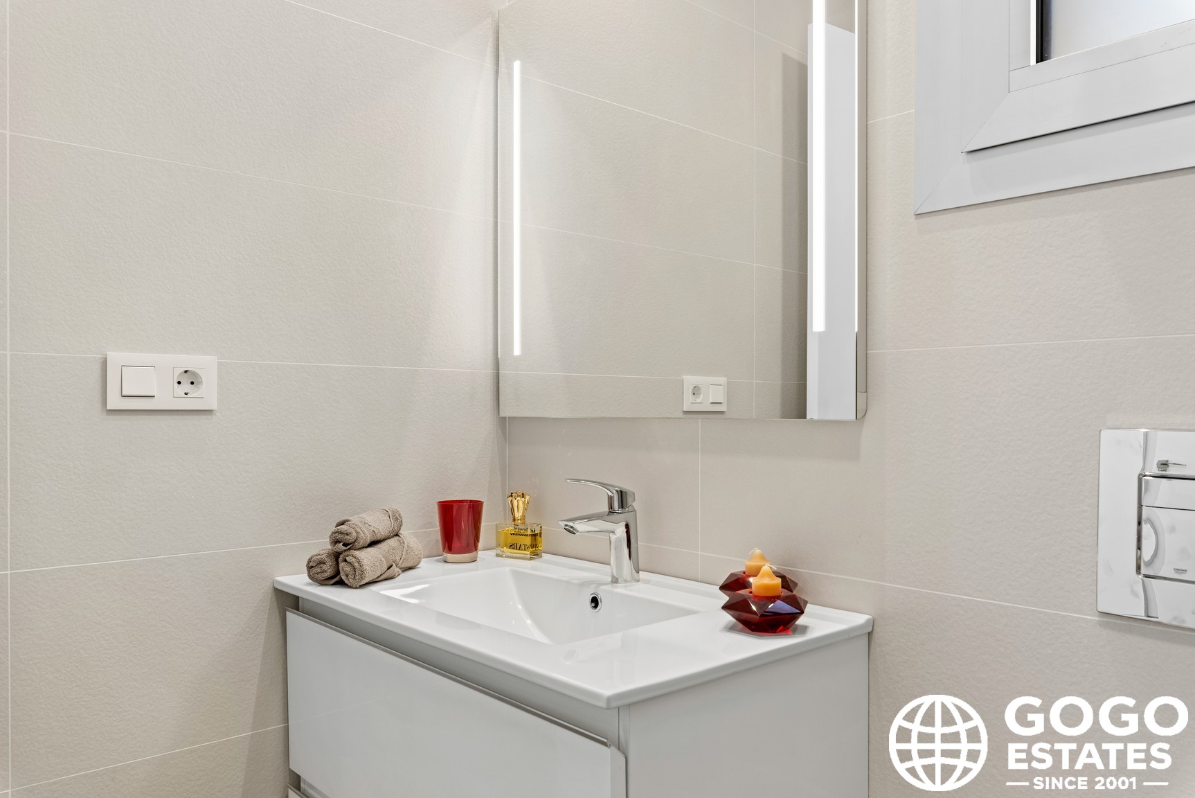 Penthouse obejmuje 2 sypialnie i 2 łazienki, z wnętrzami zaprojektowanymi z myślą o maksymalnym komforcie i funkcjonalności. Do cech należy elektryczne rolety, system automatyki domowej, klimatyzacja i wbudowane szafy.