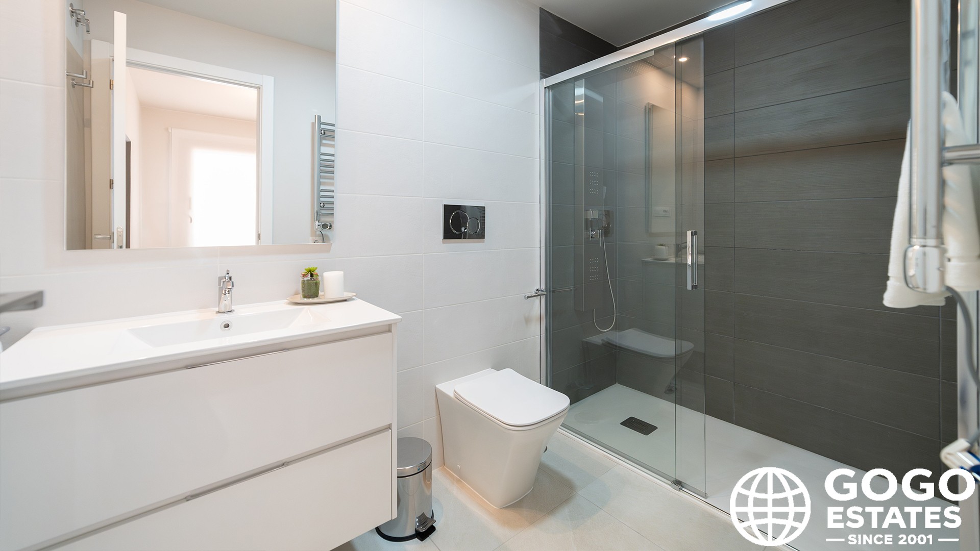Ciesz się śródziemnomorskim klimatem z prywatnym ogrodem i tarasem, idealnymi do wypoczynku na świeżym powietrzu. Wnętrze obejmuje nowoczesne meble i urządzenia, z klimatyzacją, ogrzewaniem podłogowym i elektrycznymi roletami zapewniającymi komfort przez cały rok.