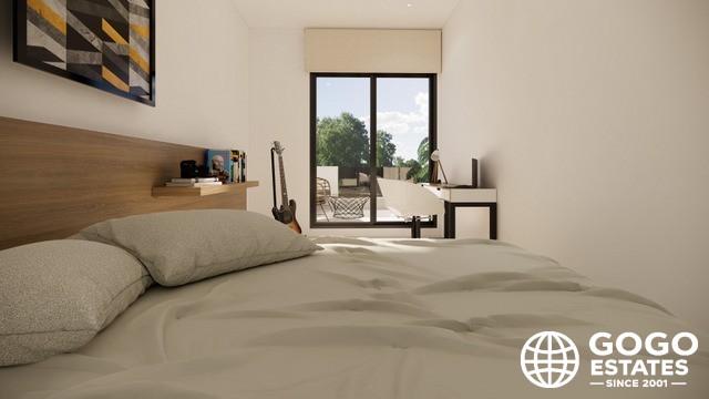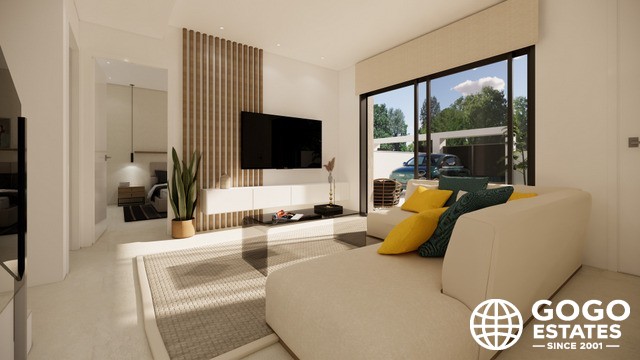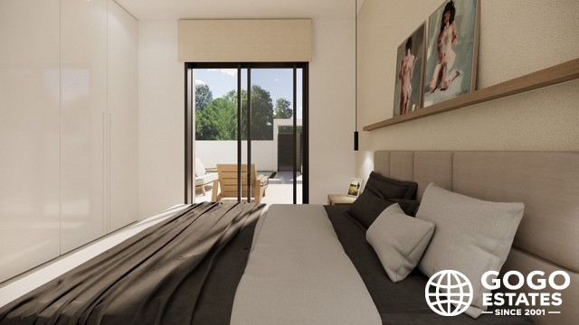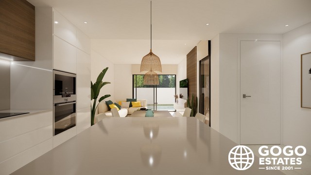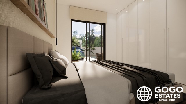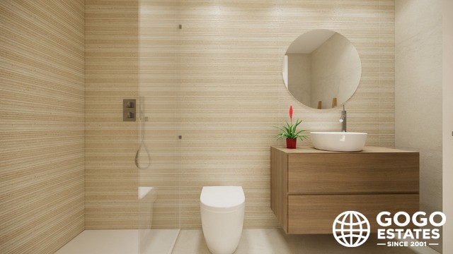 Wnętrza domów szeregowych zostały zaprojektowane, aby zapewnić maksymalny komfort i funkcjonalność. Z układem obejmującym 3 sypialnie i 2 łazienki, każda przestrzeń jest zoptymalizowana dla dobra jej mieszkańców. Podłogi z płytek porcelanowych dodają elegancji i trwałości, podczas gdy elektryczne rolety i klimatyzacja zapewniają komfortowe środowisko przez cały rok.