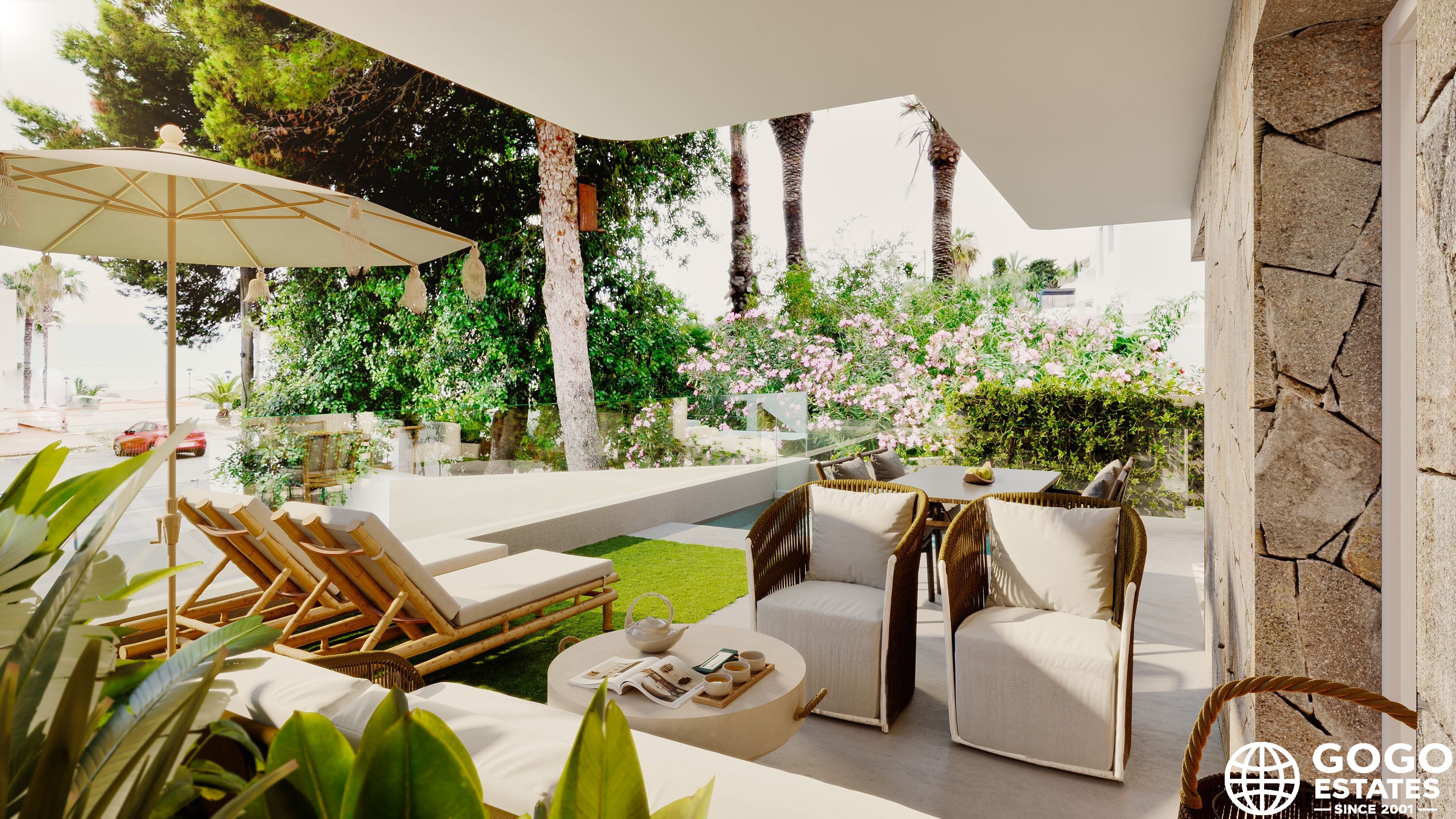 Zewnętrza maksymalizują korzystanie z klimatu śródziemnomorskiego, a każda nieruchomość dysponuje prywatnym ogrodem, tarasem i solarium. Te przestrzenie są idealne do relaksu lub spotkań z przyjaciółmi i rodziną. Bliskość morza dodaje nieocenionej wartości dla spacerów wzdłuż wybrzeża i aktywności wodnych.