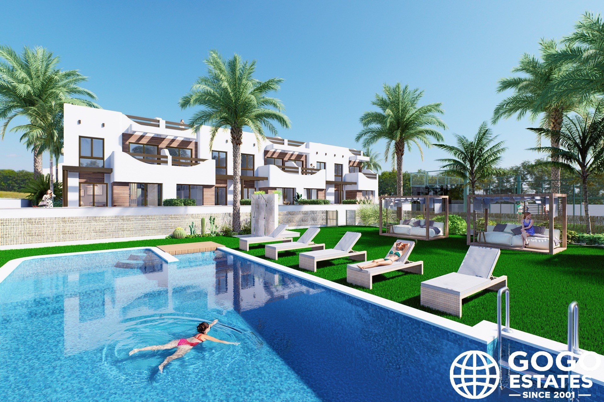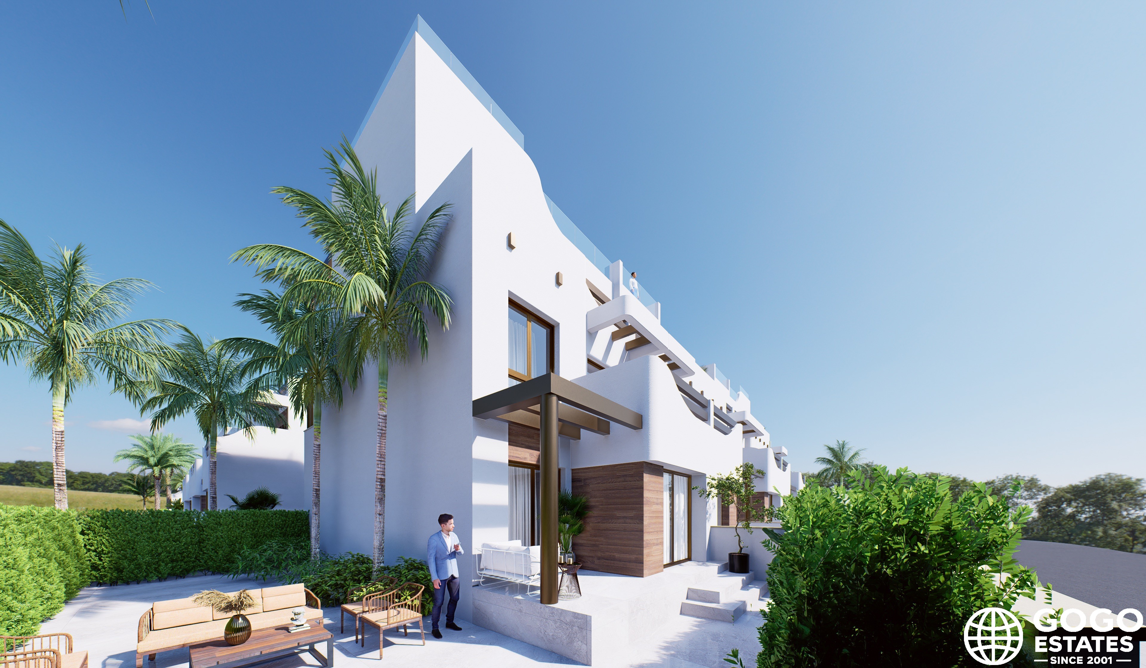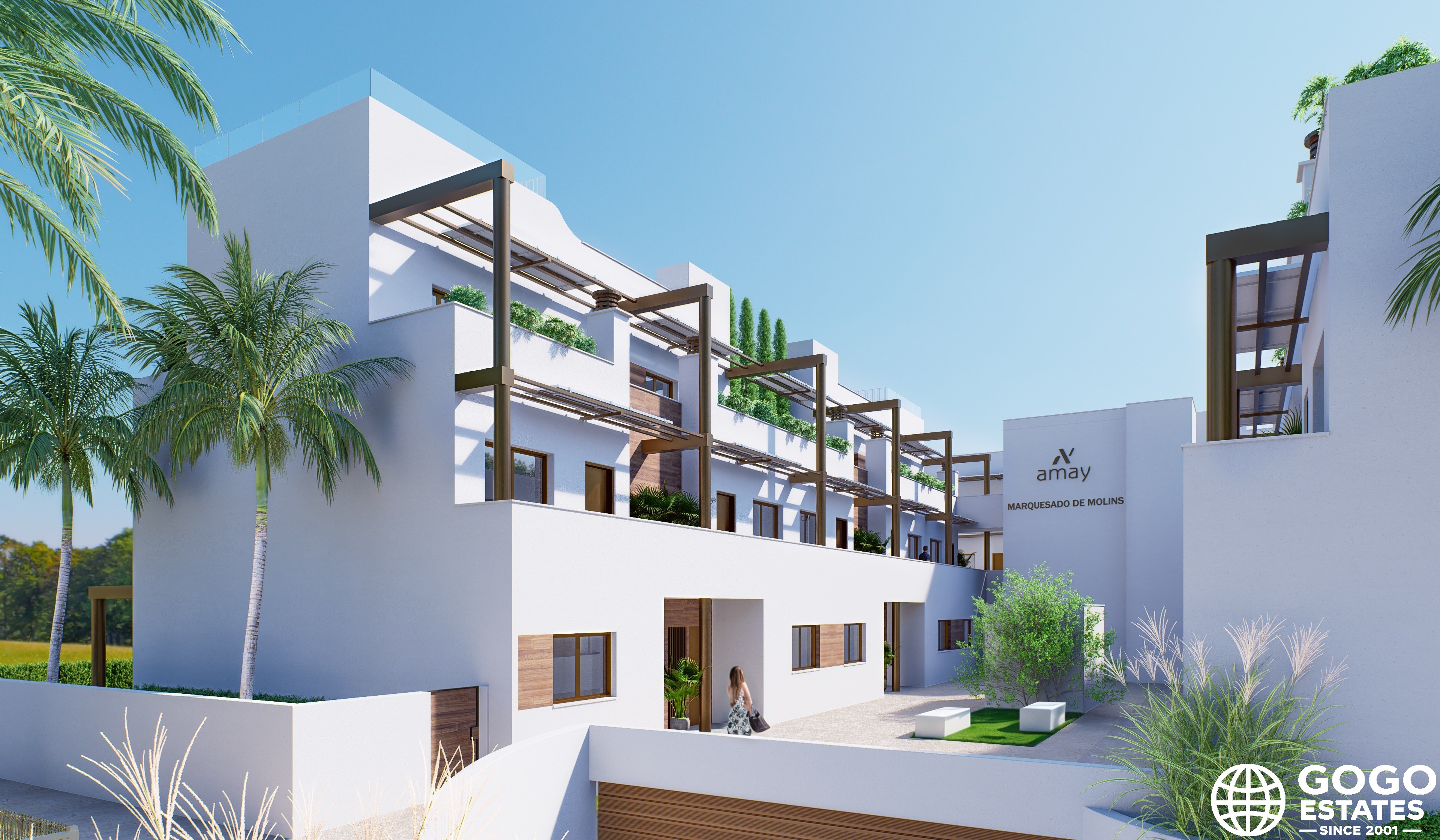 Wnętrze zaprojektowane jest z myślą o nowoczesnym życiu, w tym wbudowane szafy, a niektóre jednostki oferują nawet jacuzzi. Przestrzenie na zewnątrz obejmują prywatny taras i ogród, idealne do relaksu i cieszenia się śródziemnomorskim klimatem.