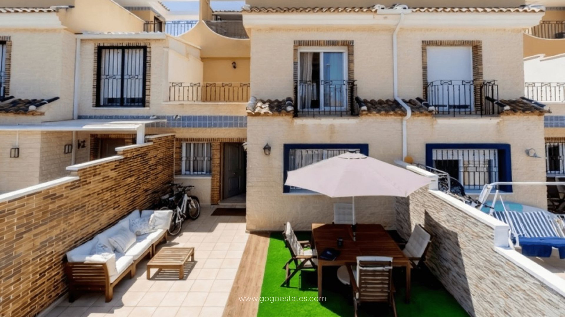 We present to you this Lovely Townhouse located only 200m from the beach in Torre de la Horadada. The property consists of 3 bedrooms, 2 bathrooms, living/dining area and a fully fitted kitchen with utility room. The property benefits from air conditioning, a private terrace, roof solarium with sea views. The property is offered fully furnished, ready to move in. The community has a large swimming pool, perfect for relaxing in the summer. Torre de la Horadada is a coastal resort located on the Southern Costa Blanca with some fine sandy beaches which are ideal for families with children who have come to spend their summer holidays. There are two airports close to Torre de la Horadada which are Alicante and Murcia. Torre de la Horadada is also one of the prettiest of the southern resorts with attractive coastline and seafront walks as well as a charismatic watchtower dating from the time when pirates sailed these seas, numerous sandy beaches, sunny weather and a delightful marina with plenty of mooring space. Torre de la Horadada lies to the north of the Mar Menor, neighbouring Pilar de la Horadada, and and is also close to Torrevieja, La Zenia, Mil Palmeras, Cabo Roig, Campoamor, Playa Flamenca and Punta Prima